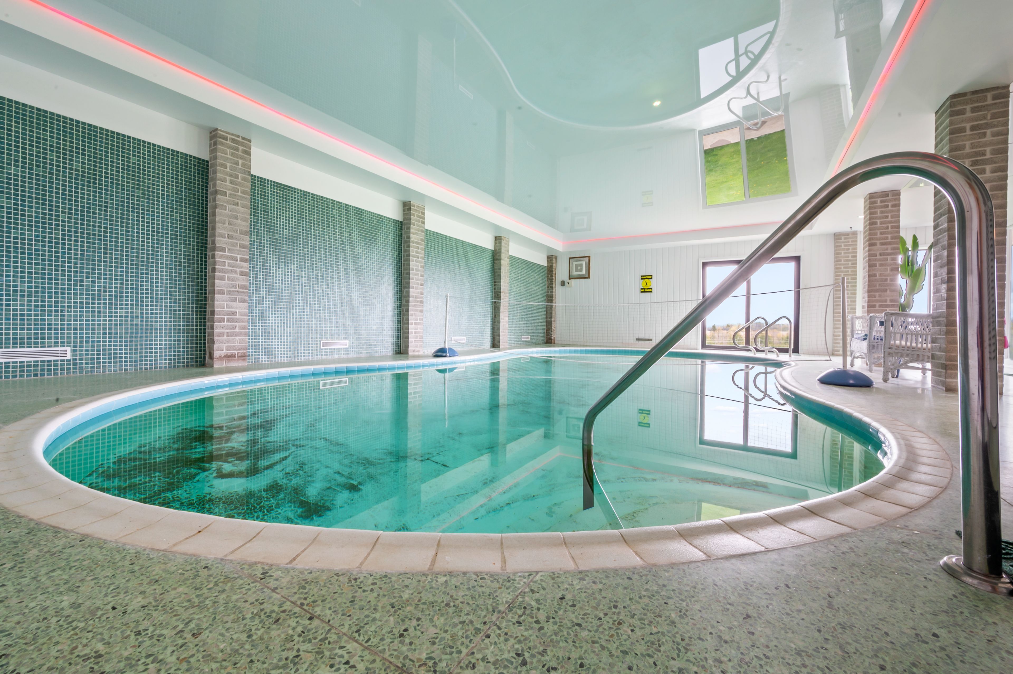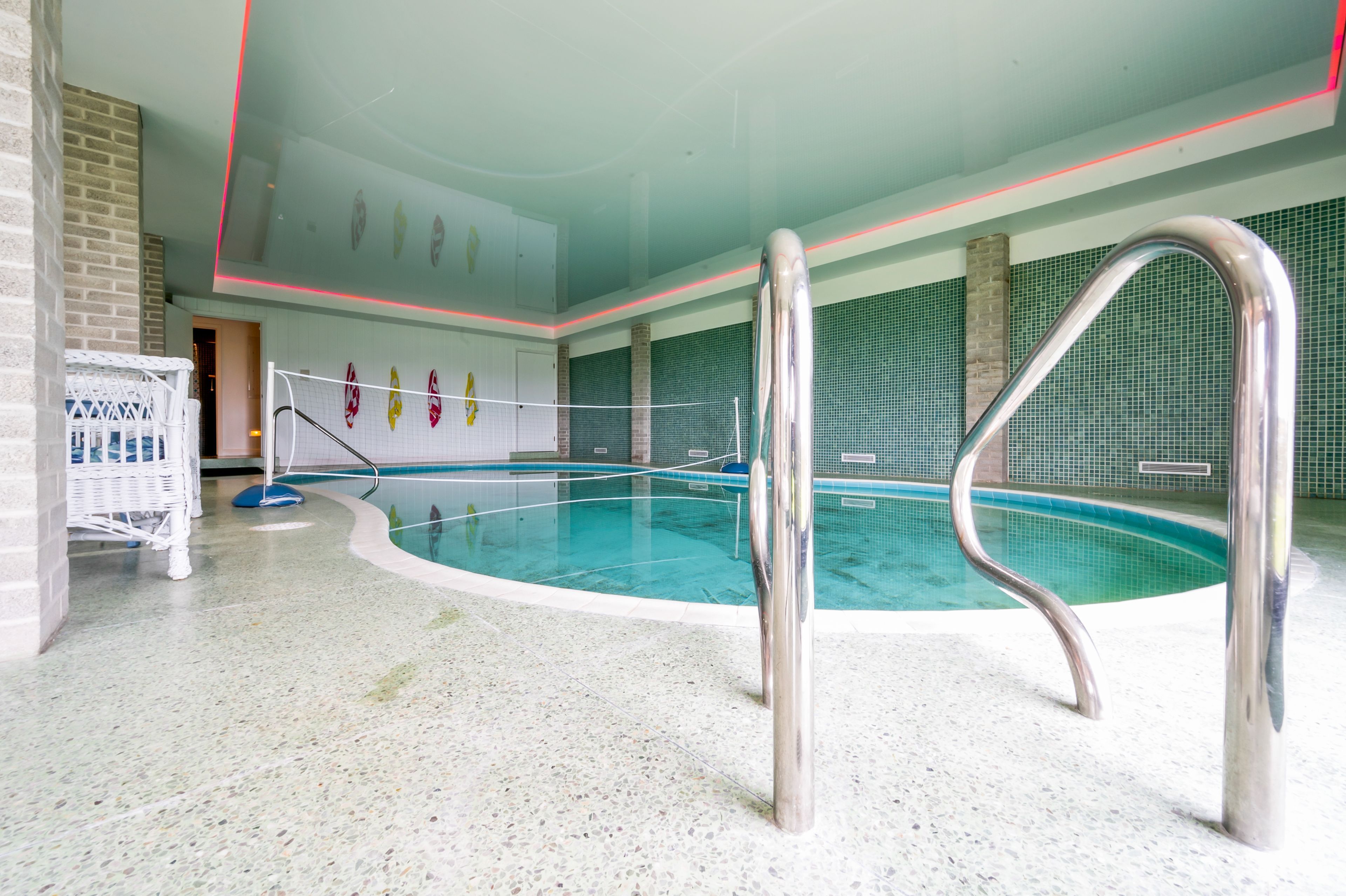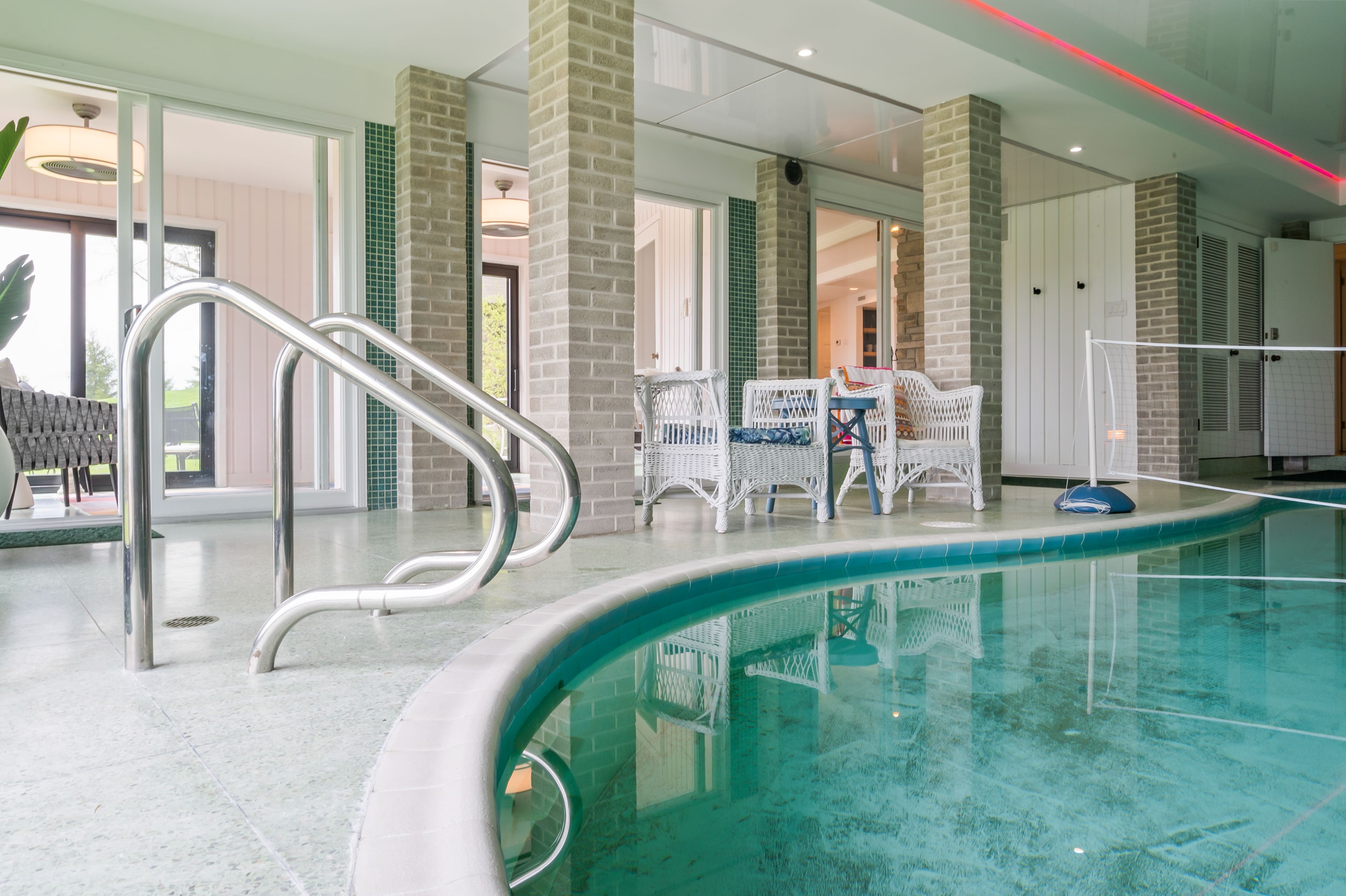• Indoor saltwater pool, sauna, and versatile spaces for relaxation and entertaining.