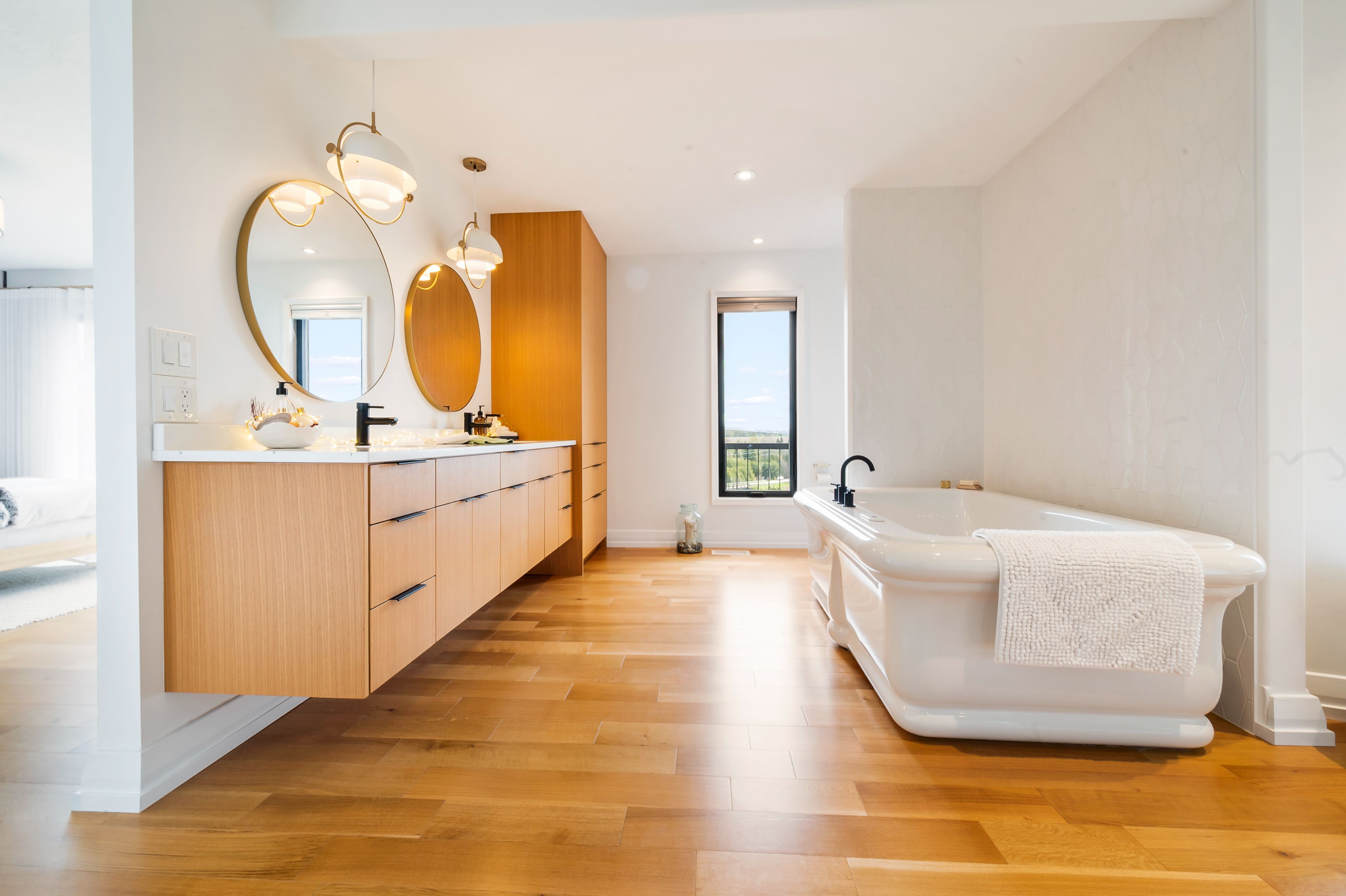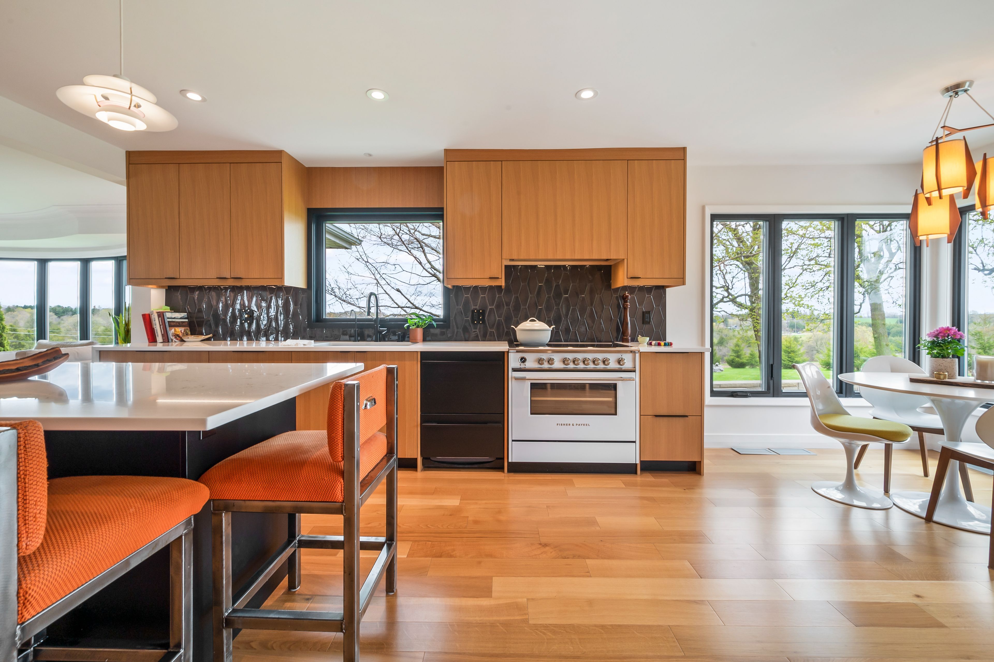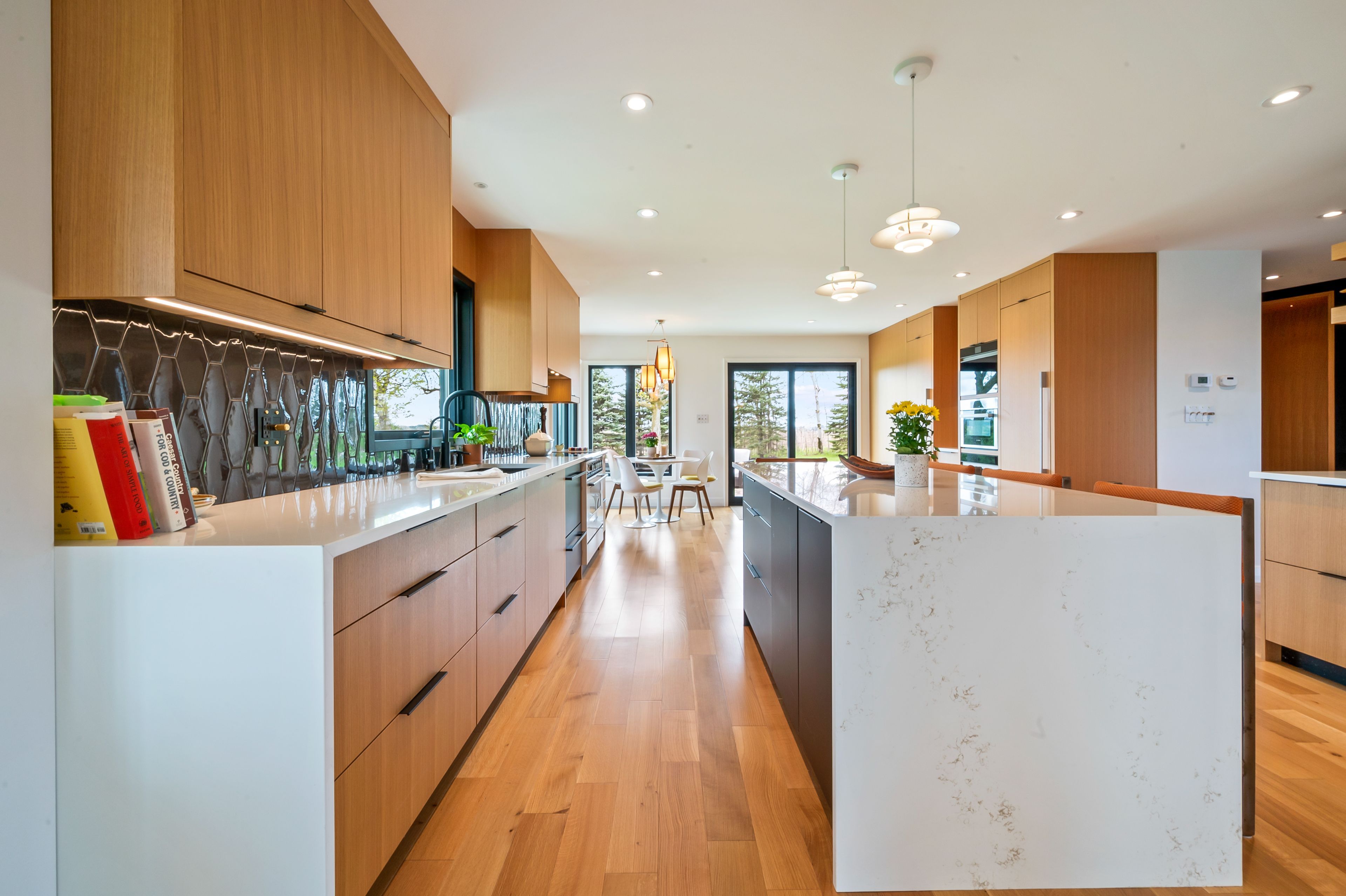 • Modern, eco-friendly design featuring net-zero-ready systems and solar panels.