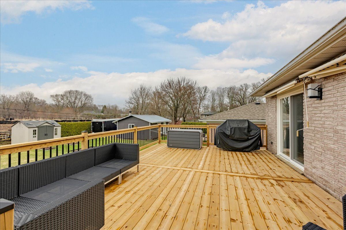 Welcome to 63a tulip street, a true standout in the heart of north keswick! This beautifully updated 3+1 bedroom raised bungalow is set in a private setting and offers an exceptional blend of style, comfort and versatility. Step inside to a bright meticulously maintained interior featuring three spacious bedrooms and a fully renovated, modern 4 piece bathroom. The inviting family sized kitchen has been thoughtfully upgraded with newer appliances, enhanced built-in cabinetry, stylish new countertops, sink and contemporary hardware, perfect for everyday living and entertaining alike. Head down to the fully finished basement featuring a spacious extra bedroom, complete with murphy bed, a four piece bathroom and a sun filled sitting area with above grade windows, ideal for in-laws, extended family or your own private retreat. Love to entertain? The newly installed spacious deck is ready for summer nights, while the oversized single garage with drive-thru access and a rough-in 220v plug is a dream for hobbyists, car enthusiasts, or extra storage. Packed with upgrades for total peace of mind: newer doors (2014), windows (2017), sleek metal roof (2020) with transferable warranty, owned hot water tank (2021), plus furnace & a/c (2021). Bonus features include central vac and a one of a kind tool room with its own climbing wall... Yes really! This home checks all the boxes and then some! Don't miss your chance to own this keswick gem. It won't last!