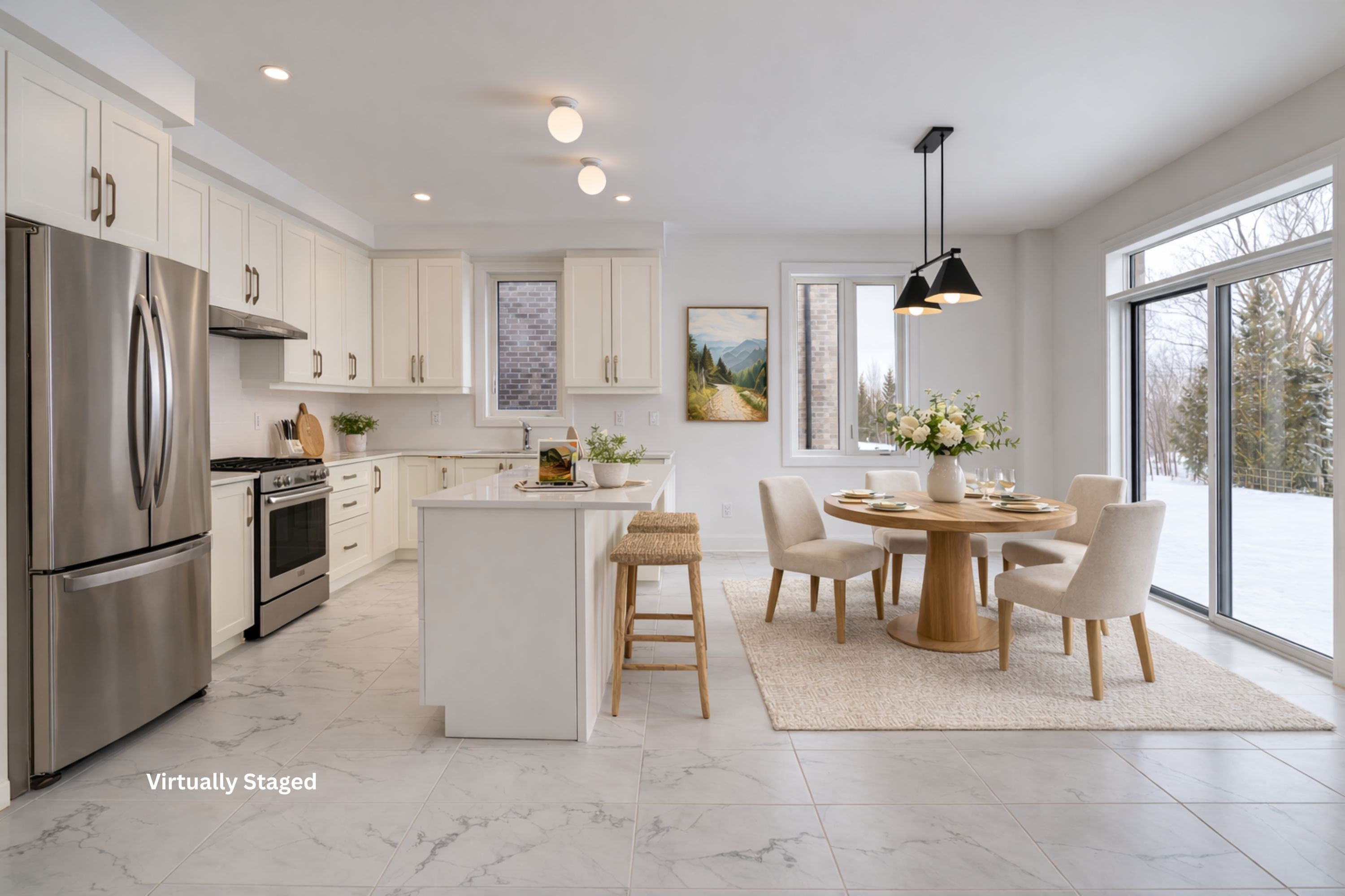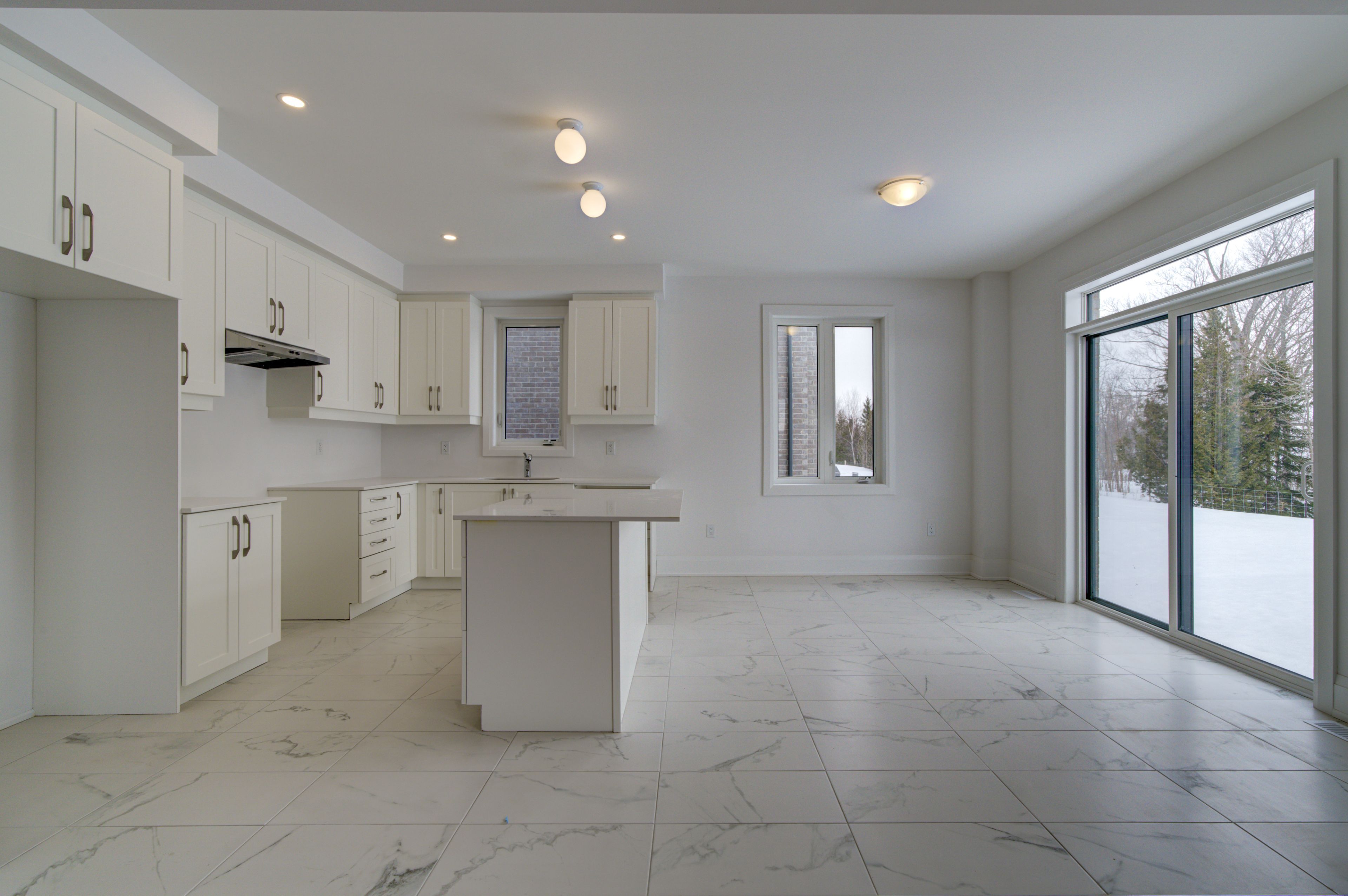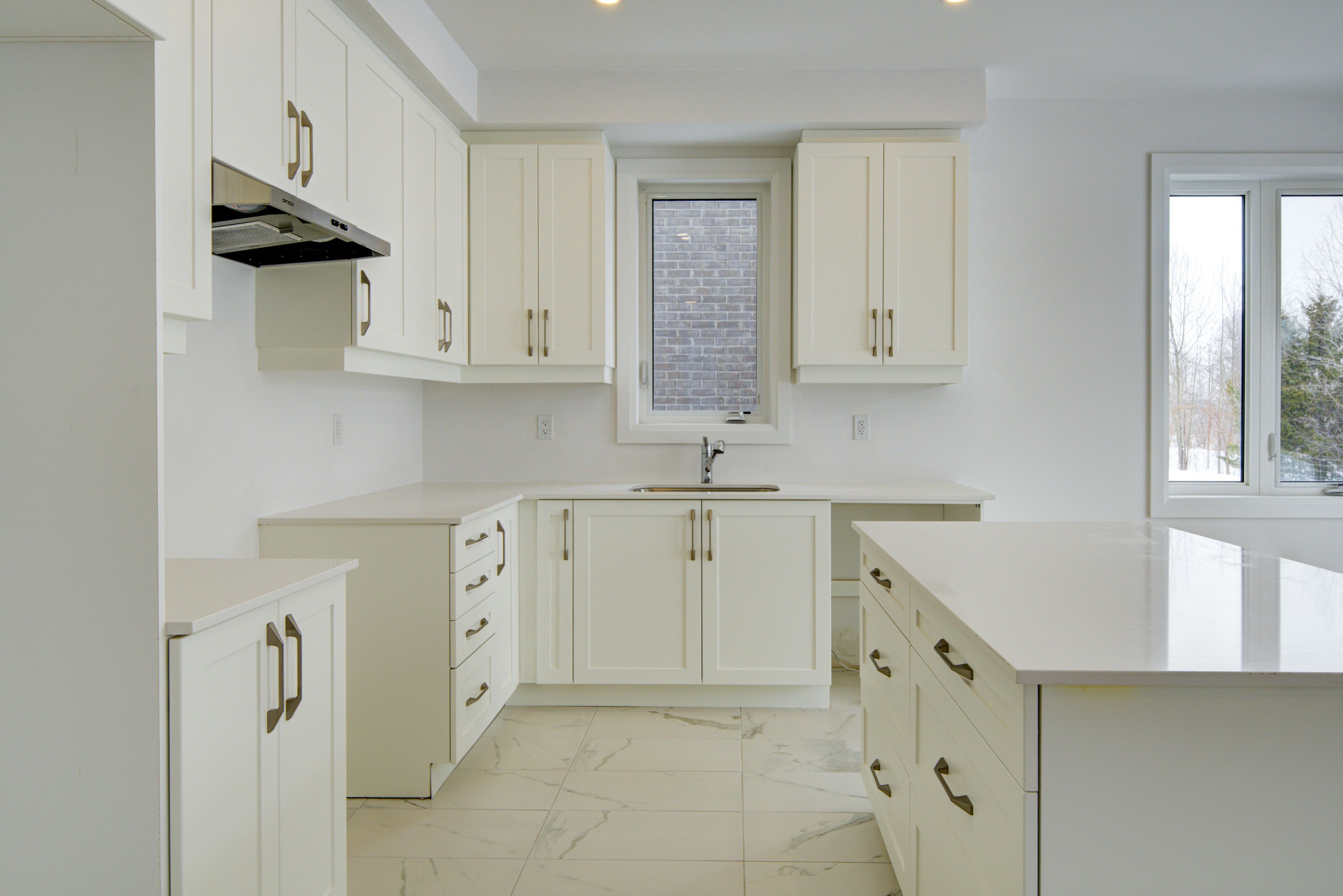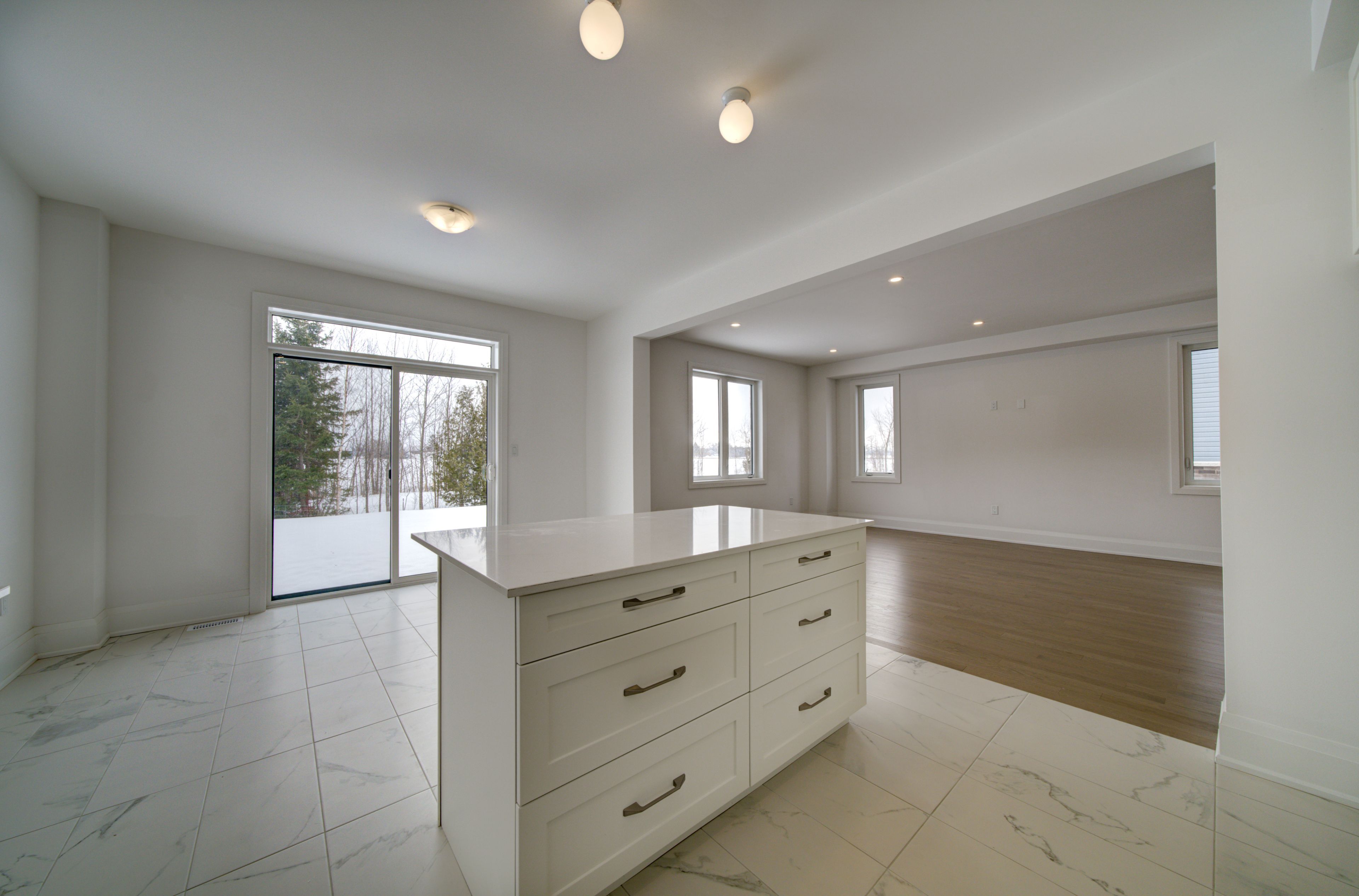 • Well-appointed kitchen with quartz countertops and large center island.