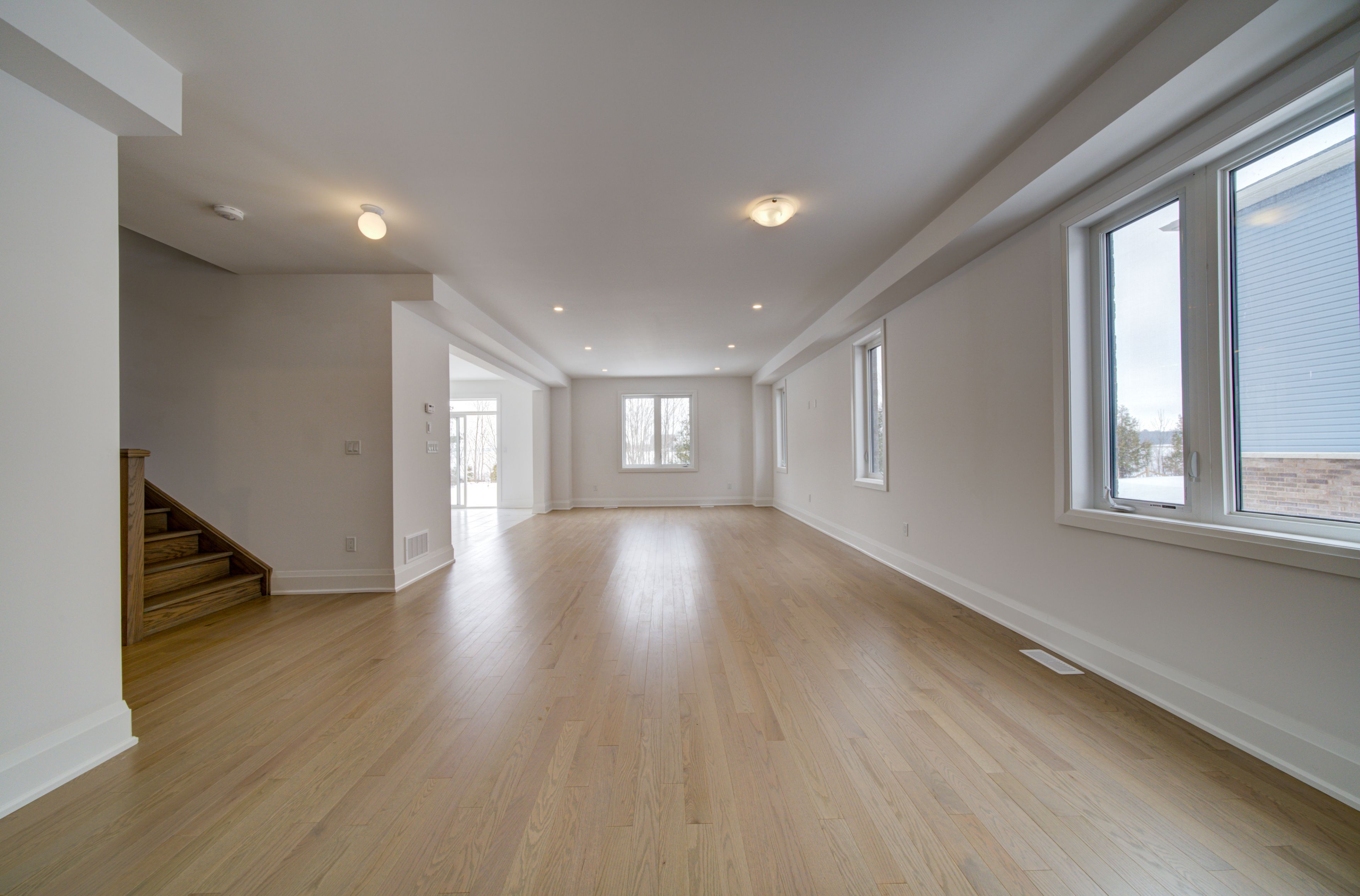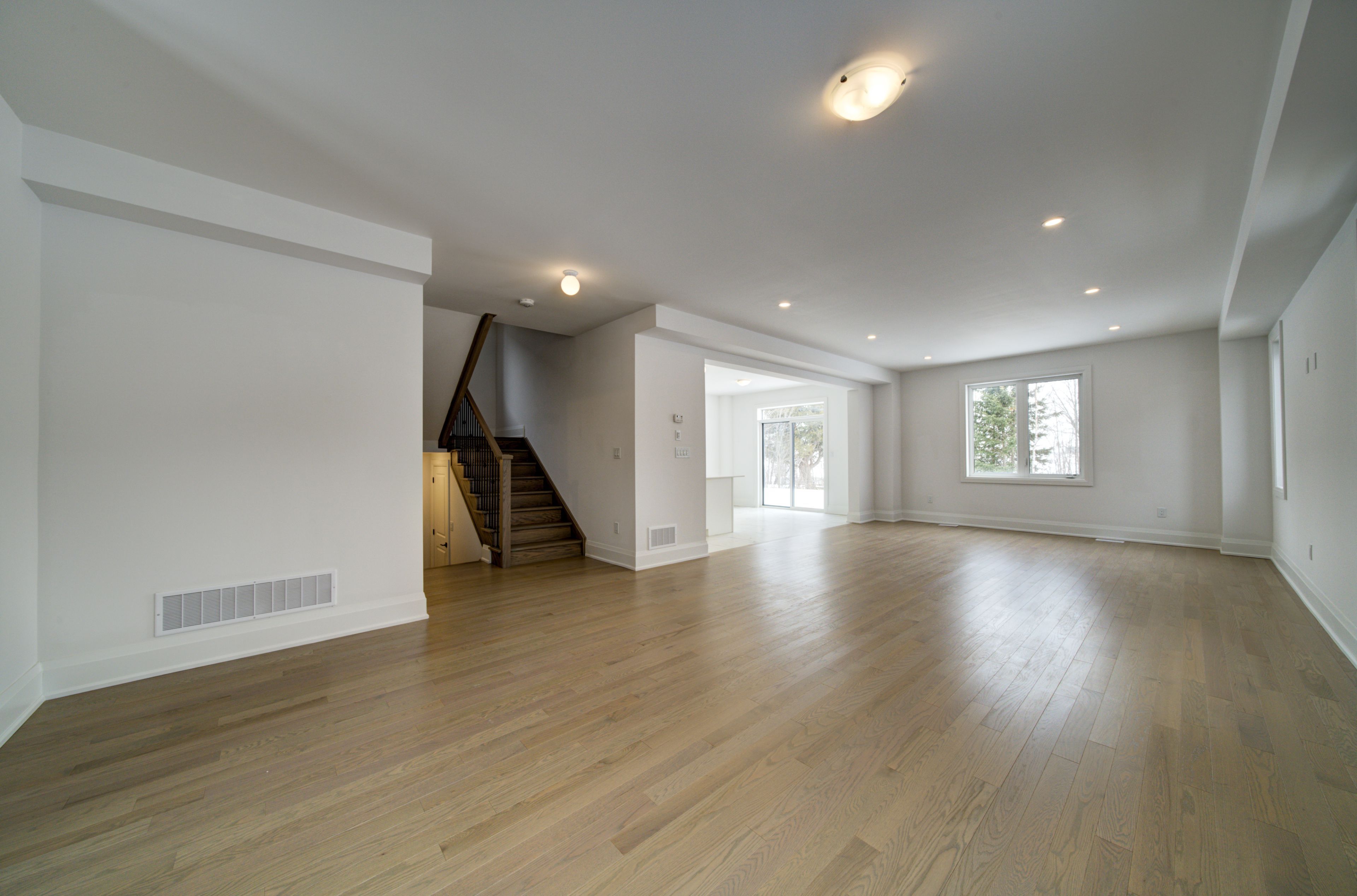 • Spacious open-concept design with 9-foot ceilings and upgraded hardwood flooring.