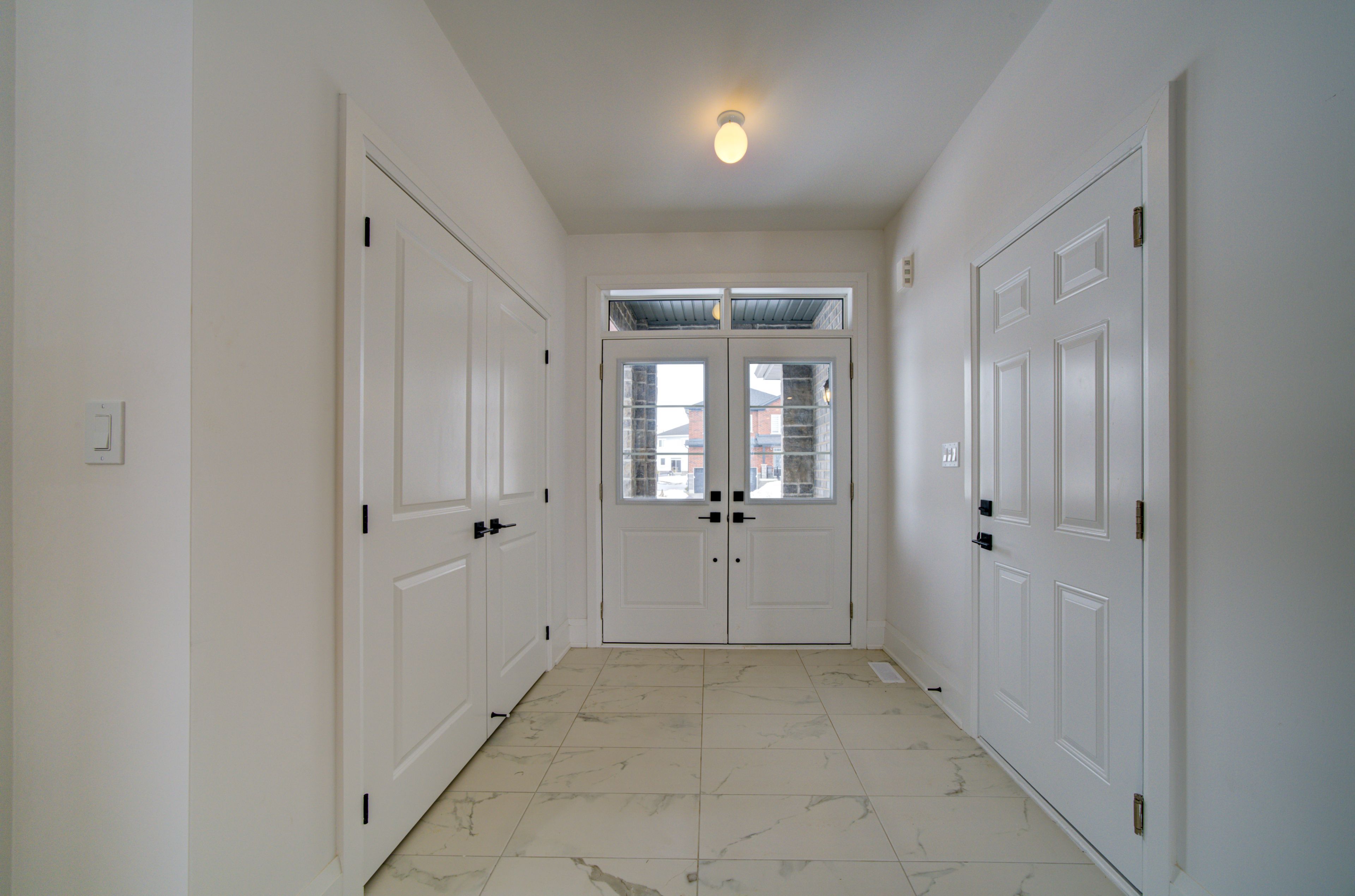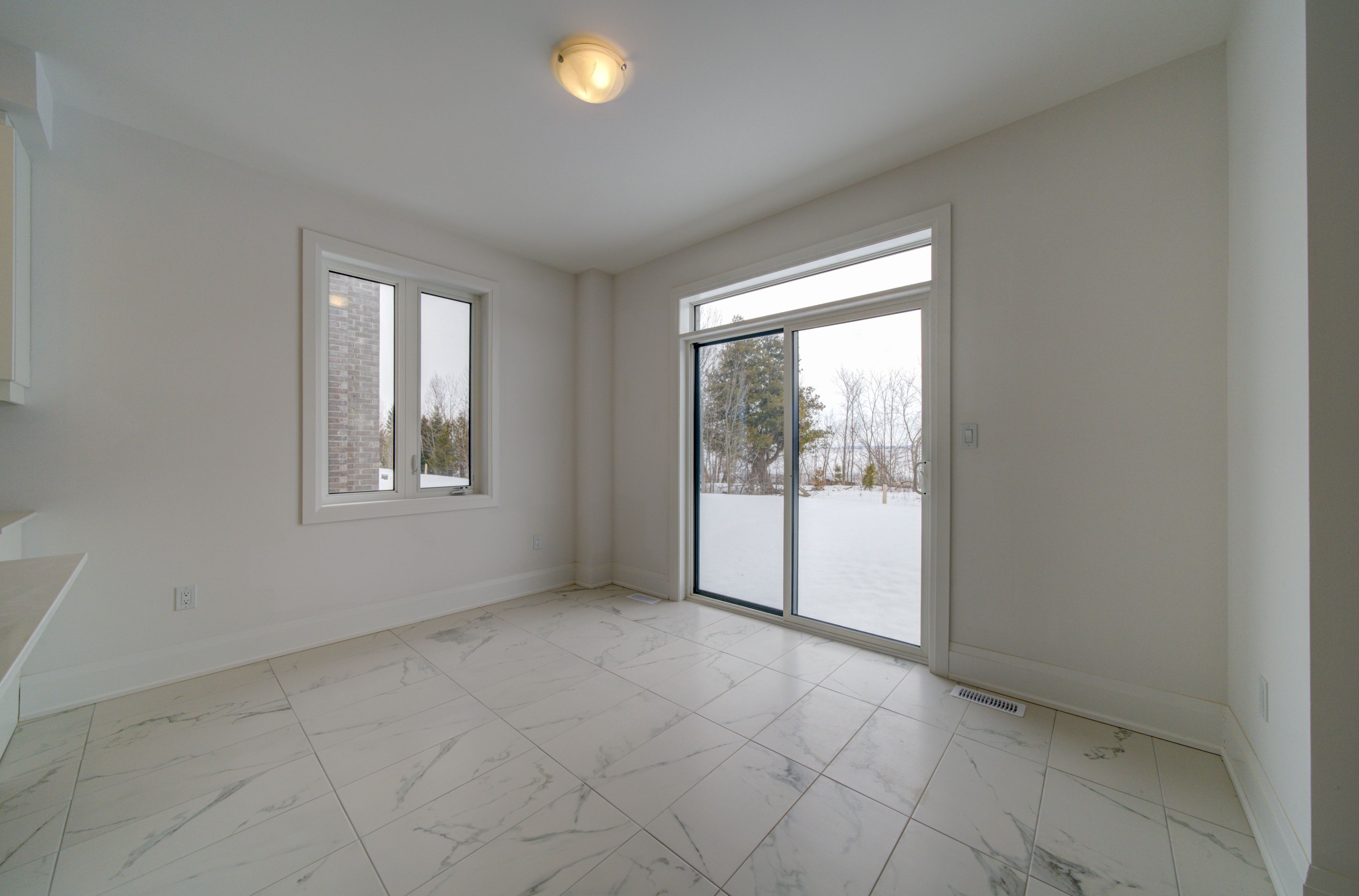 Backing onto trails on a premium lot with no rear neighbours, this newly built 4-bedroom, 4-bathroom pine model (elevation a) by baycliffe communities offers over 2,500 sq ft of thoughtfully designed living space in a quiet residential pocket within the sought-after wasaga sands community. Featuring a timeless all-brick and stone exterior, this move-in ready home provides exceptional value in a highly desirable setting surrounded by nature. Inside, the bright open-concept main floor features 9-foot ceilings, upgraded hardwood flooring, pot lights, and a beautifully finished staircase with wrought iron spindles, creating a warm and inviting atmosphere. The kitchen is well appointed with quartz countertops, a large centre island, upgraded cabinetry, and modern finishes, and flows seamlessly into the living and dining areas, making it ideal for both everyday living and entertaining. Additional upgrades throughout the home include a black window package, upgraded black door hardware, and an upgraded trim package. Upstairs, the second level offers four spacious bedrooms and three full bathrooms. Two bedrooms share a jack & jill bathroom with double vanity, while the fourth bedroom enjoys access to its own private bathroom. The primary suite features a walk-in closet and a beautifully appointed 5-piece ensuite with soaker tub, glass shower, and double vanity. The unfinished basement with bathroom rough-in provides excellent potential to create additional living space, a recreation room, home gym, or additional storage. Conveniently located just minutes from schools, shopping, trails, and the beach, with collingwood and blue mountain just a short drive away for year-round recreation. Be the first to live in this move-in ready home.