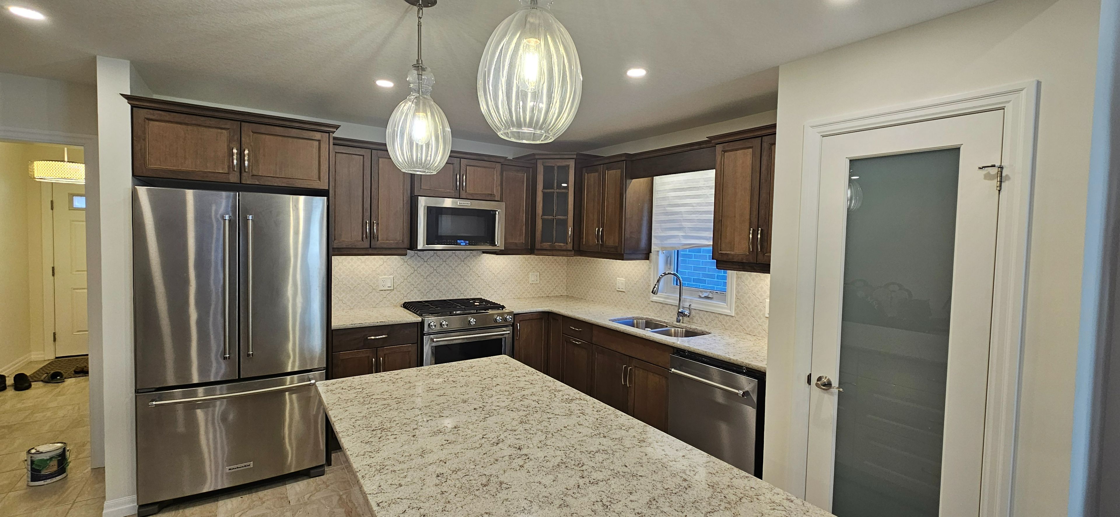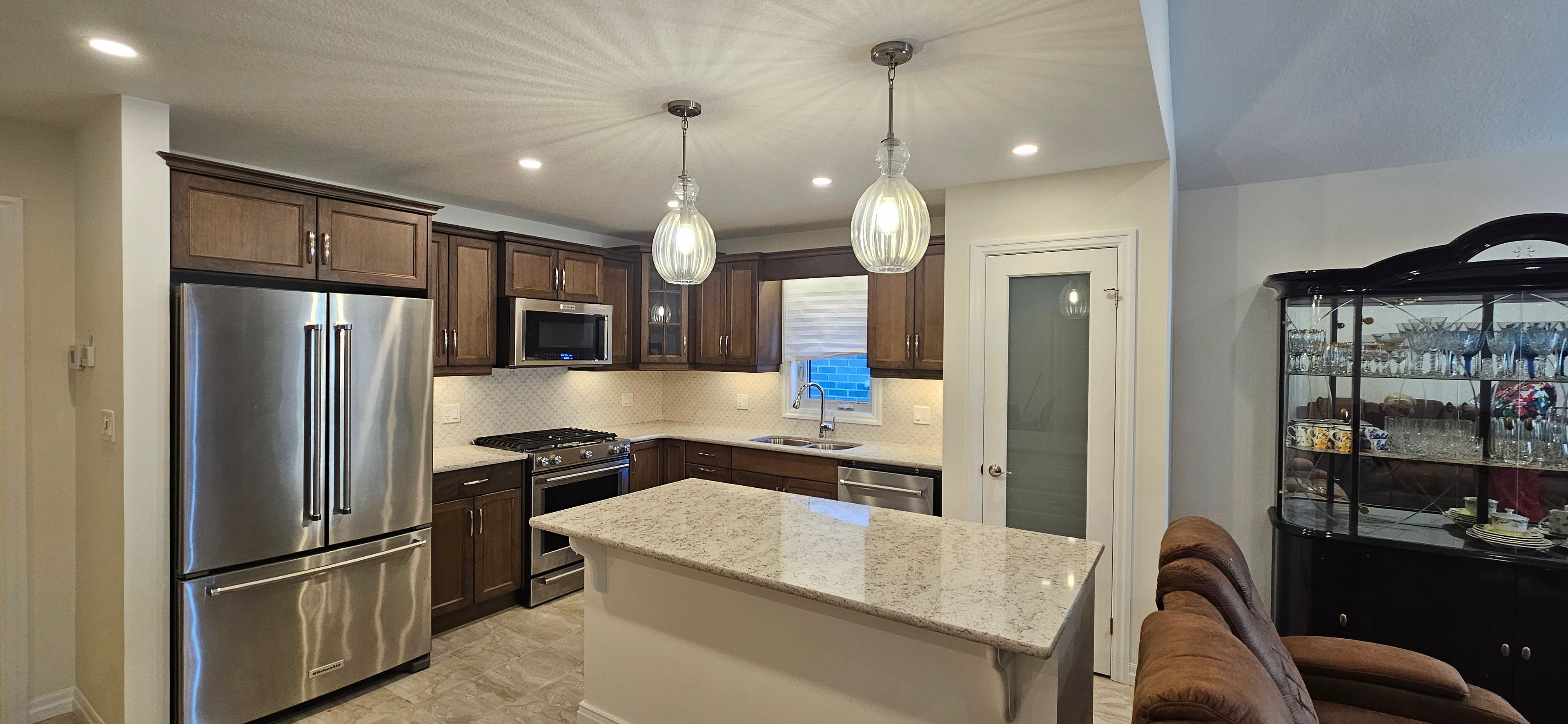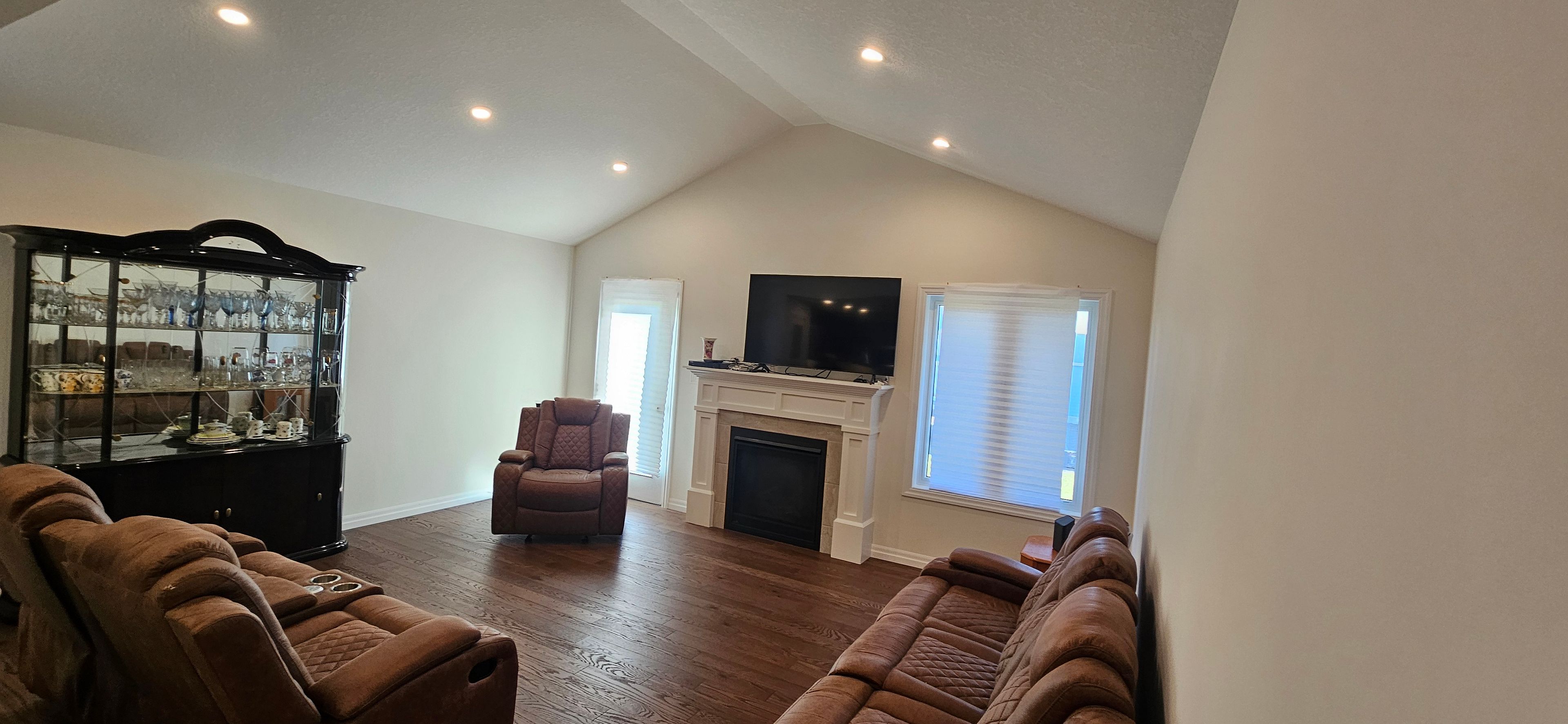 64 ambrosia path - prestigious detached bungalow beautiful fully detached bungalow situated on a traditional deep lot in one of the area's most prestigious and highly sought-after communities. This elegant home offers a bright open-concept layout with soaring ceilings, pot lights, and gleaming hardwood floors throughout the main level. The modern kitchen is designed for both style and function, featuring stainless steel appliances, quartz countertops, a porcelain tile backsplash, and a convenient walk-in pantry. The main floor includes two spacious bedrooms and two full bathrooms, highlighted by a luxurious primary suite with a jacuzzi ensuite and walk-in closet. The cozy family room with a fireplace creates a warm and inviting space for relaxation and entertaining. Main floor laundry with direct access to the double garage adds everyday convenience. The professionally finished lower level offers a versatile in-law suite with direct garage access, two large bedrooms, a shared full bath, a huge recreation room with a rough-in for a second kitchen, and ample storage. Ideal for multi-generational living or guest accommodations. Exterior features include a double-car garage and a large driveway accommodating parking for up to four additional vehicles. This property combines modern comfort, thoughtful design, and exceptional value in a quiet, upscale neighborhood close to schools, parks, shopping, and major amenities. A perfect blend of elegance, space, and convenience - welcome home!