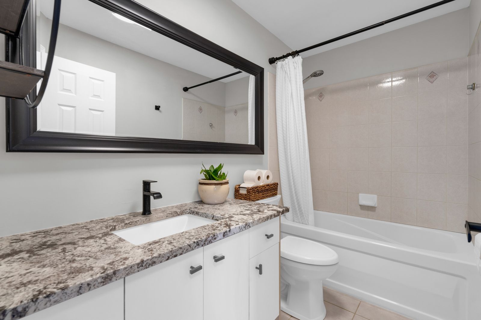 • Modern kitchen with quartz countertops and updated appliances, perfect for entertaining.