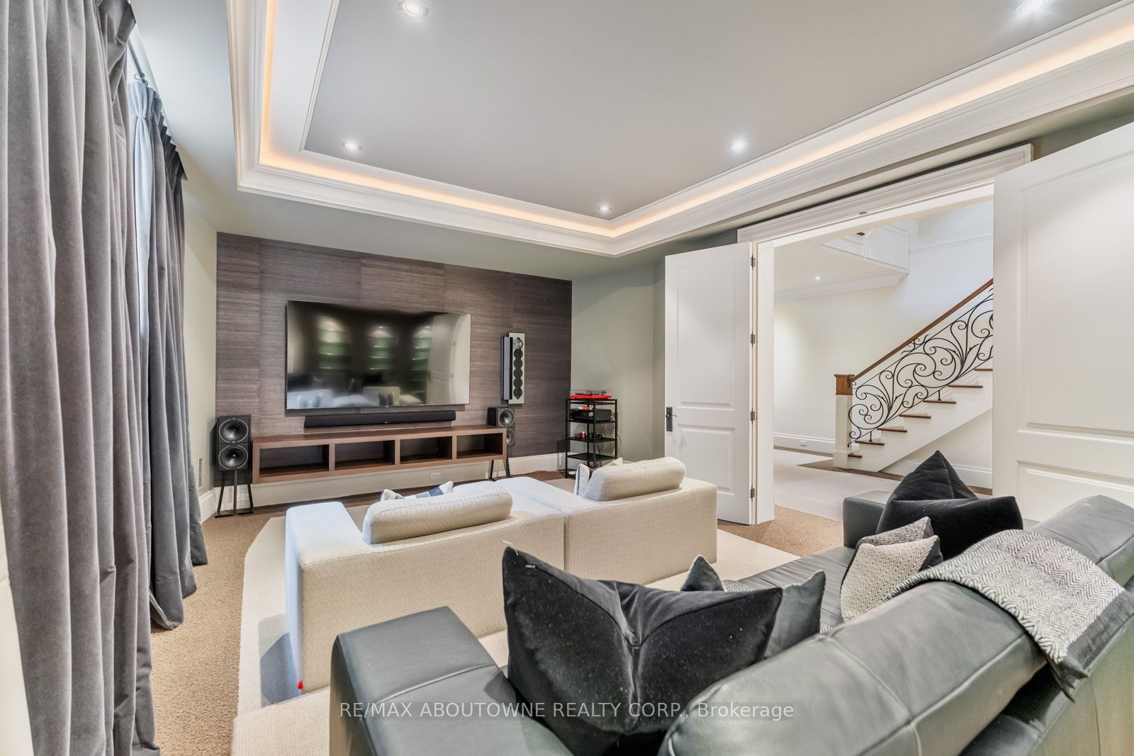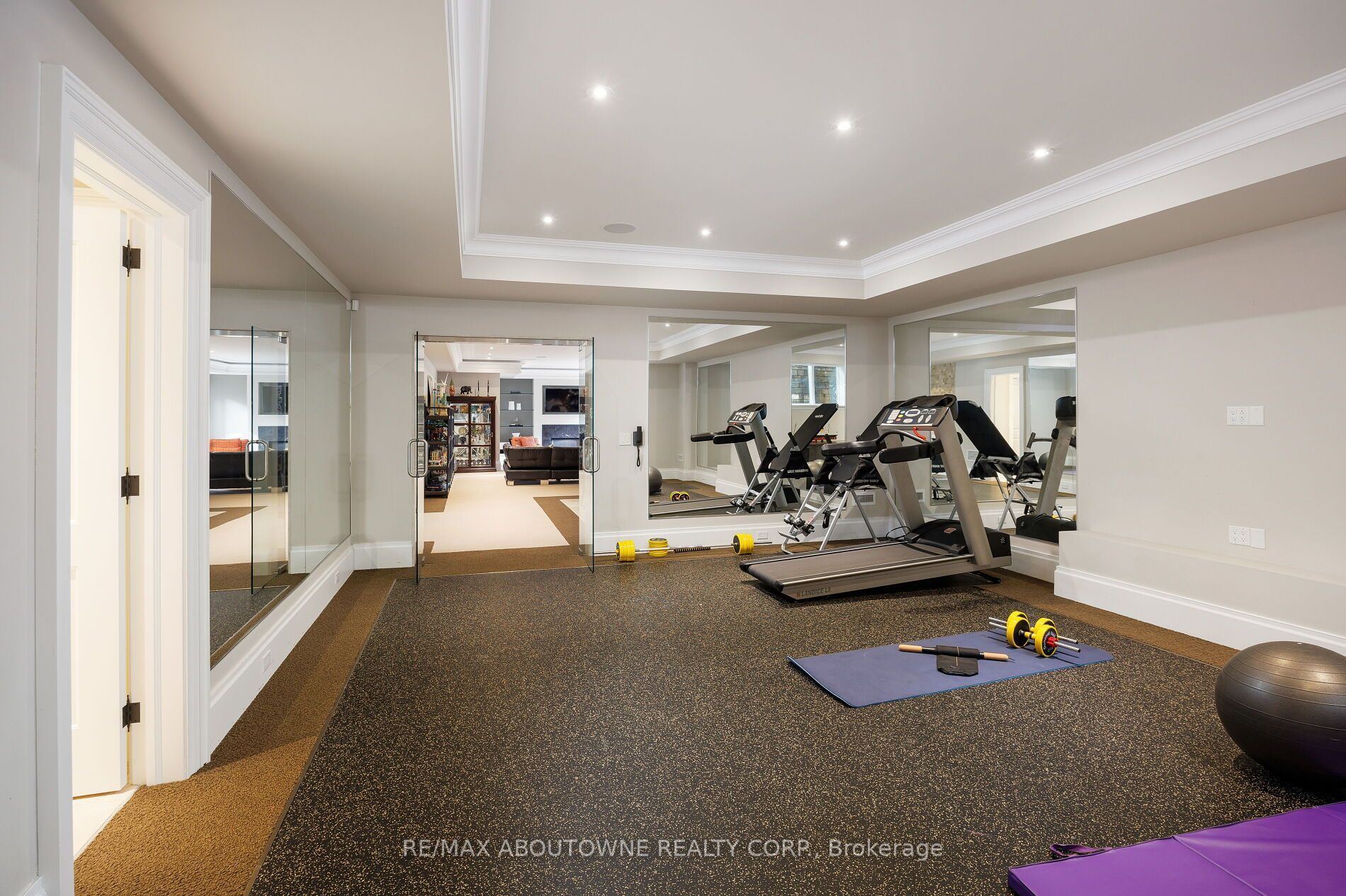• Finished basement includes a recreation space, gym, and home theater for entertainment.