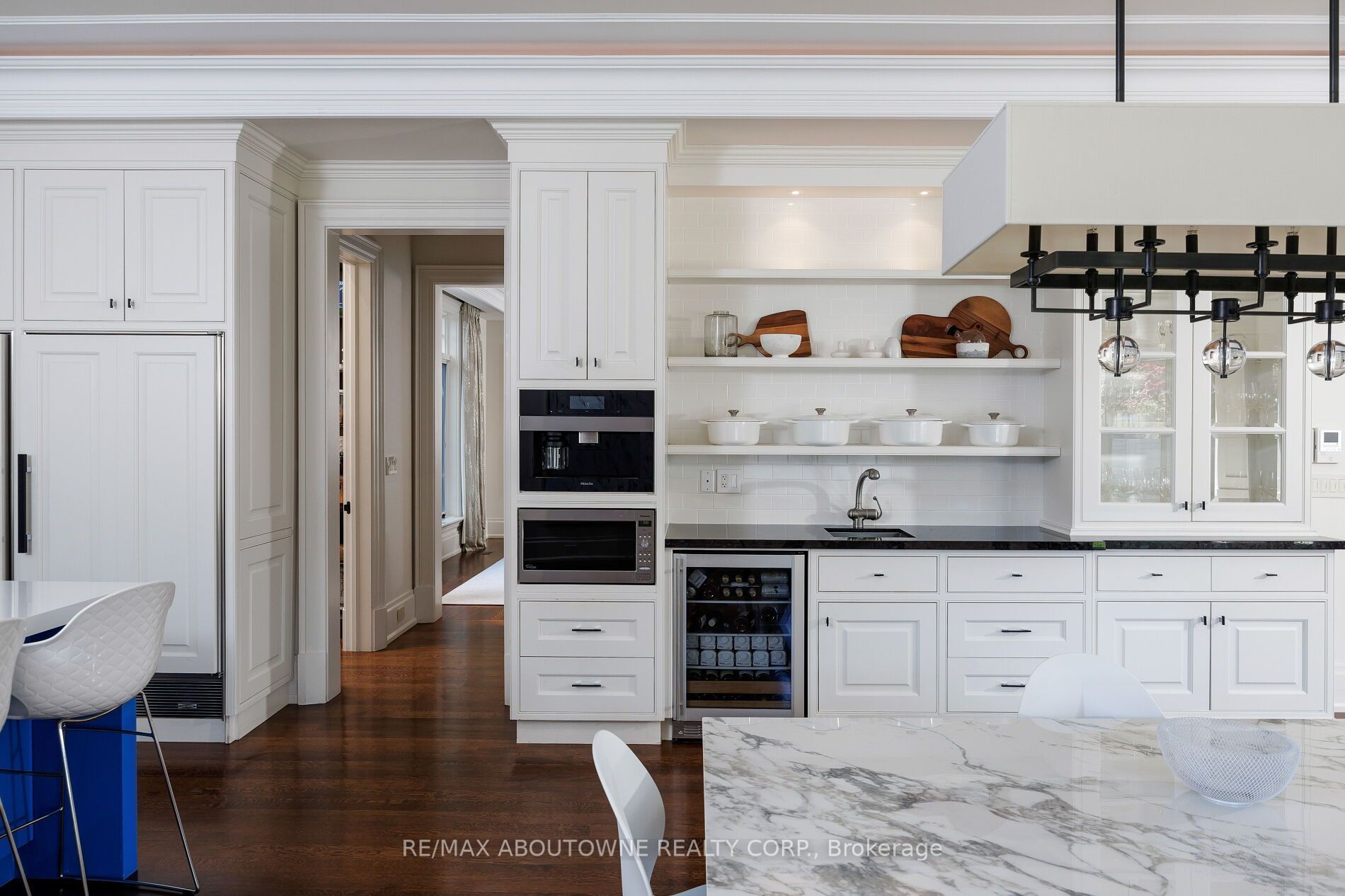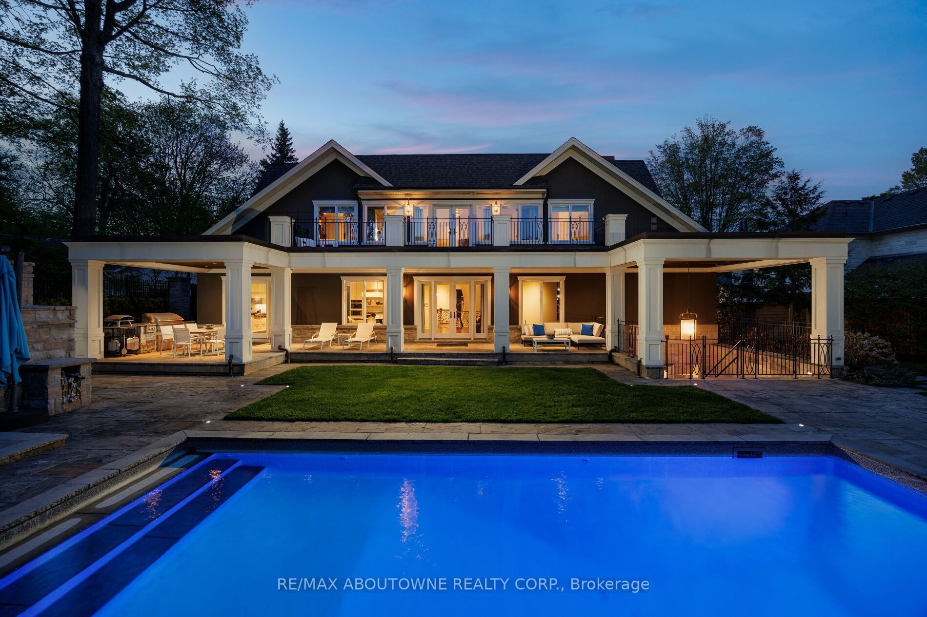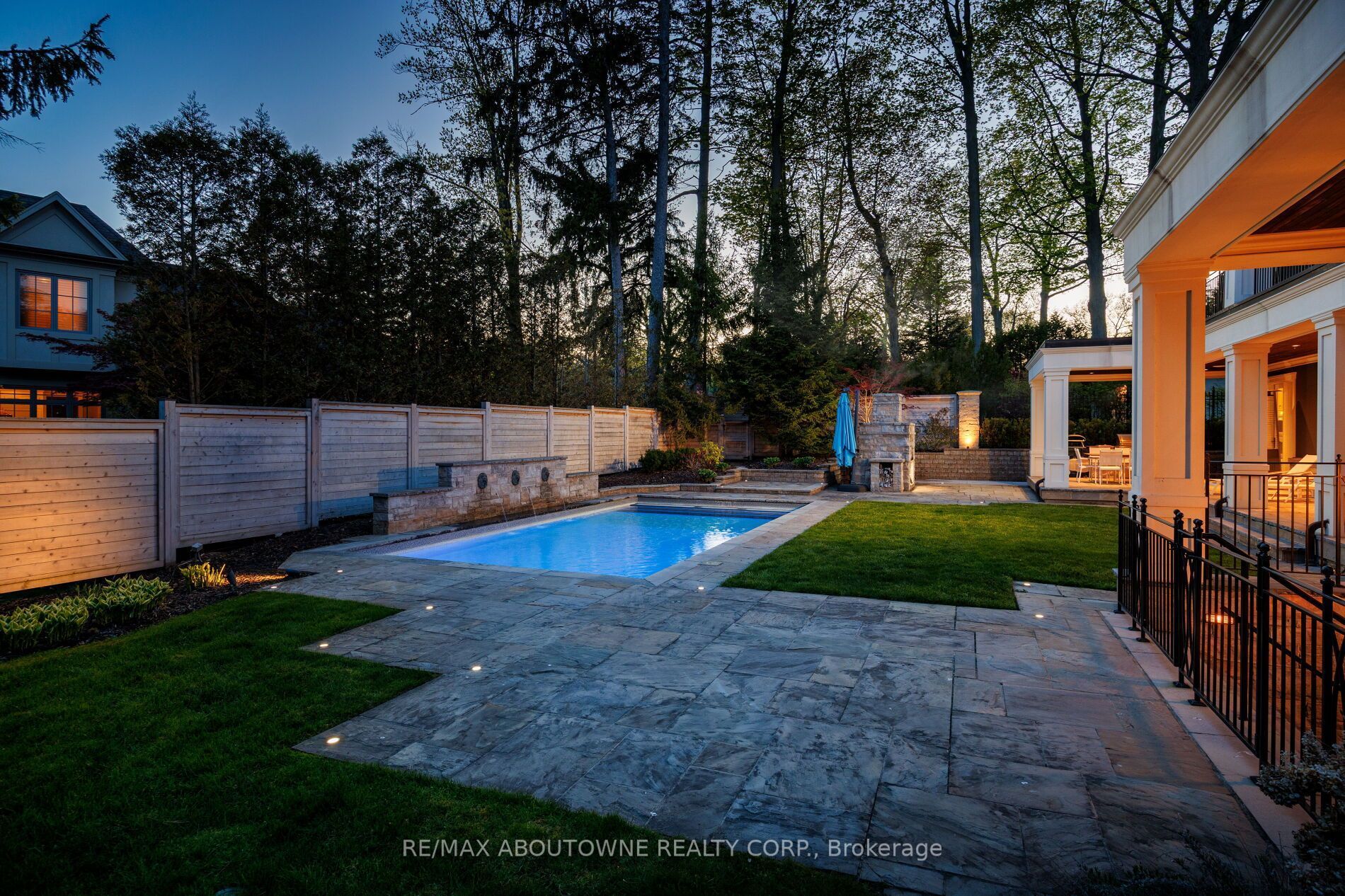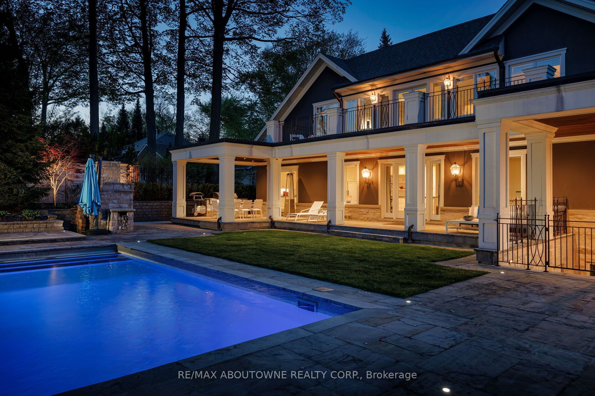 Welcome to 64 brentwood road, where a exquisitely crafted home masterfully blends timeless design and modern features. Located on one of the most coveted and prestigious streets and steps to the shoreline of lake ontario, this exceptional home is situated on an expansive 100 x162 lot and offers over 10,000 sq ft of luxurious living space. Designed by award winning architect michael pettes and built by renowned builders pcm, this elegant home offers the finest finishes throughout. The property is beautifully landscaped, providing a private and resort like outdoor oasis complete with a saltwater pool with cascading waterfall, perfect for summer relaxation as well as outdoor gourmet kitchen and wood burning fireplace for effortless entertaining as well as a outdoor bathroom for privacy for guests. Inside, indulge in a impeccably crafted and light filled living space with heated floors, designer light fixtures and finishes. The heart of the home is the gourmet kitchen with wolf and subzero appliances, with an additional servery and a spacious pantry. Upstairs the home boasts 4 generous bedrooms, each with their own ensuite for privacy and comfort for family and guests. The primary bedroom offers a relaxing retreat with spa like bathroom and large walk in closet with balcony and views of the manicured rear yard. A fully finished walk up basement offers a large recreation and games space with built-in bar, climate controlled wine cellar, home theatre, gym as well as a 5th bedroom/ nanny suite with ensuite bathroom. With a lavish stone exterior, a 3 car garage with additional lift, elevator and safe room, this charming home seamlessly combines elegance with luxury offering the best of both worlds. Whether enjoying the expansive interior, relaxing by the pool, or strolling to the lake, this home provides an unparalleled lifestyle in one of oakville's most sought-after neighbourhoods.