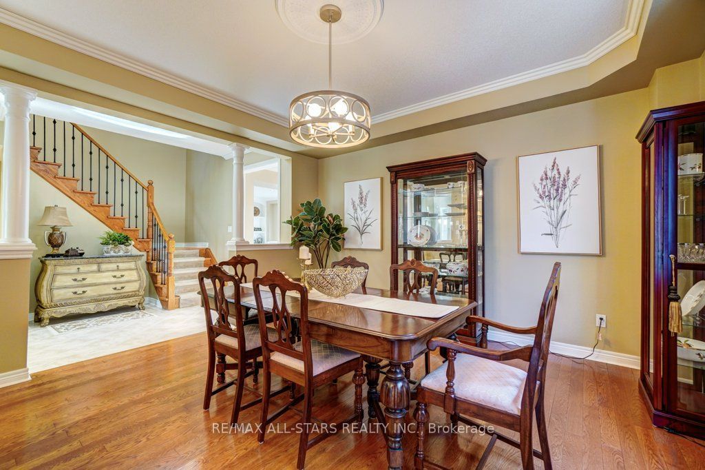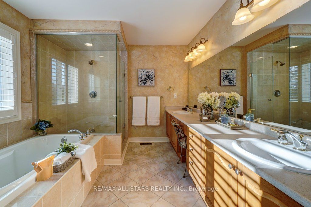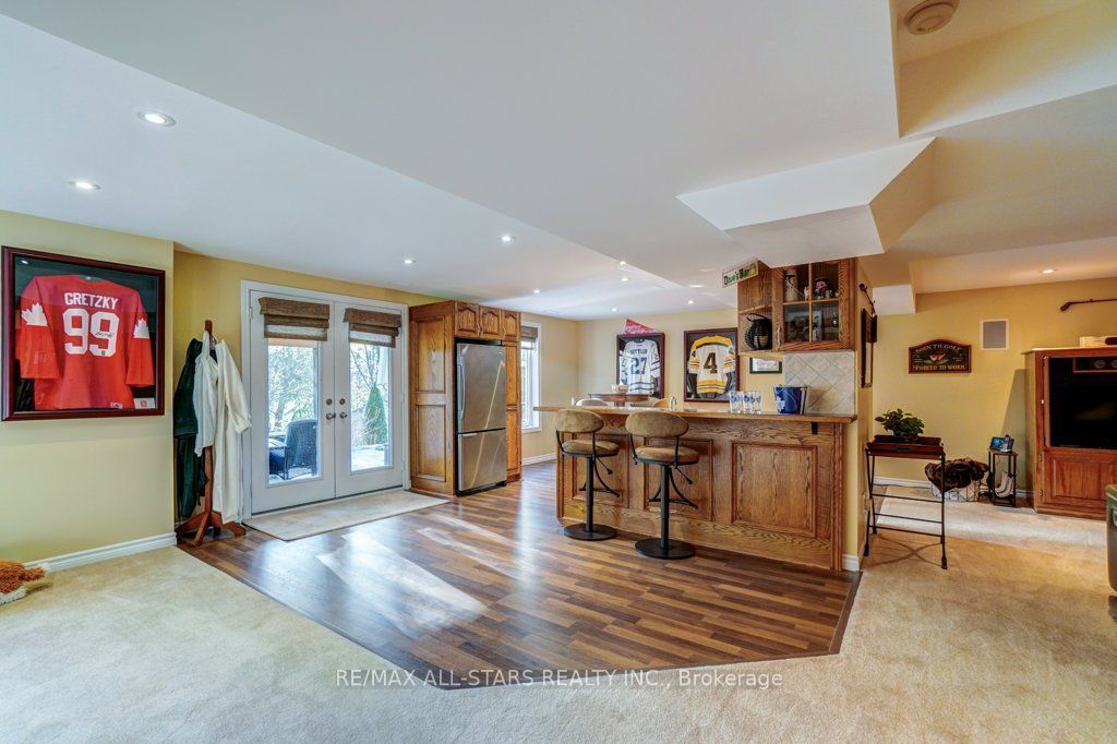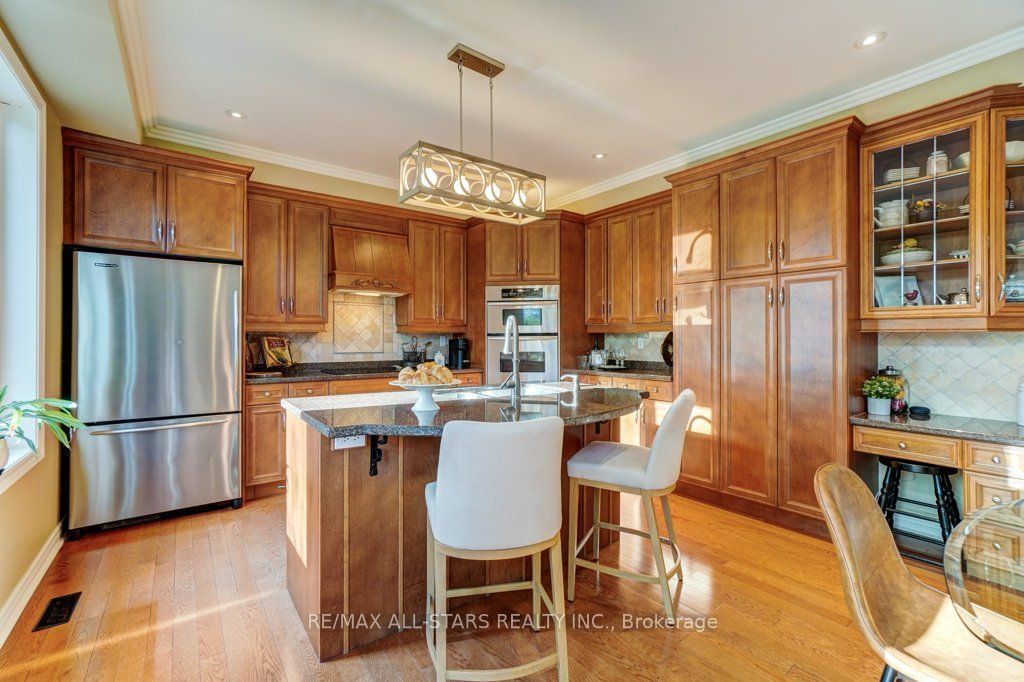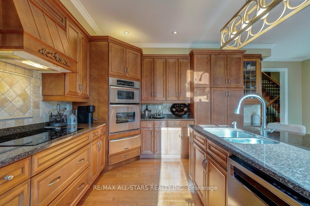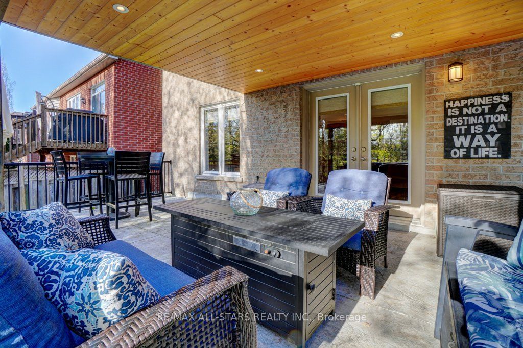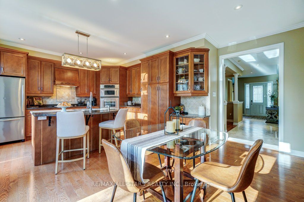 Set in one of uxbridge's most coveted golf course communities, this exceptional 3-car garage executive home blends luxury, lifestyle, and an unbeatable location. It backs onto lush green space & forest, with direct access to scenic trails and within walking distance to shops, schools, and town amenities. Upon entry, the main floor impresses with 9' ceilings and crown mouldings throughout with a dramatic 2-storey foyer open to the upper level. The living room features large bow windows and california shutters; the formal dining room is accented with a coffered ceiling & pillar columns. The open concept gourmet kitchen offers custom cabinetry, granite counters, a tumbled marble backsplash, s/s appliances with counter cooktop, built-in oven, microwave & warming drawer, hardwood floors, and a 3-sided gas fireplace connecting to the family room featuring custom built-ins. Double garden doors with a retractable screen leads to a large deck with forest views. Upstairs, the primary suite includes double entry doors, a walk-in custom closet, & a 5-pc ensuite with a jacuzzi tub. Two bedrooms share a jack & jill 4-pc bath, while the fourth offers its own ensuite, bay windows with a vaulted ceiling & built-in desk area. The bright, walkout basement includes oversized windows, a kitchenette with custom cabinetry, an eating area, dishwasher, sink, and fridge; plus a rec room and play area perfect for in-laws and extended family. The playroom features a large above-grade window and could easily be converted into an additional bedroom (by adding one wall) offering excellent potential for a full in-law suite conversion. Walk out to a covered patio and professionally landscaped backyard with a sprinkler system, hot tub, deck with lighting, and mature gardens. Additional features include: nest thermostat + doorbell, privacy fencing with gate access, 2018 furnace & ac, 2017 shingles, 200 amp service, water softener(owned) & a professionally landscaped front yard with sprinkler system.