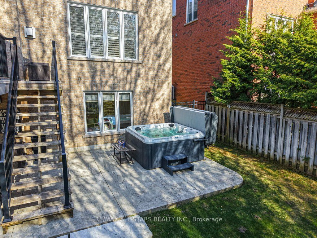 • Professionally landscaped backyard featuring a hot tub, deck, and mature gardens.