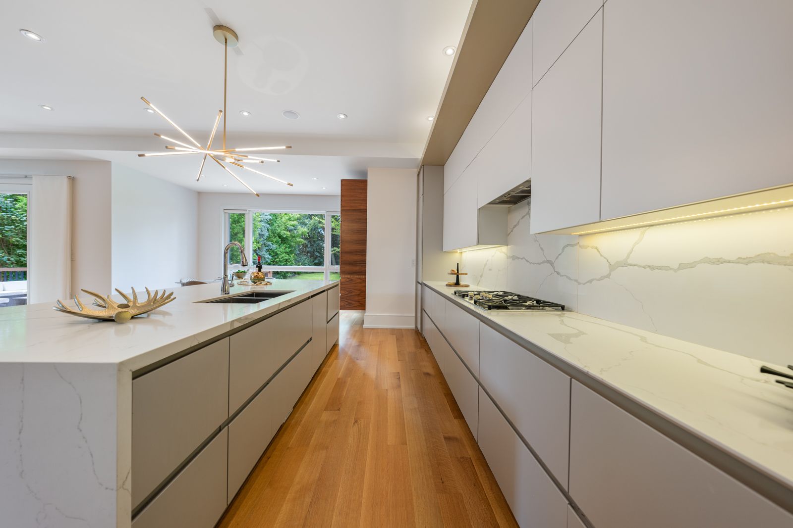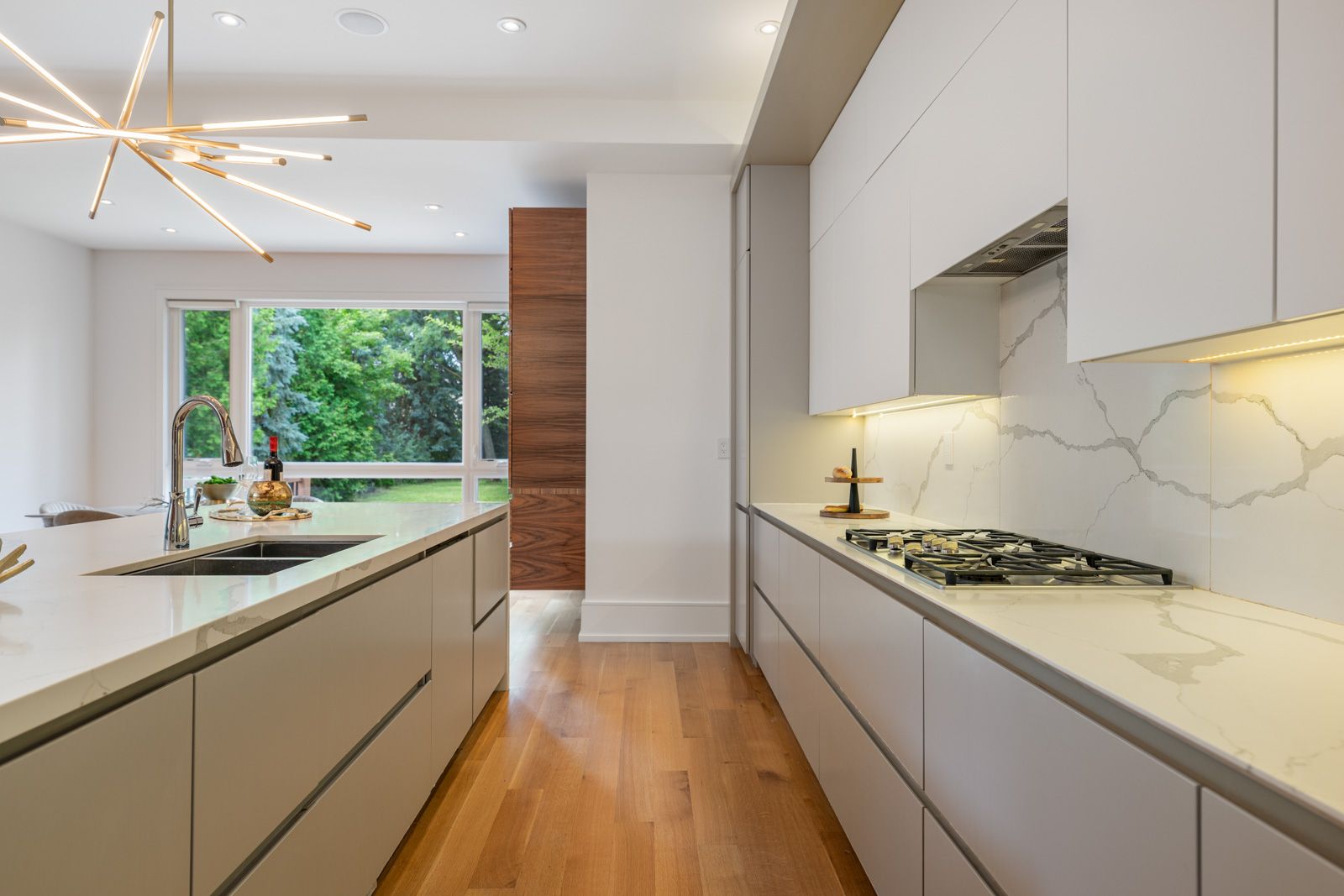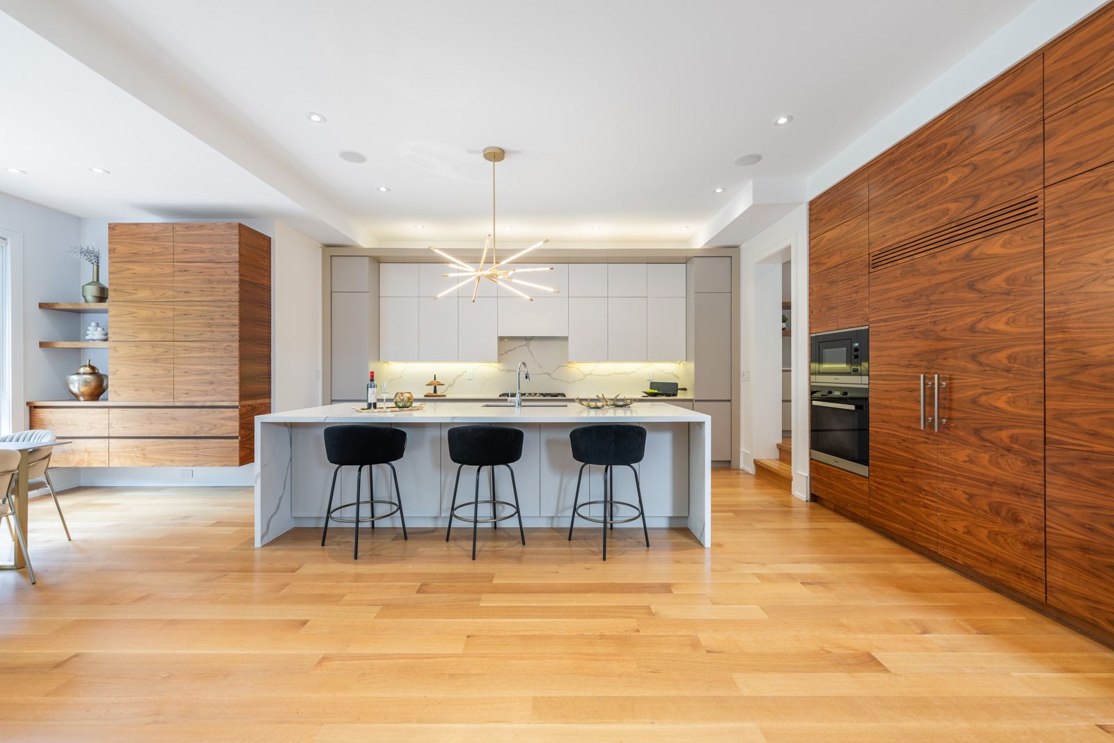 • Gourmet kitchen featuring quartz countertops and Miele appliances.