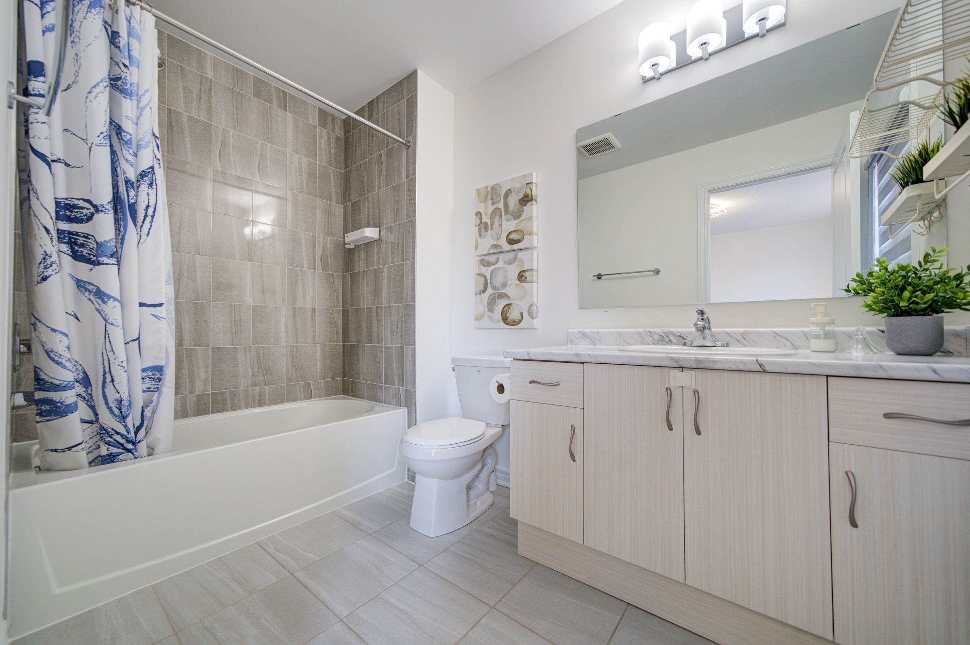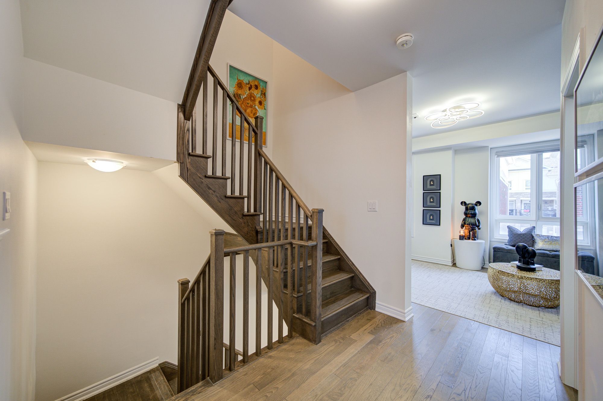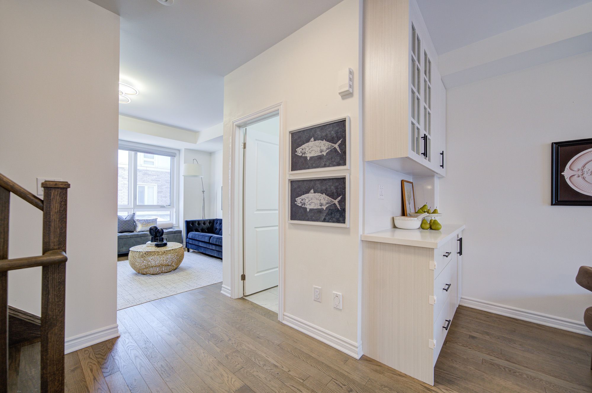 • Bright and open living space with 9 ft ceilings and large windows.