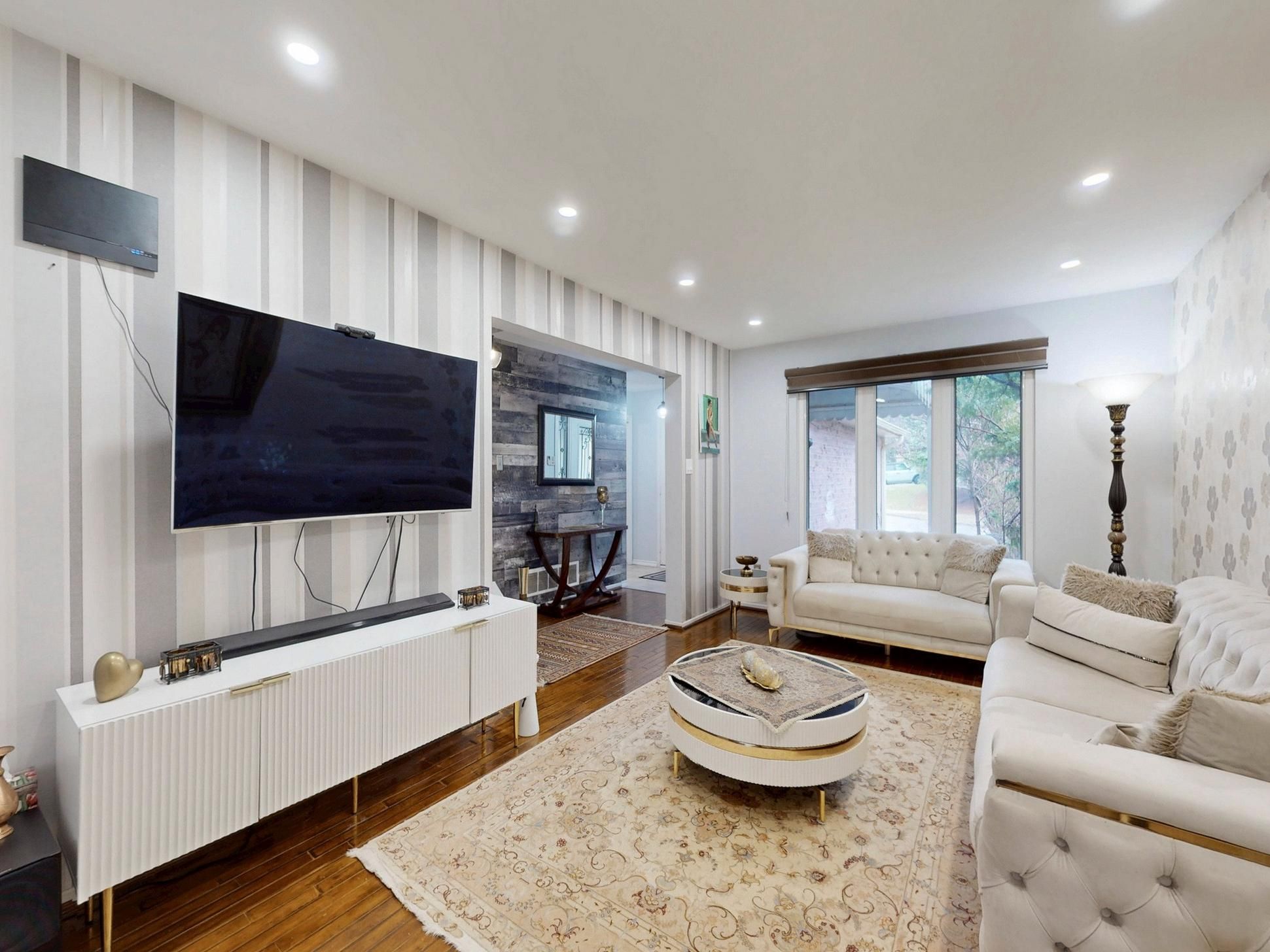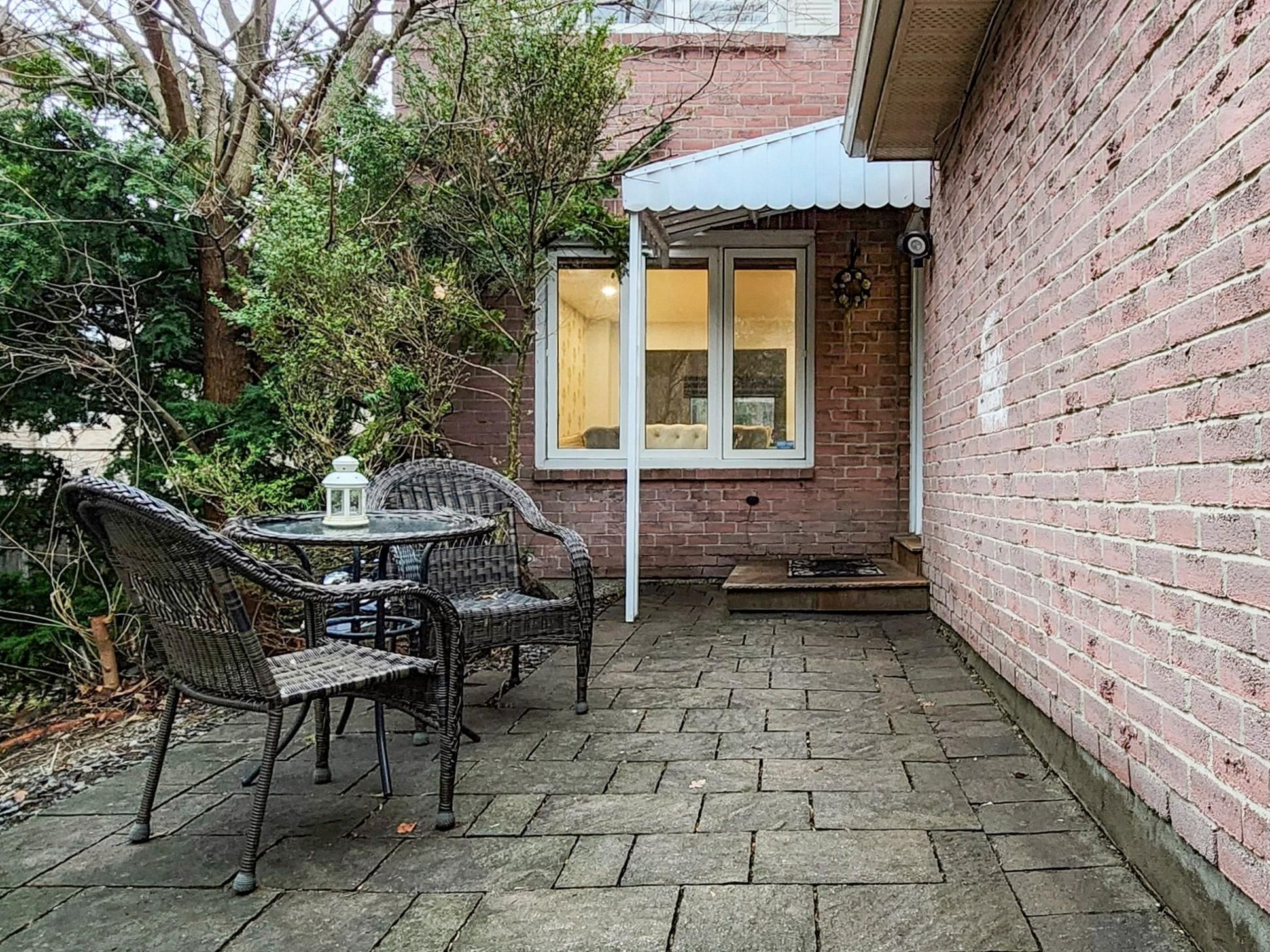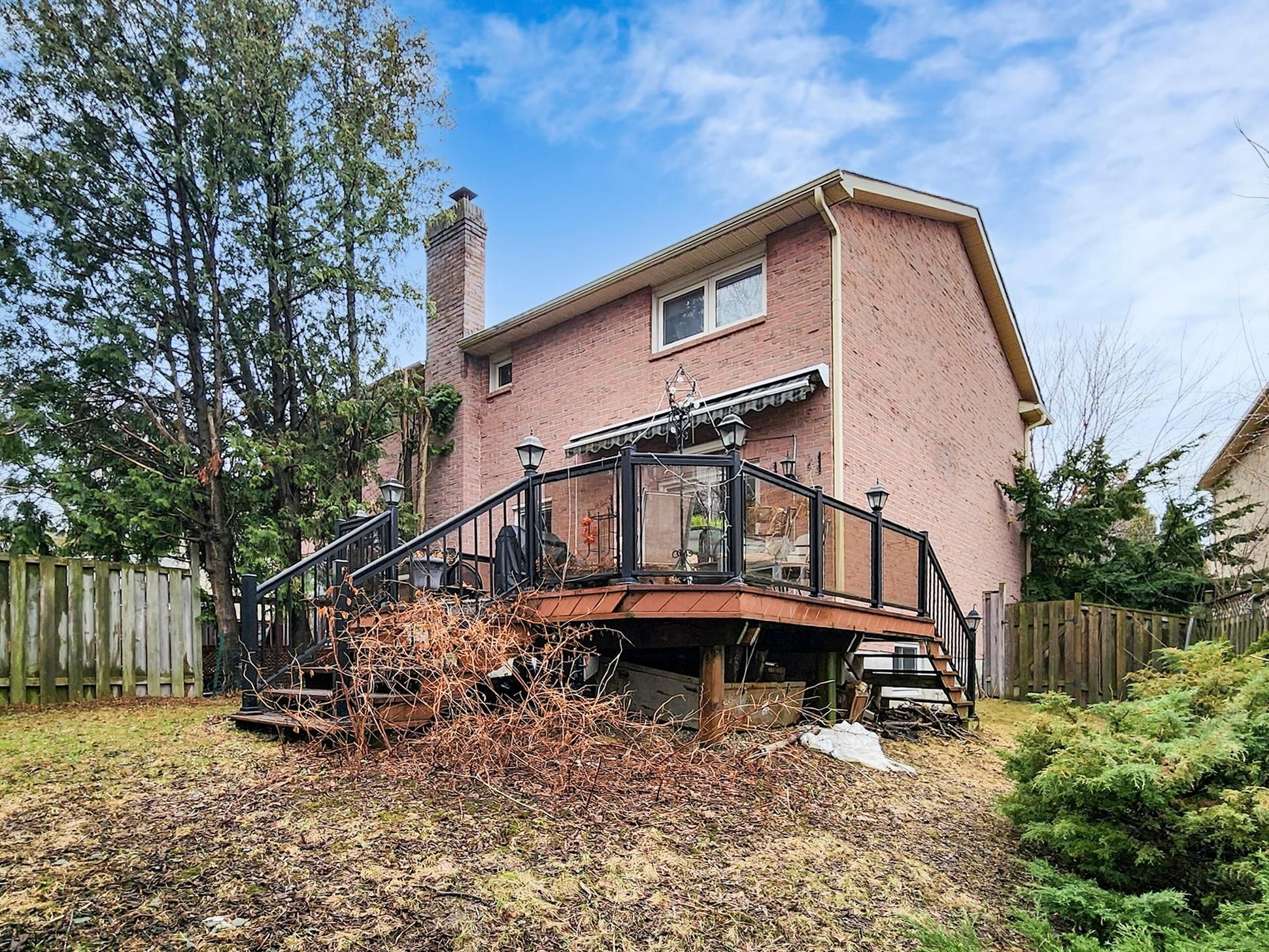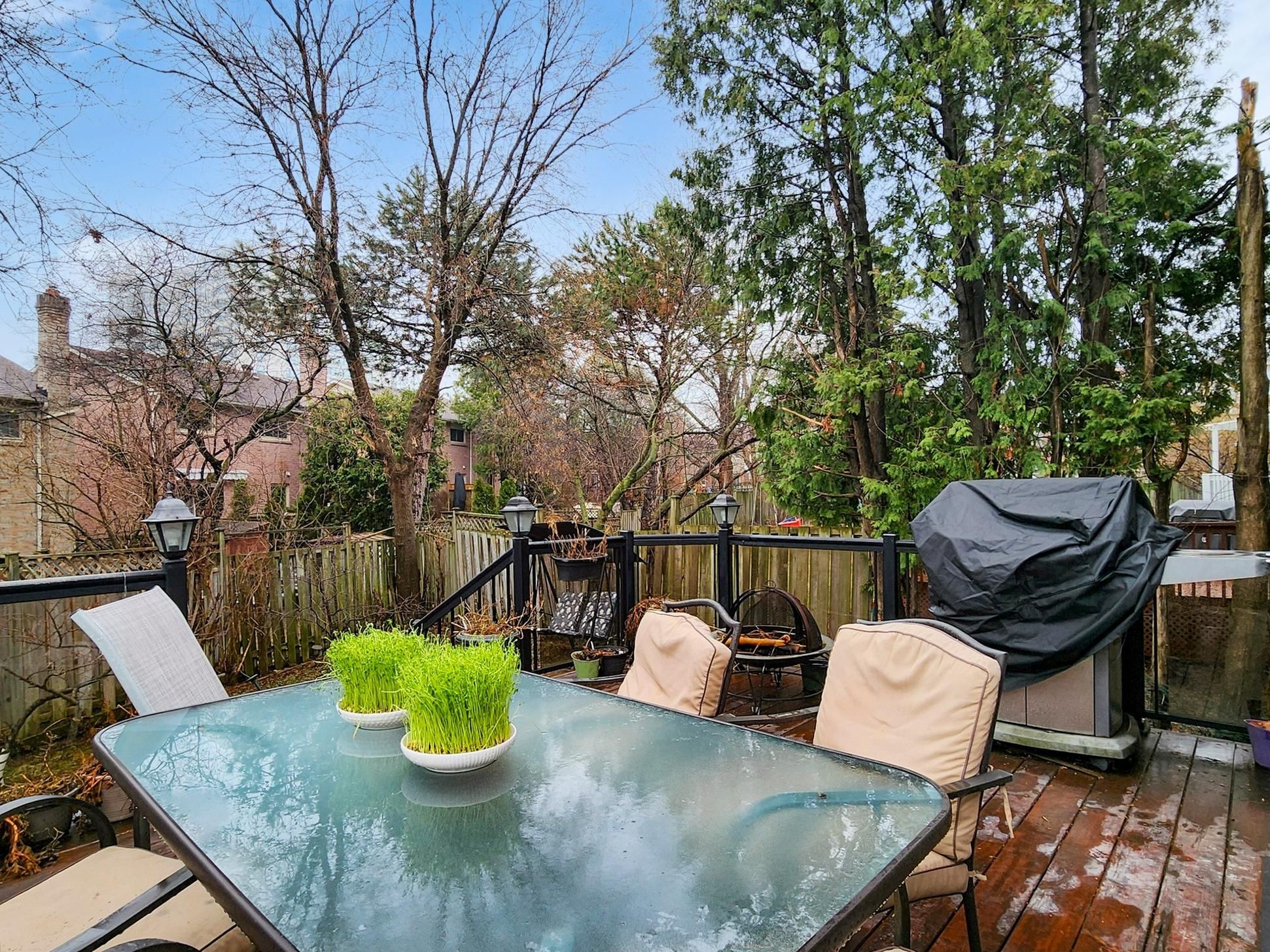 Bright and spacious 3+1 bedroom home in a prime, highly desirable thornhill location, offering over 1,500 sq ft of thoughtfully designed living space. A charming front patio provides a warm welcome into the home, where beautiful hardwood flooring flows throughout the main level. An inviting foyer leads to a large, sun-filled living and family room combined with the dining area, which offers direct access to a stunning oversized outdoor deck-perfect for entertaining and relaxing. The modern kitchen features stainless steel appliances, granite countertops, ceramic flooring, and sleek finishes, ideal for everyday living and hosting. The second floor showcases a newly renovated staircase and contemporary flooring, along with three generously sized bedrooms featuring large windows that fill the space with natural light. The primary suite offers a spacious walk-in closet and a well-appointed 3-piece ensuite. The finished basement includes above-grade windows, providing plenty of natural light, a cozy wood-burning fireplace, and an additional bedroom with a 3-piece ensuite, complete with a spa-like jacuzzi tub. Situated in a sought-after neighbourhood close to top-rated schools, community centres, libraries, public transit, shopping, restaurants, and more, this home offers comfort, style, and convenience in an unbeatable location.