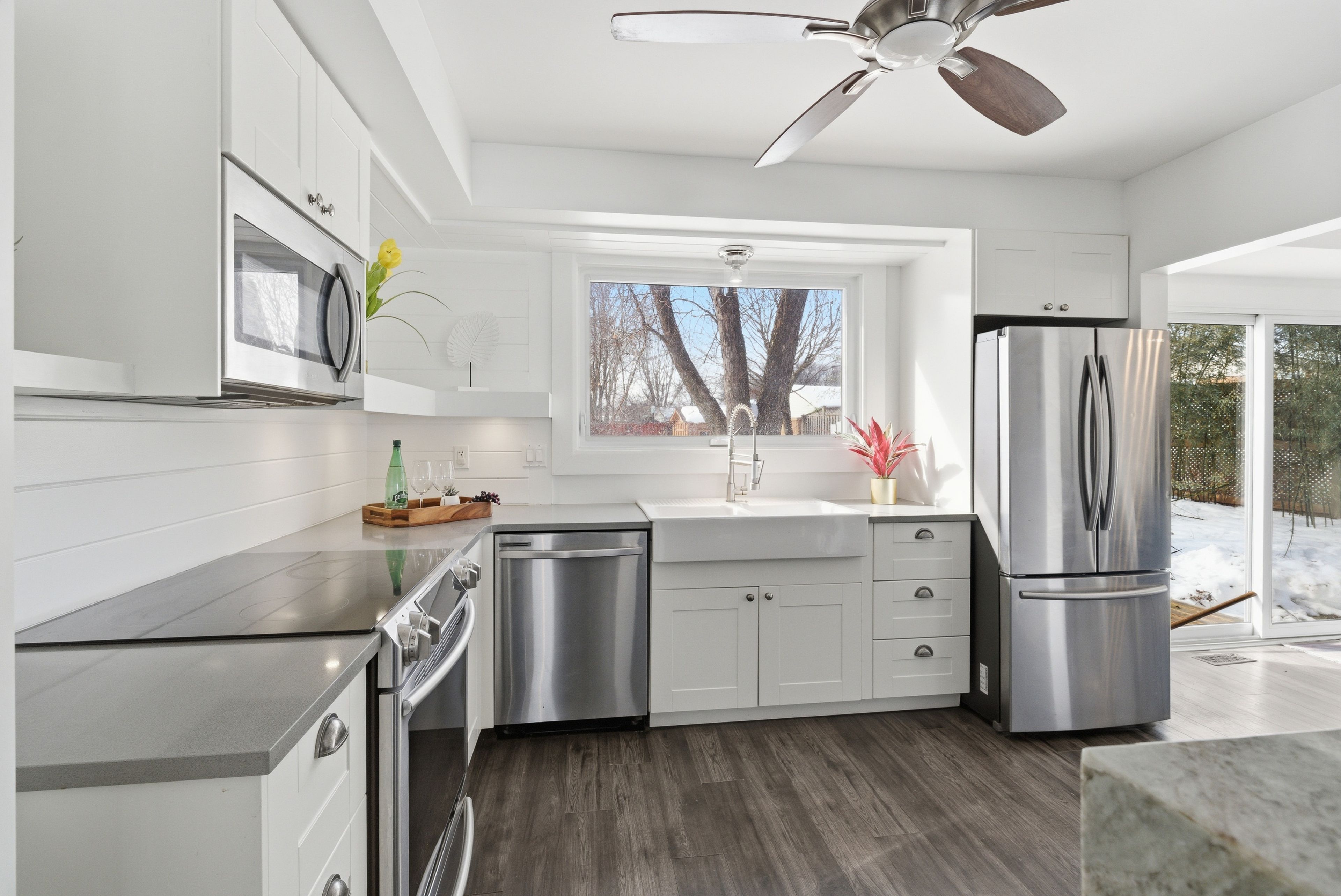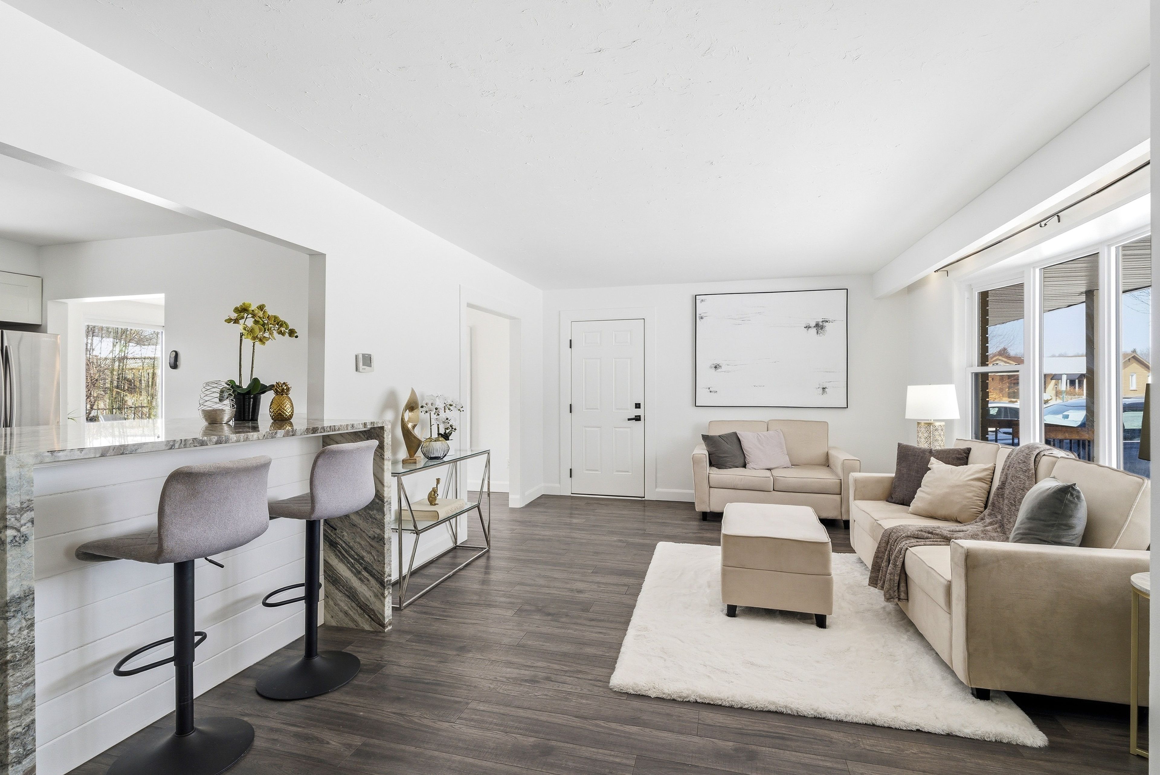 Opportunities like this don't come often! Perfect two-family home or granny suite. $$$ for additional income potential or extra living space in fully finished basement with separate entrance and separate kitchen, laundry - this is a prime opportunity for investors or savvy buyers seeking built-in rental income from day one. Upper level three bedrooms, four-piece bath, stunning kitchen with granite and garden doors to deck. Lower level separate entrance to one-bedroom, two-floor unit with 2 piece bath & 3-piece baths, laundry, open-concept kitchen and living room. This stunning four-level side-split has been beautifully updated and delivers everything from an open-concept layout filled with natural light to a private backyard retreat designed for entertaining. Perfectly positioned near schools, shopping, and quick highway access. This home is your chance to secure a move-in ready gem. Come and see what this incredible home has to offer.