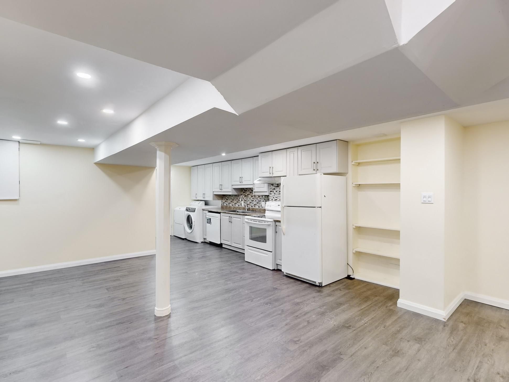 Step inside and you're greeted by a surprisingly cheerful space, high ceilings and natural light create an open, uplifting atmosphere you wouldn't expect from a basement. It's a comfortable retreat with a modern feel, perfect for someone looking for a peaceful place to settle in. The suite features a spacious bedroom with abundant storage, a sleek galley style kitchen, and the convenience of en-suite laundry. A large pantry or bonus storage room offers even more space to keep things tidy. The updated 3-piece bathroom adds a clean, stylish touch to the home. You'll also have one dedicated parking spot, making day-to-day life even easier. Located minutes from highway access, groceries, big box stores, restaurants, and u of t scarborough, this suite pairs comfort with unbeatable convenience. A bright, modern space in a fantastic location ready for you to move in and enjoy.