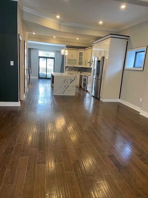 Over 2500 sq feet of unfurnished 3 years newly renovated 2 storey home with 4 bedrooms and 2 and half bathroom. This home has three skylight and two fire places. It is a legal duplex for one single family dwelling. Separate entrance and separate metres from downstairs. Parking on driveway only. No parking in the garage.