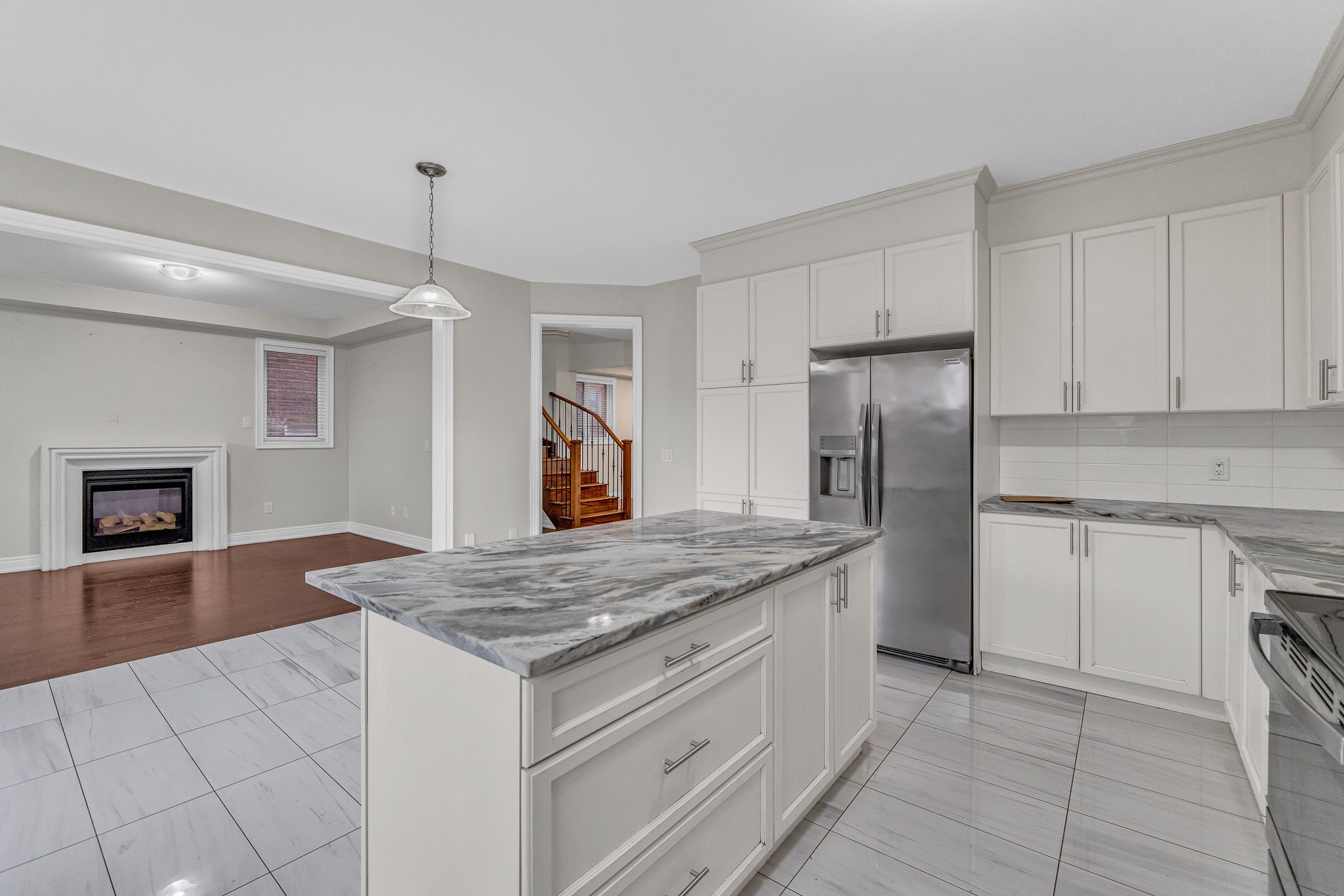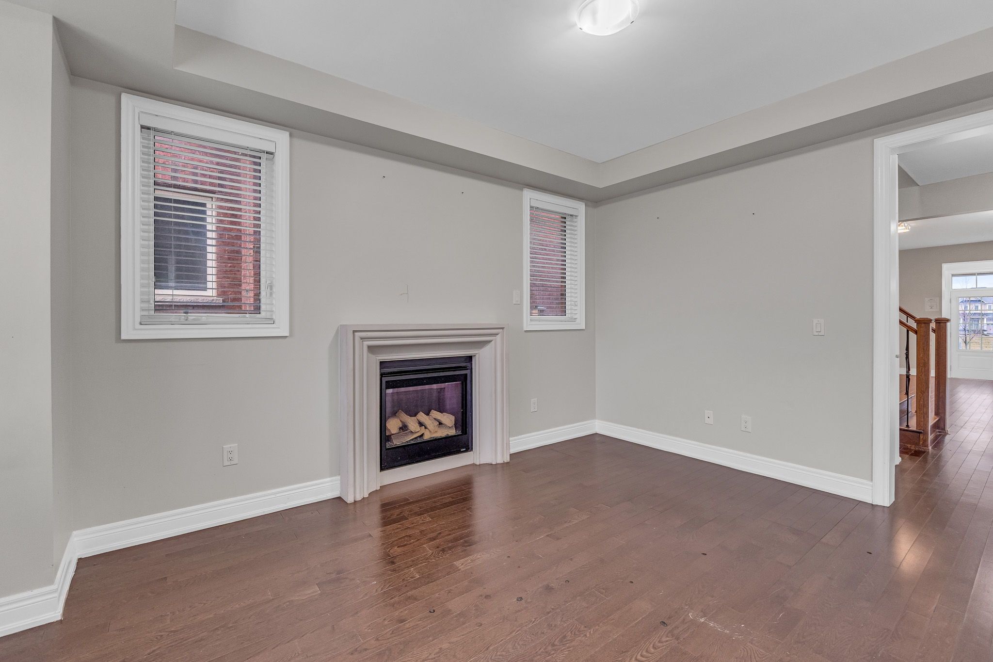 • Family room features hardwood flooring and a cozy fireplace.