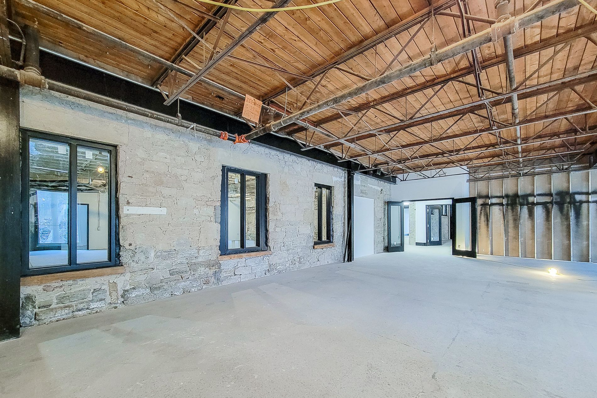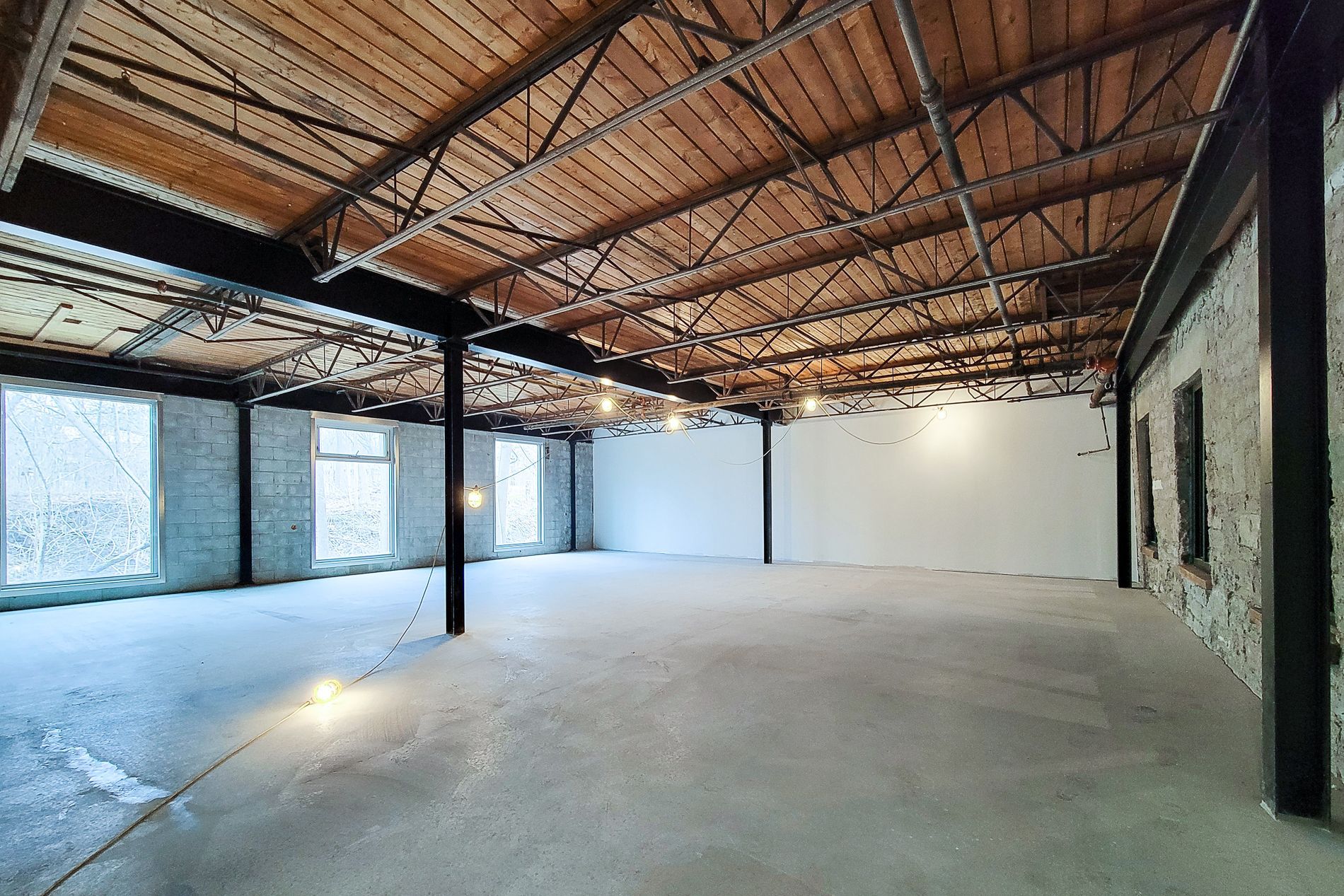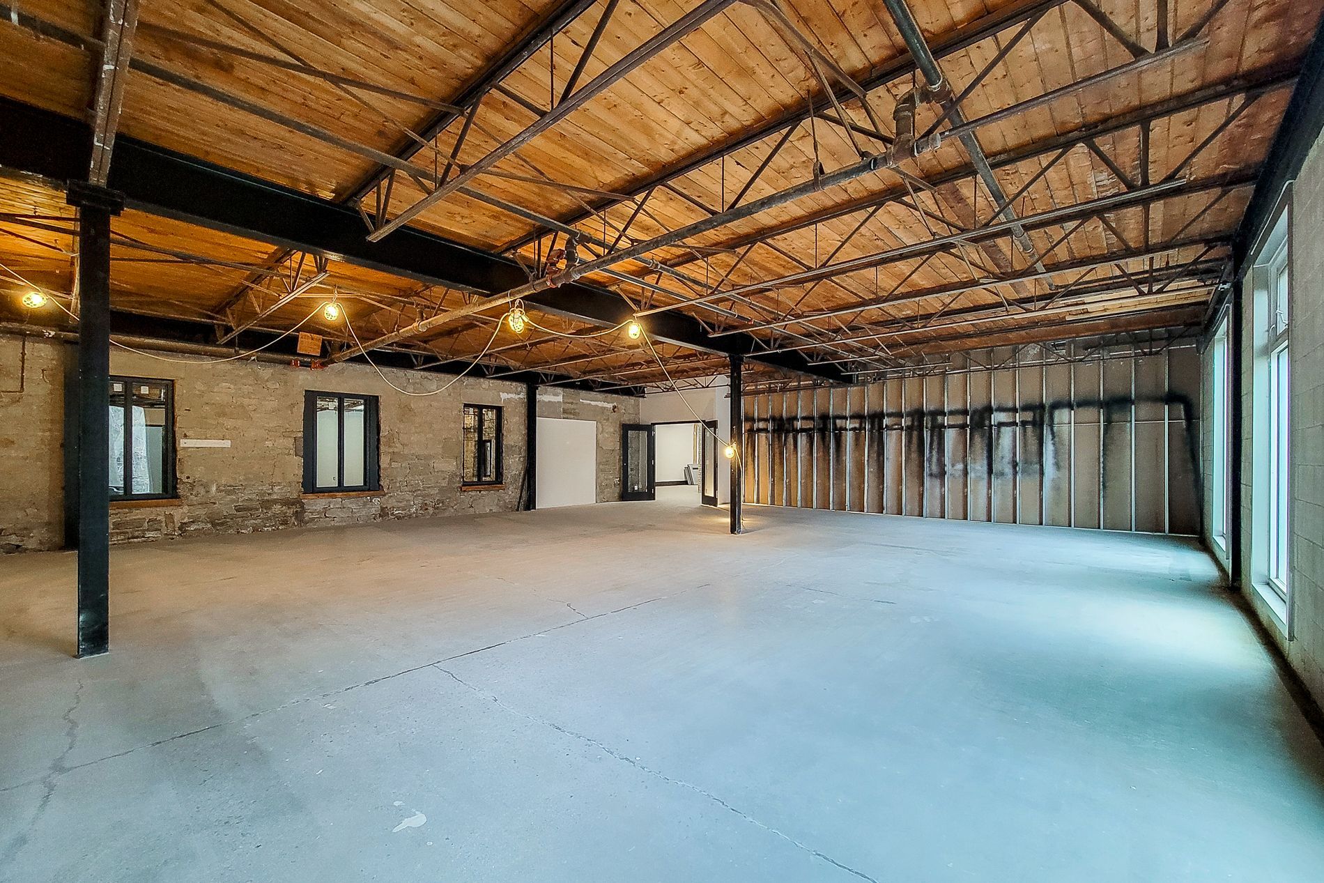 Unique space in a converted dundas landmark building, blending original architectural elements with a clean, functional layout. Exposed stone and beam construction, polished concrete floors, and large windows overlooking spencer creek bring in natural light and give the space a distinct feel. The unit is well suited to a variety of commercial uses, with access to shared loading within the building and ample on-site parking for staff and clients. C5 zoning permits office, studio, retail, service-based businesses, and light industrial uses, offering flexibility for a range of users