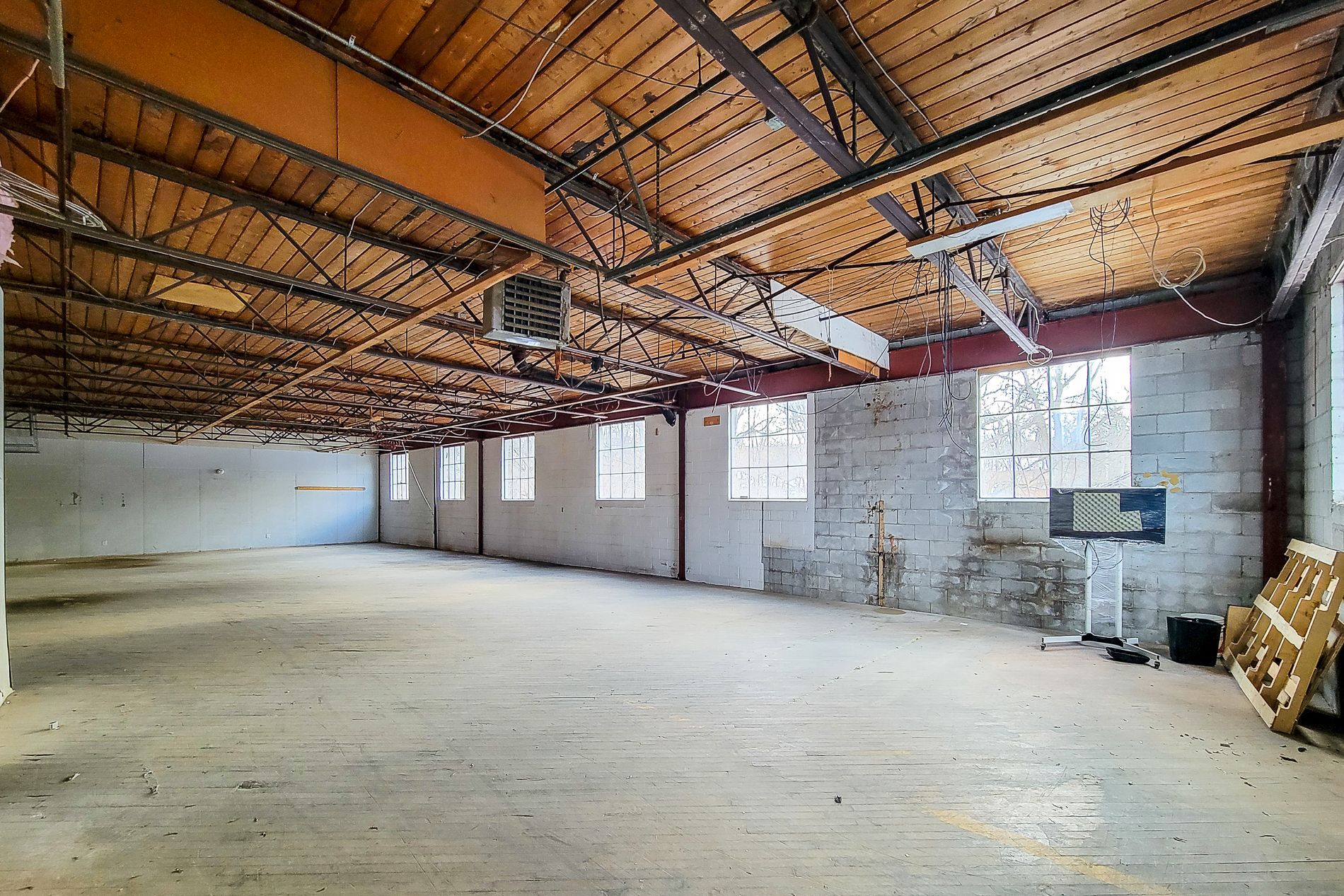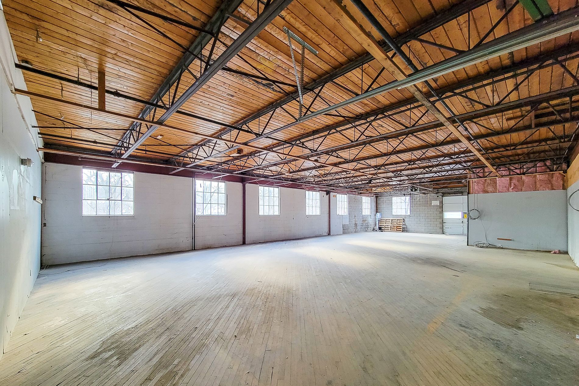 Unique space in a converted dundas landmark building, offering a bright and flexible layout within a distinctive setting. This larger unit features hardwood floors, exposed ceilings, and multiple oversized windows providing strong natural light throughout. Well suited for a range of commercial users, the space offers multiple access points, including garage-style doors, making it ideal for office, studio, or hybrid workspace needs. Access to shared loading and ample on-site parking for staff and clients. C5 zoning permits office, retail, service-based businesses, and light industrial uses.