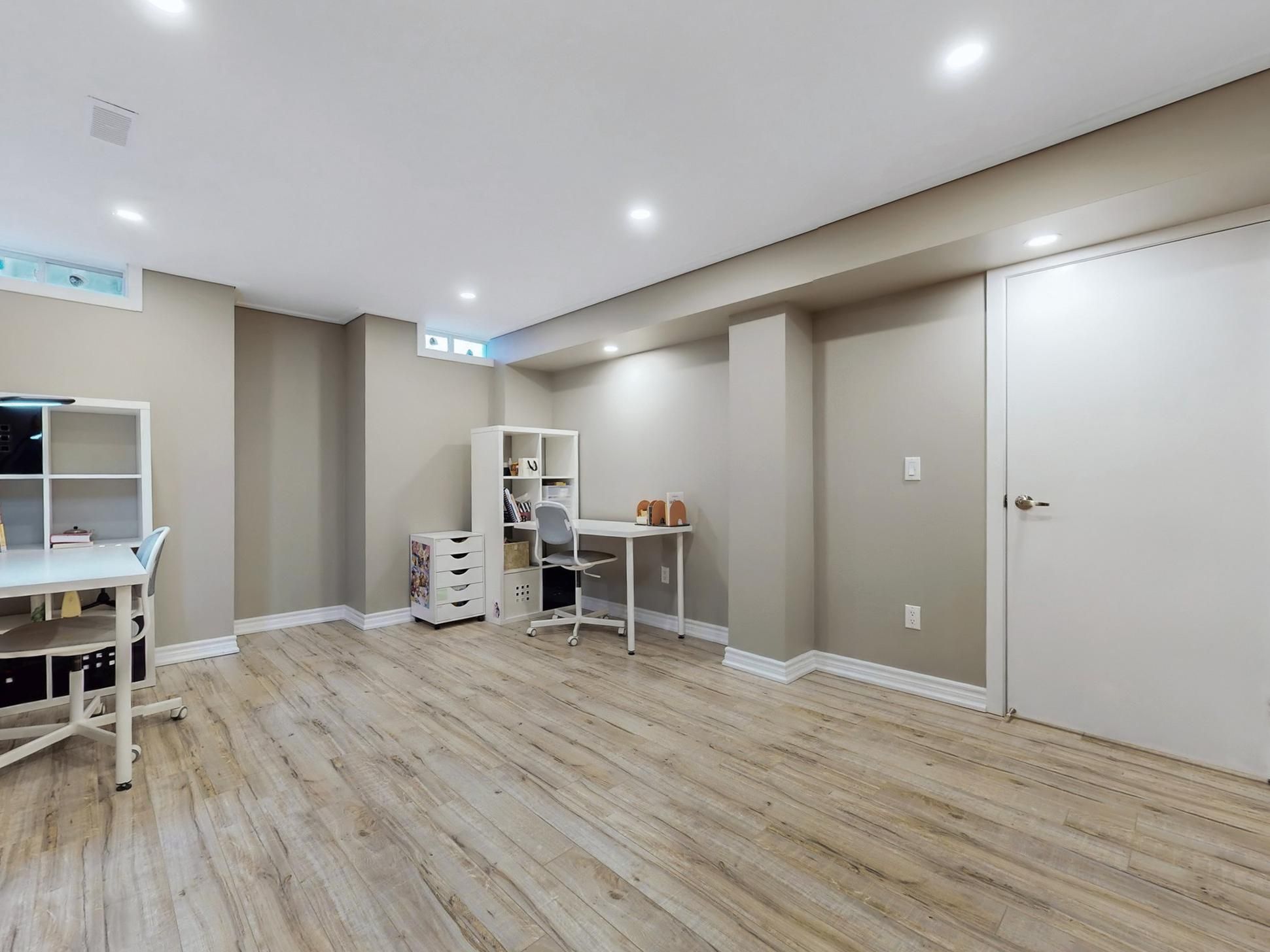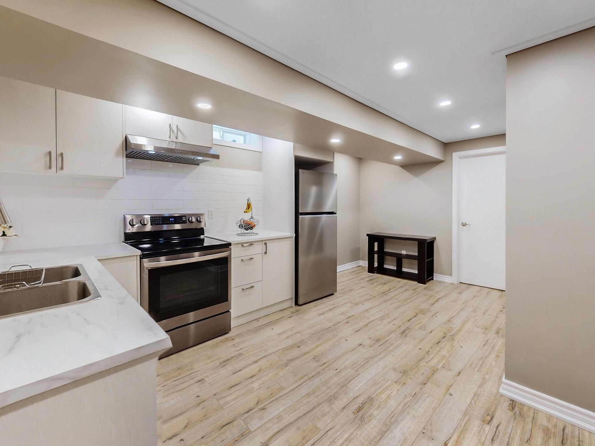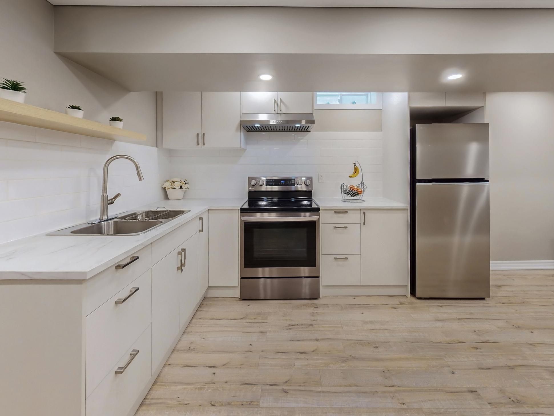 • Finished basement includes extra bedrooms and a modern kitchen.