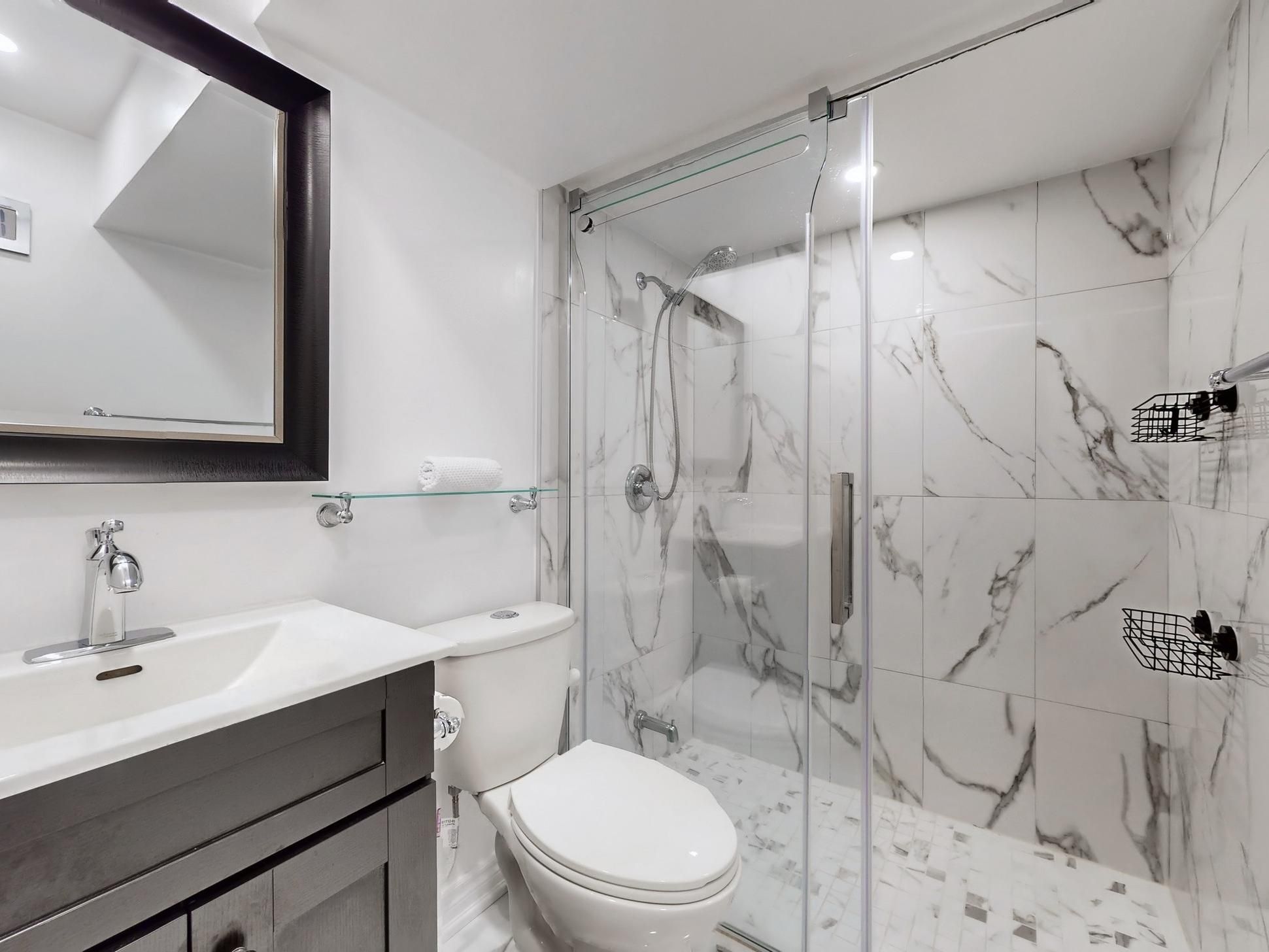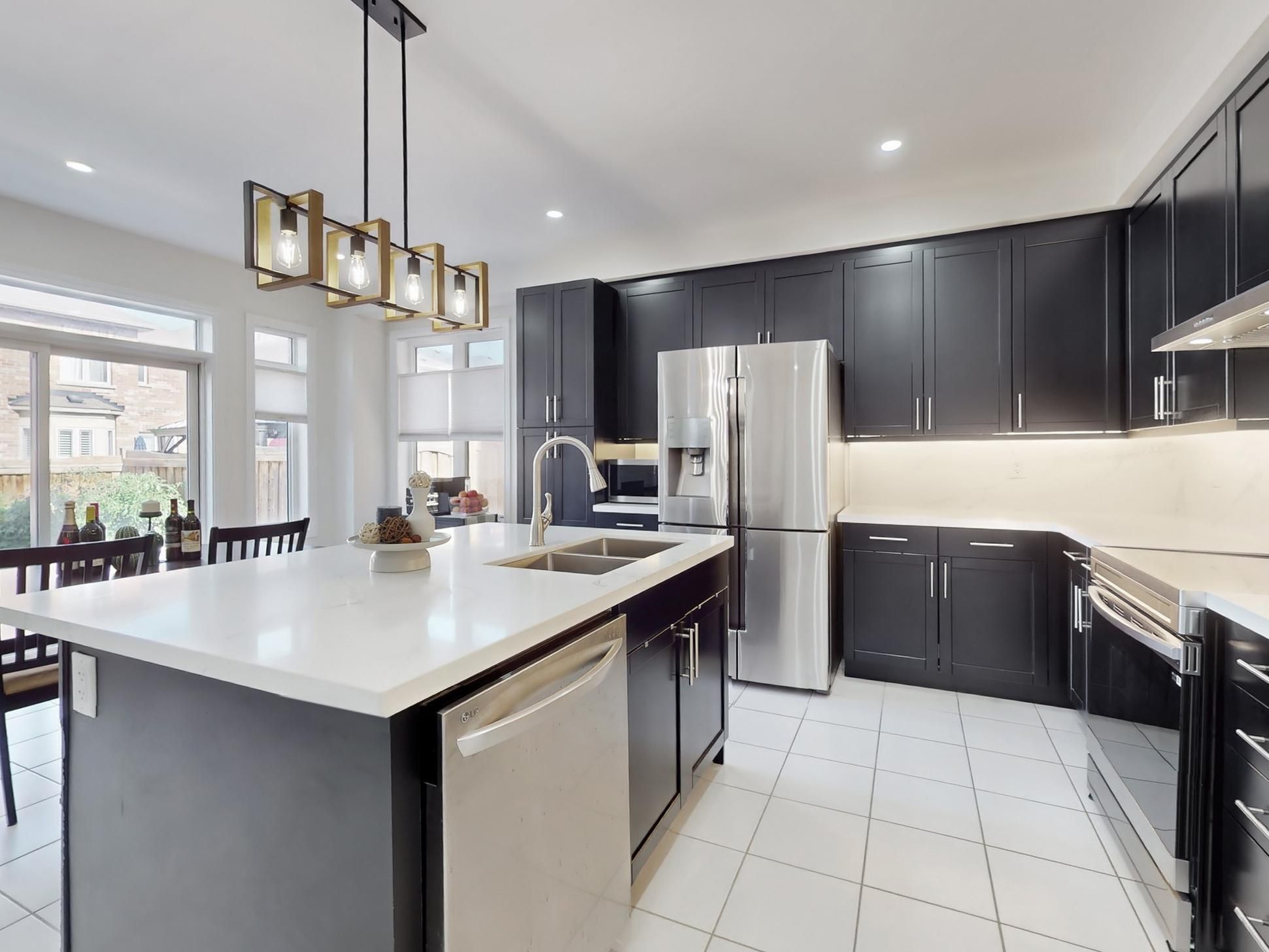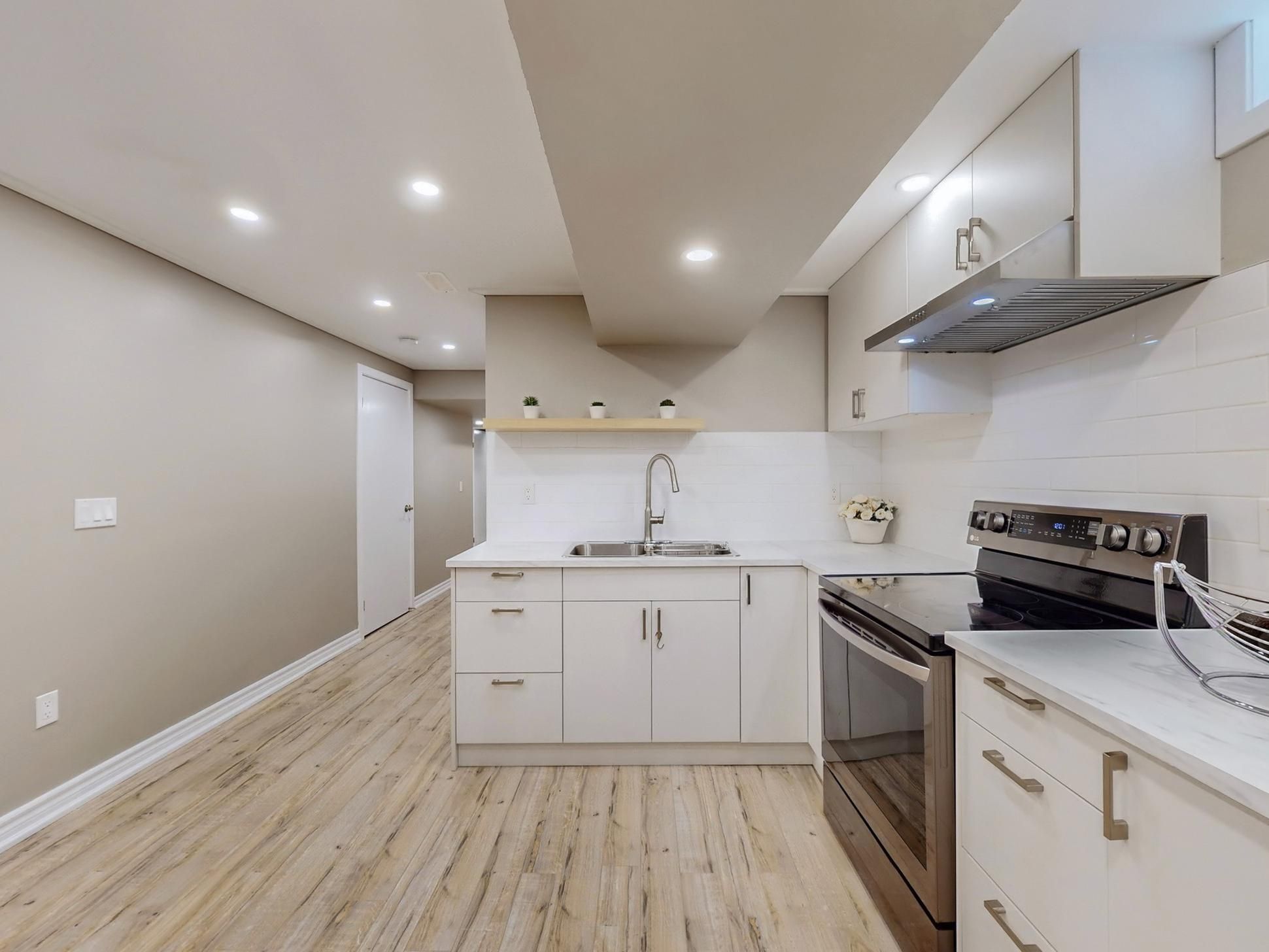 • Finished basement includes extra bedrooms and a modern kitchen.