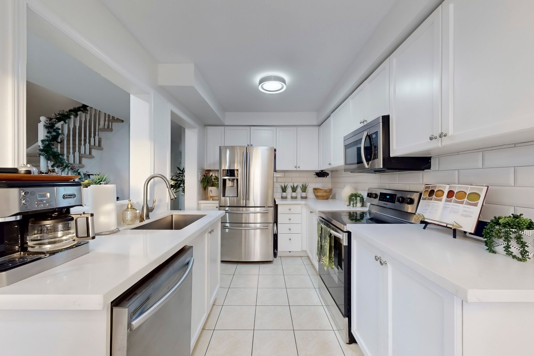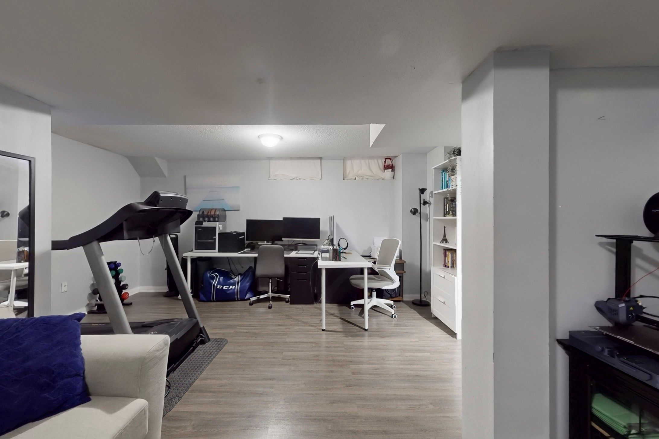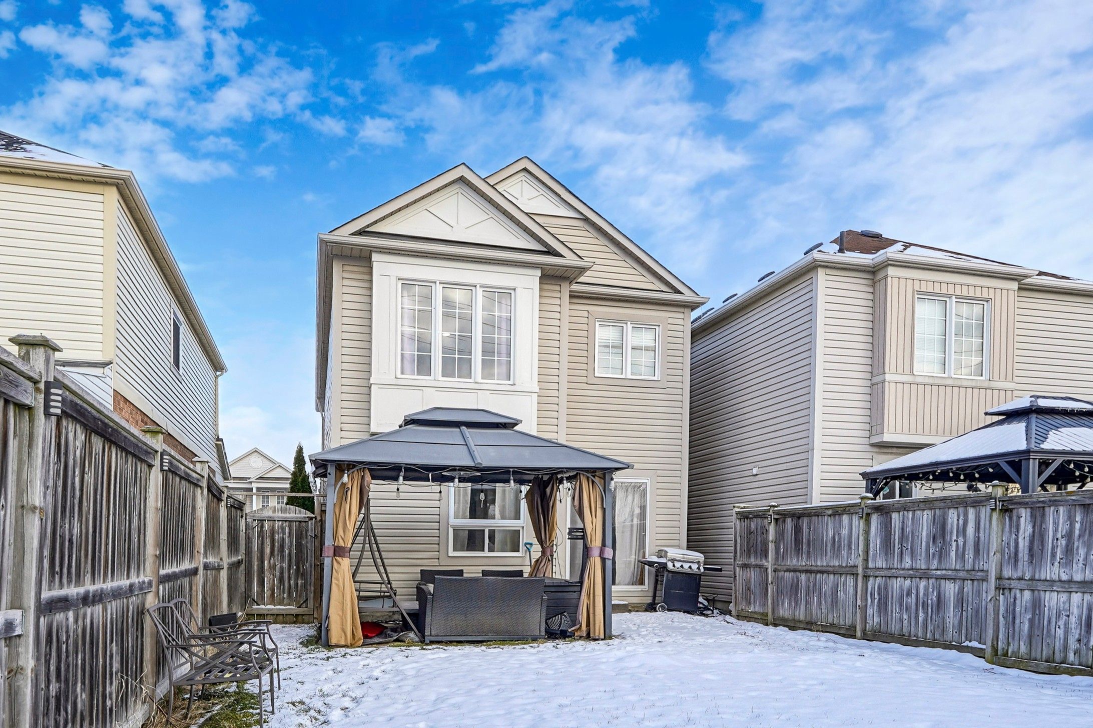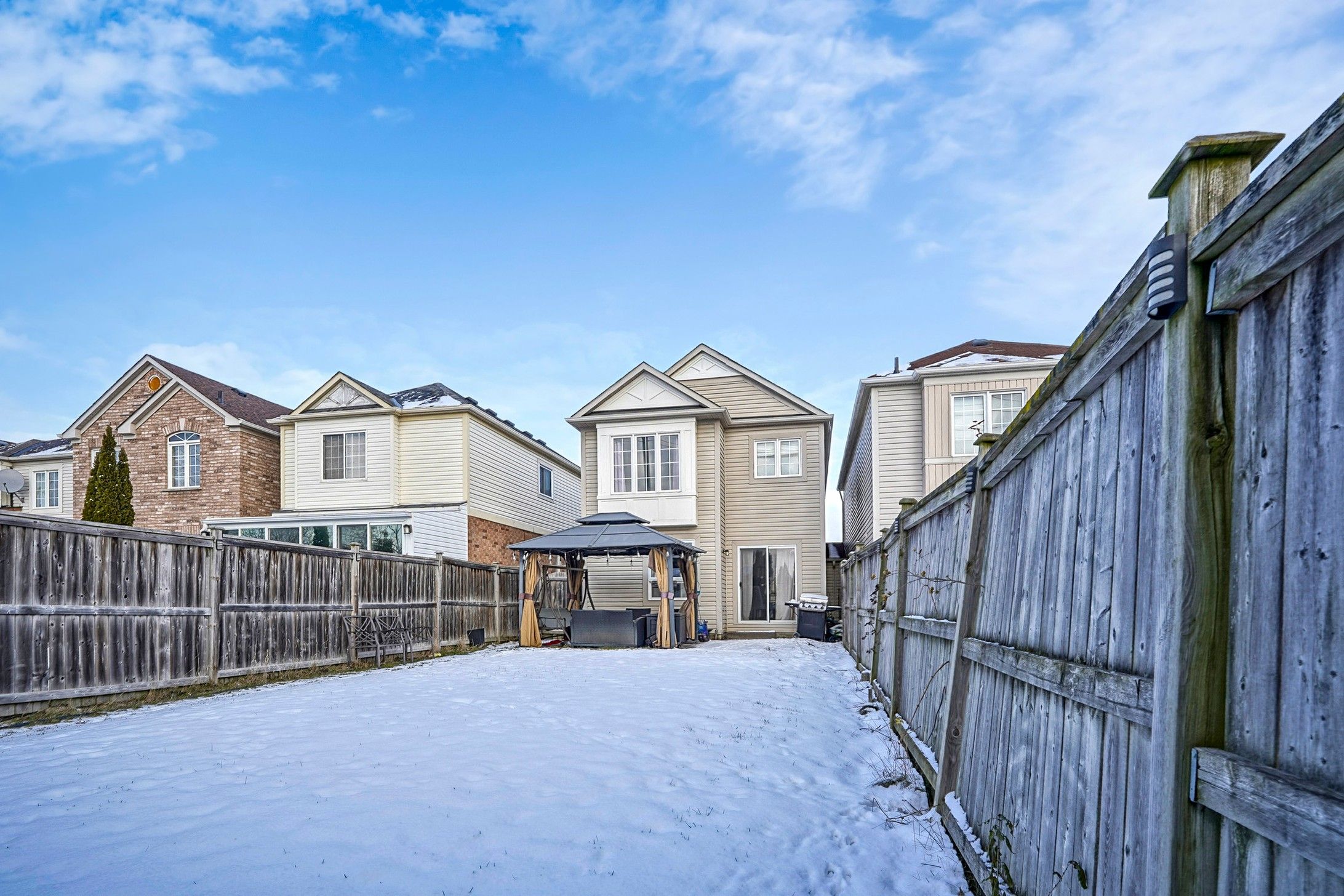 Discover this welcoming family-oriented home located in a desirable neighborhood, just minutes from every amenities and convenient transportation options: bus, go train, hwy 401, 412 & 407. The property offers exceptional parking with space for 3 cars on the driveway plus a single car garage - a total of 4 parking spots. Inside , you will find a clean, functional layout designed for confortable living. The kitchen features quartz countertops, stainless steel appliances, modern newer large sink & light fixture. From the breakfast area you walk out to a patio stone with a charming gazebo perfect for outdoor dining and relaxation on summer days. The combined living and dining area offers a warm, open space enhanced with wainscoting, laminate flooring, pot lights, and smooth ceilings. Upstairs are 3 bedrooms, including a spacious primary bedroom with a 4 pc ensuite equipped with a separate shower, and a walk in closet. The finished basement provides even more versatility with a dedicated office area and a recreation room, both with laminate flooring. This home blends comfort, practicality, and an excellent location - ideal for families and commuters alike. Steps from here there is splash park where kids can spend the hot summer days. Great schools belong to this area.