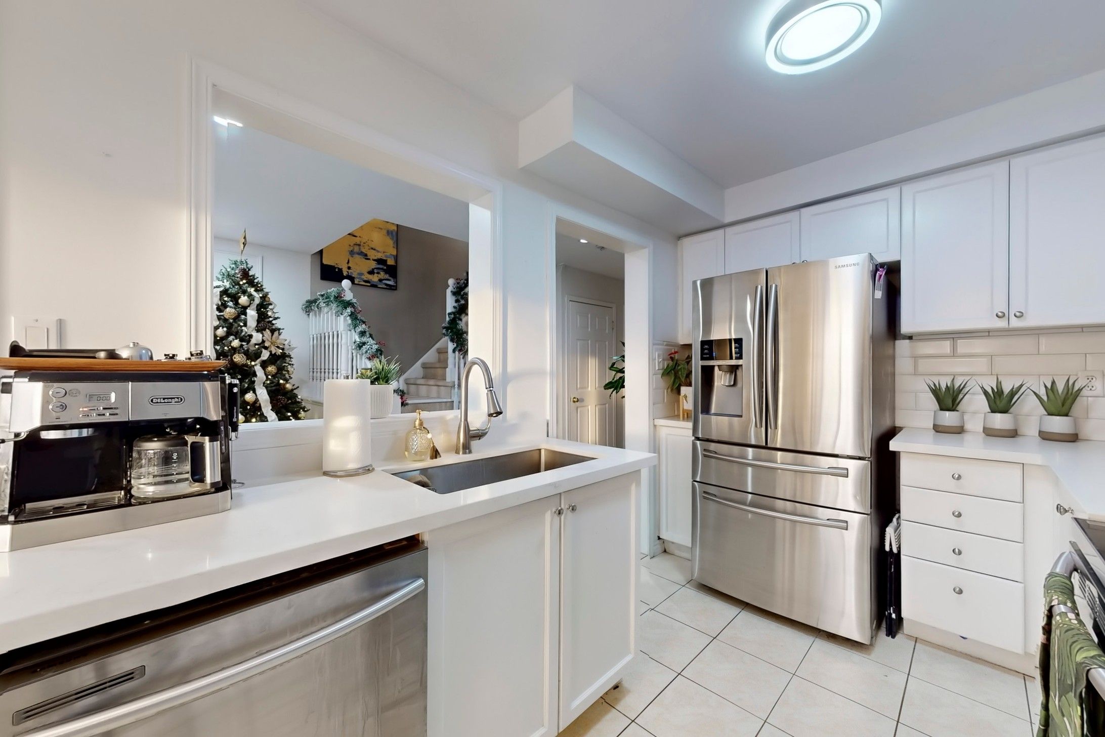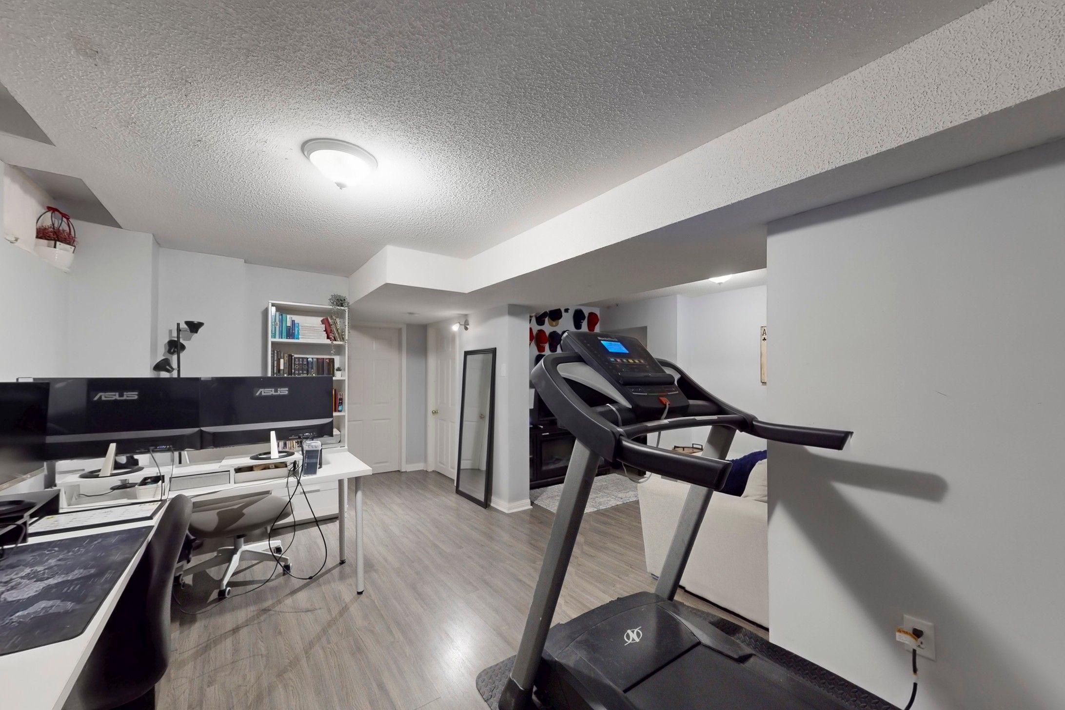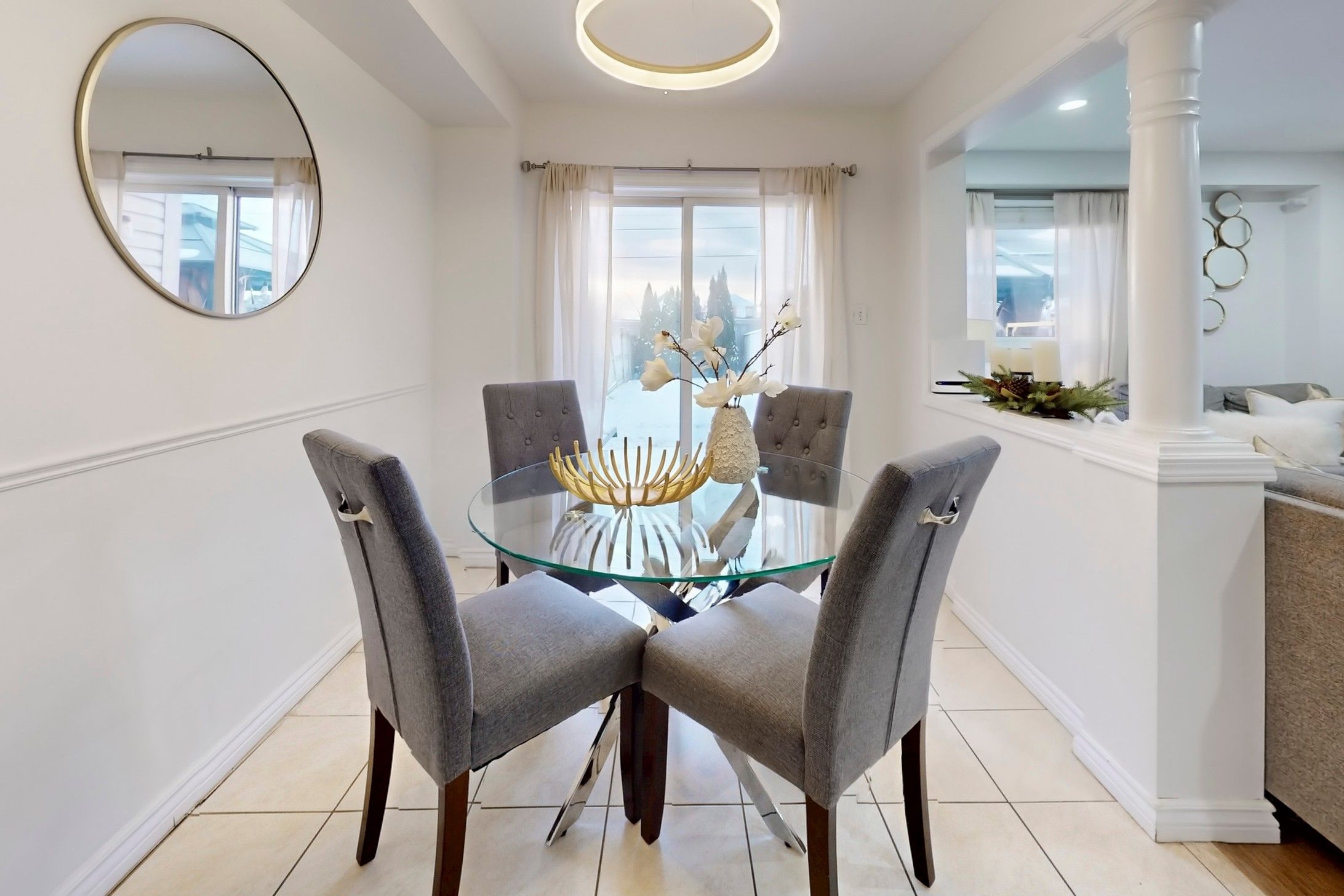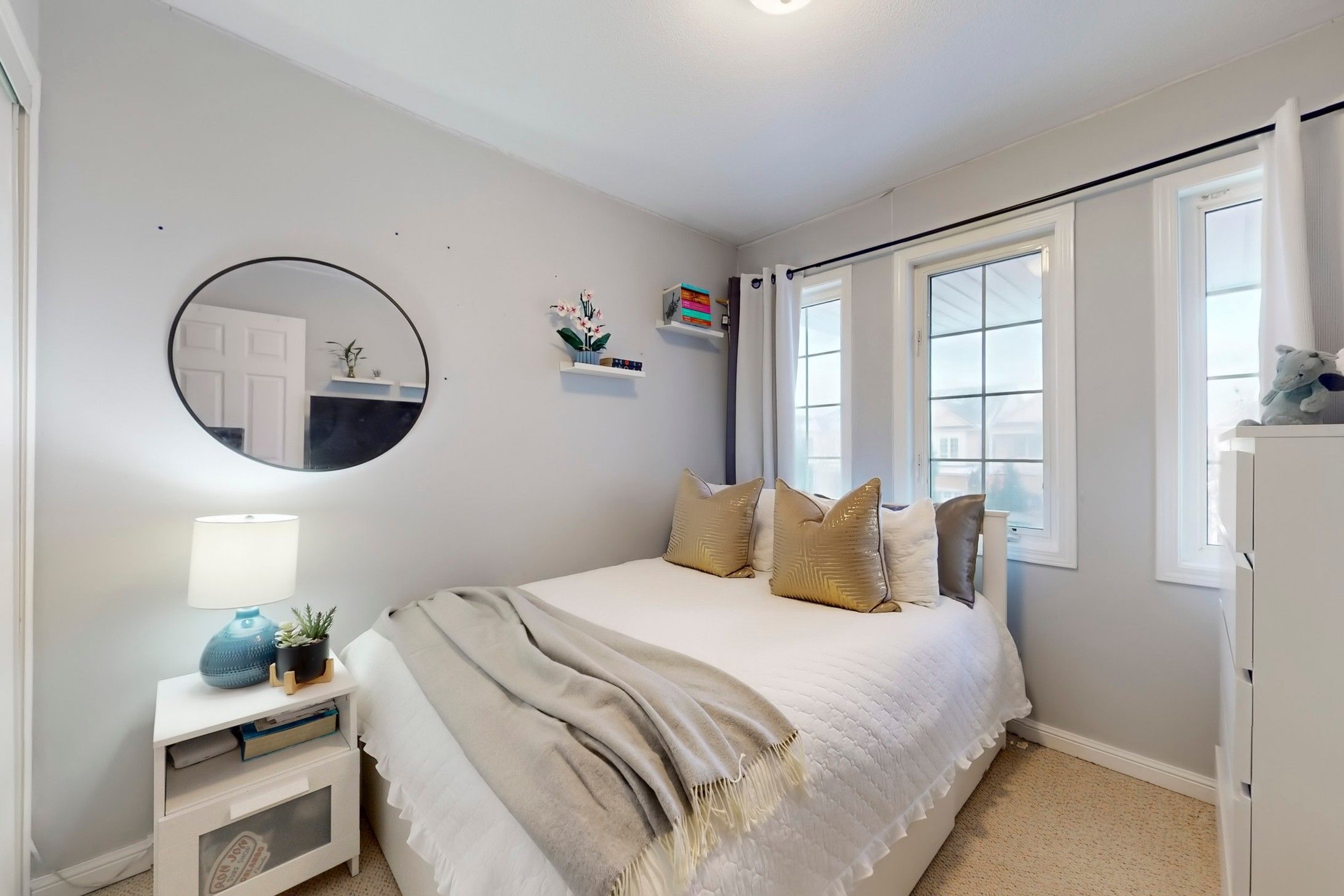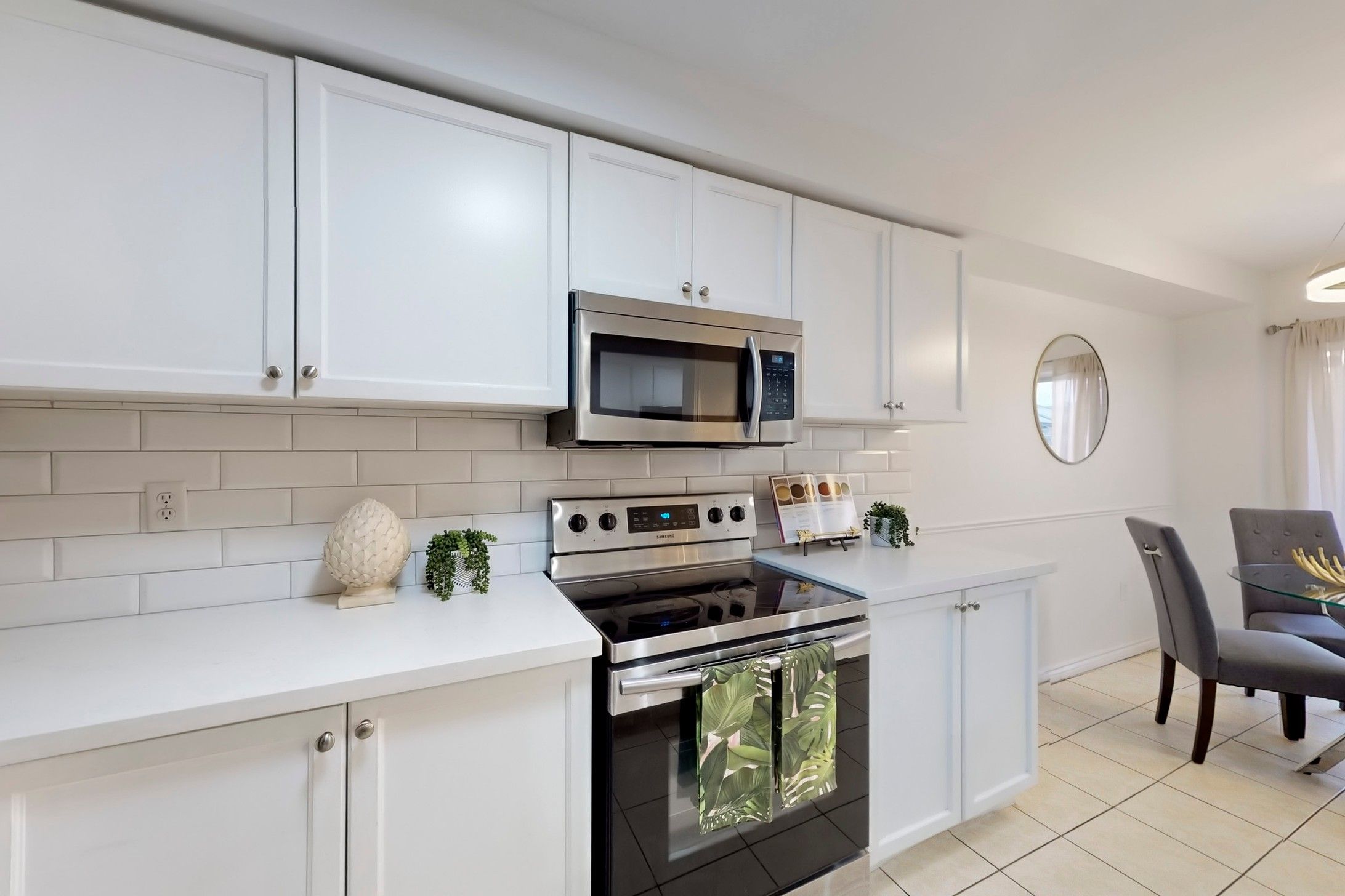 Discover this welcoming family-oriented home located in a desirable neighborhood, just minutes from every amenities and convenient transportation options: bus, go train, hwy 401, 412 & 407. The property offers exceptional parking with space for 3 cars on the driveway plus a single car garage - a total of 4 parking spots. Inside , you will find a clean, functional layout designed for confortable living. The kitchen features quartz countertops, stainless steel appliances, modern newer large sink & light fixture. From the breakfast area you walk out to a patio stone with a charming gazebo perfect for outdoor dining and relaxation on summer days. The combined living and dining area offers a warm, open space enhanced with wainscoting, laminate flooring, pot lights, and smooth ceilings. Upstairs are 3 bedrooms, including a spacious primary bedroom with a 4 pc ensuite equipped with a separate shower, and a walk in closet. The finished basement provides even more versatility with a dedicated office area and a recreation room, both with laminate flooring. This home blends comfort, practicality, and an excellent location - ideal for families and commuters alike. Steps from here there is splash park where kids can spend the hot summer days. Great schools belong to this area.