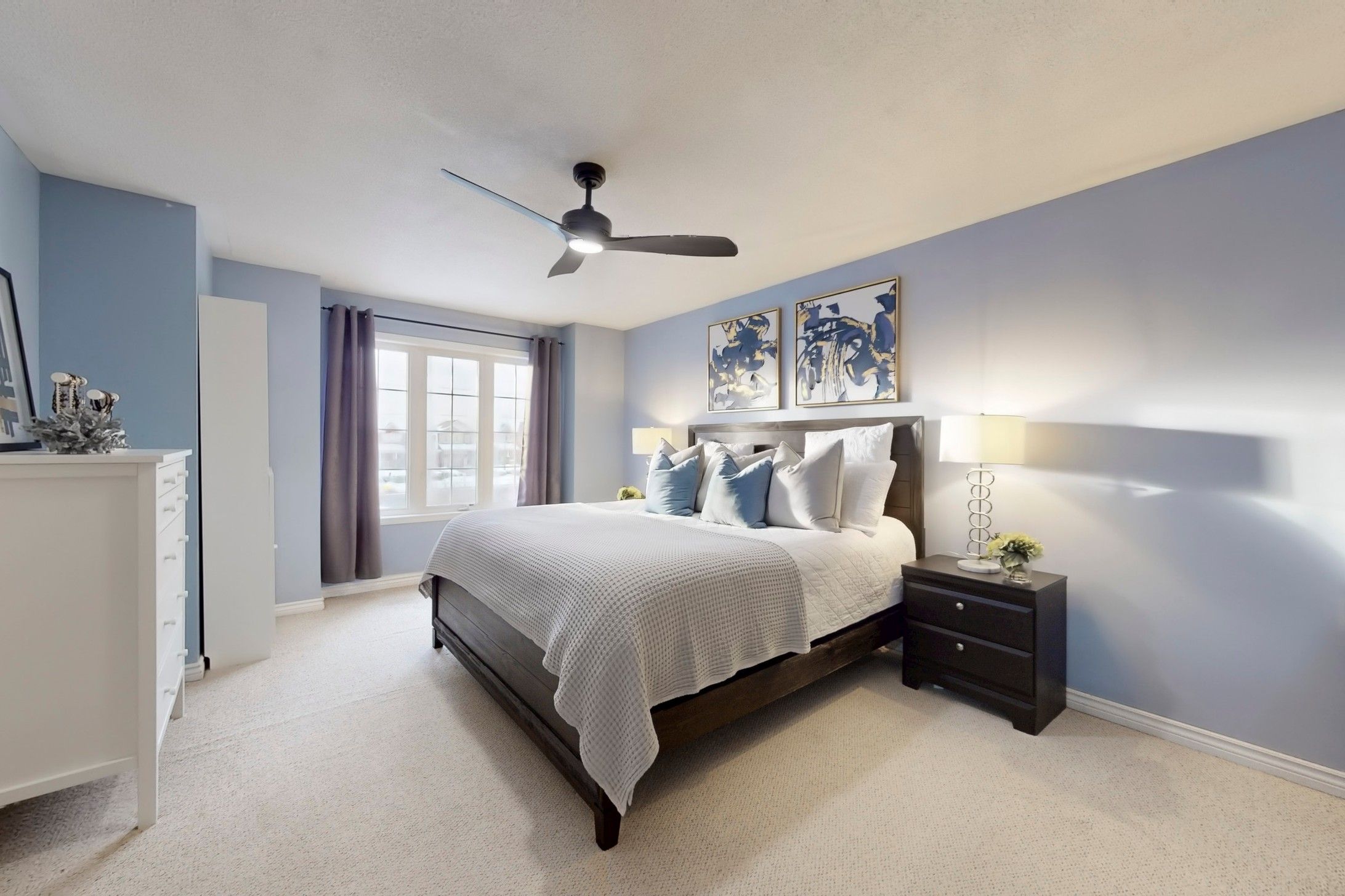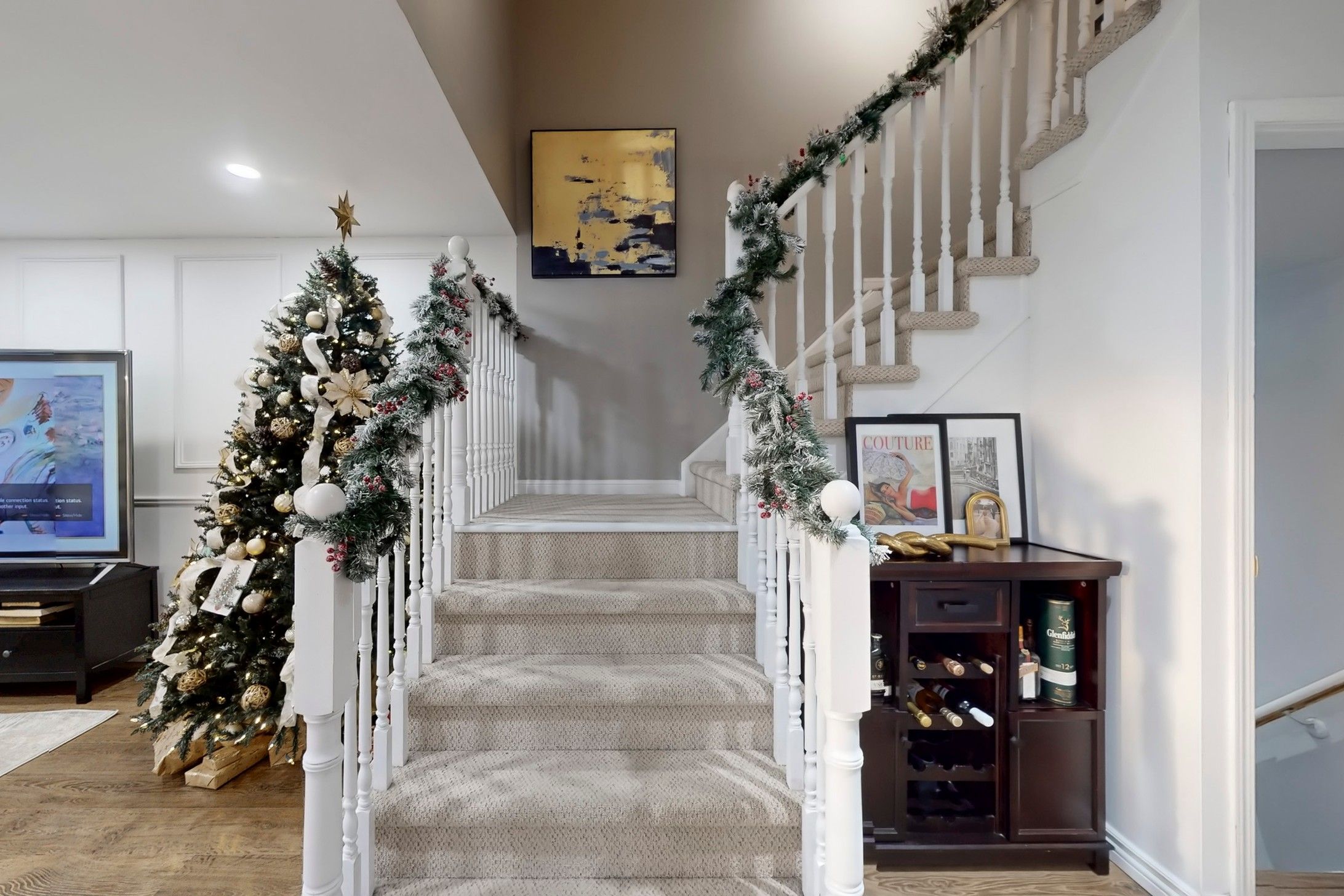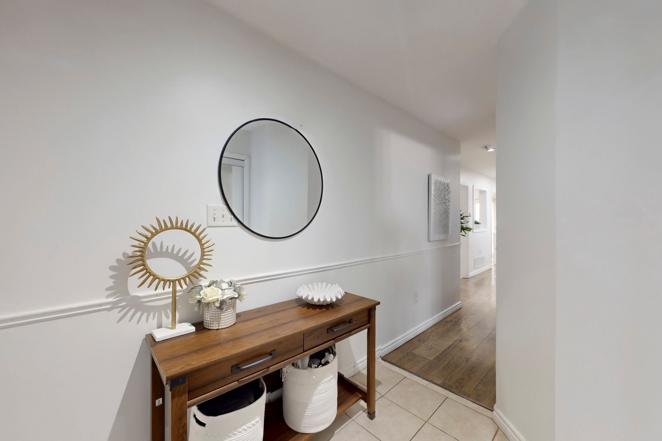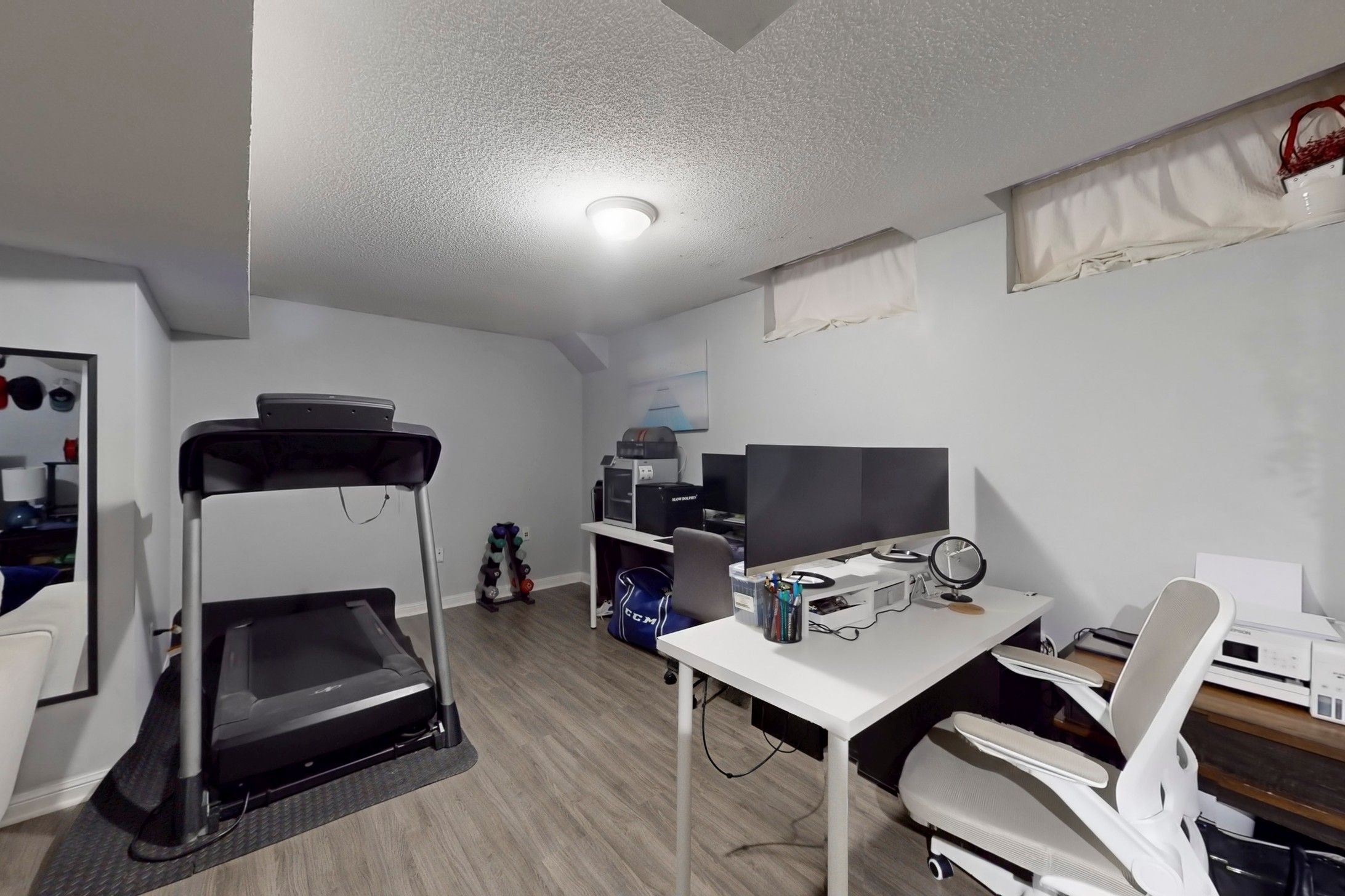 Discover this welcoming family-oriented home located in a desirable neighborhood, just minutes from every amenities and convenient transportation options: bus, go train, hwy 401, 412 & 407. The property offers exceptional parking with space for 3 cars on the driveway plus a single car garage - a total of 4 parking spots. Inside , you will find a clean, functional layout designed for confortable living. The kitchen features quartz countertops, stainless steel appliances, modern newer large sink & light fixture. From the breakfast area you walk out to a patio stone with a charming gazebo perfect for outdoor dining and relaxation on summer days. The combined living and dining area offers a warm, open space enhanced with wainscoting, laminate flooring, pot lights, and smooth ceilings. Upstairs are 3 bedrooms, including a spacious primary bedroom with a 4 pc ensuite equipped with a separate shower, and a walk in closet. The finished basement provides even more versatility with a dedicated office area and a recreation room, both with laminate flooring. This home blends comfort, practicality, and an excellent location - ideal for families and commuters alike. Steps from here there is splash park where kids can spend the hot summer days. Great schools belong to this area.