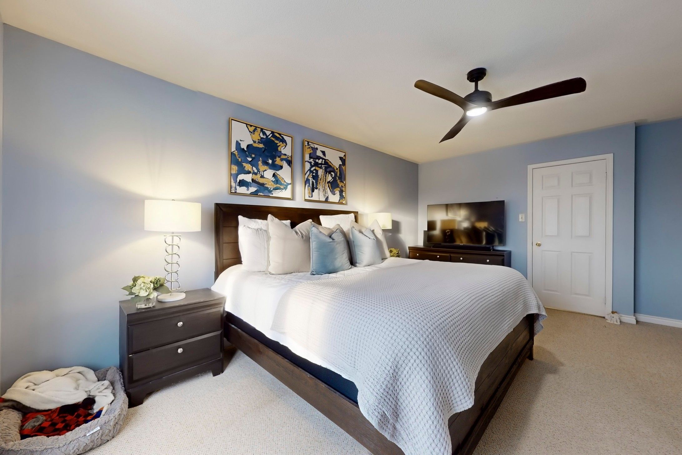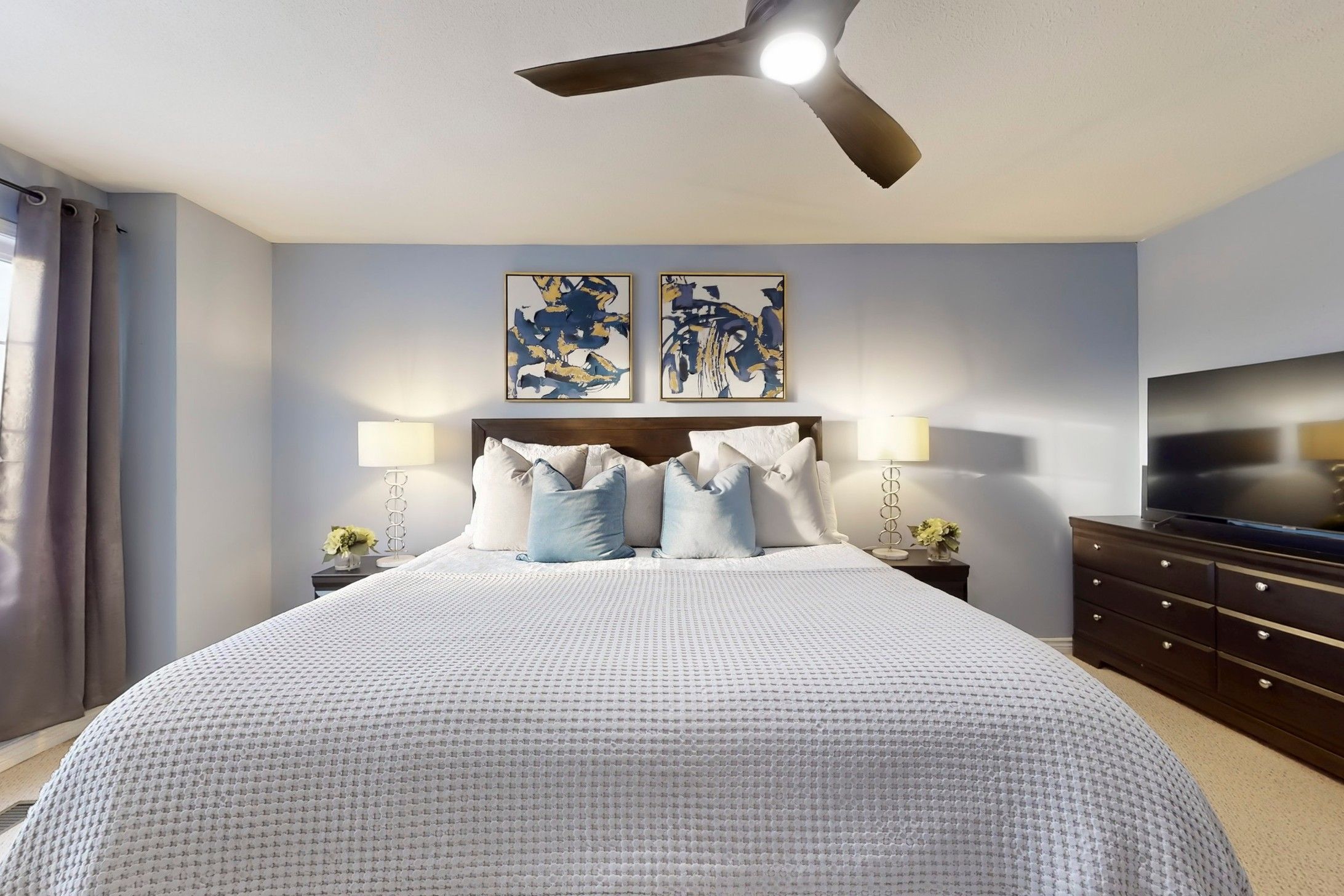• Functional layout with a modern kitchen featuring quartz countertops and stainless steel appliances.