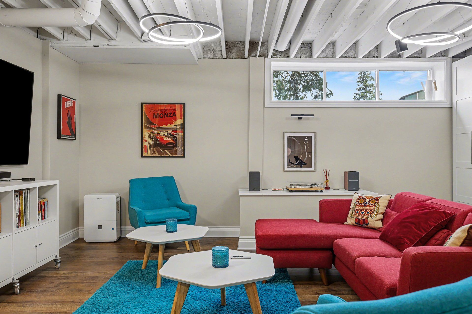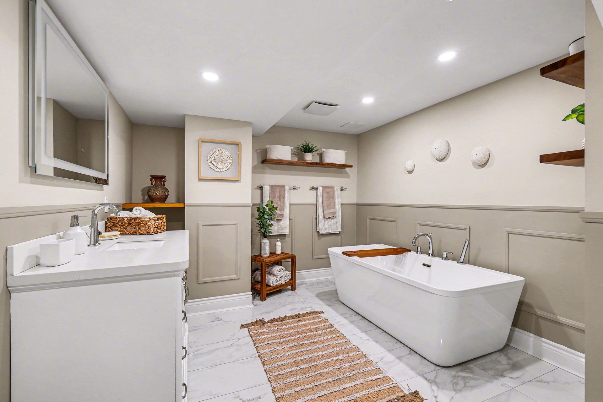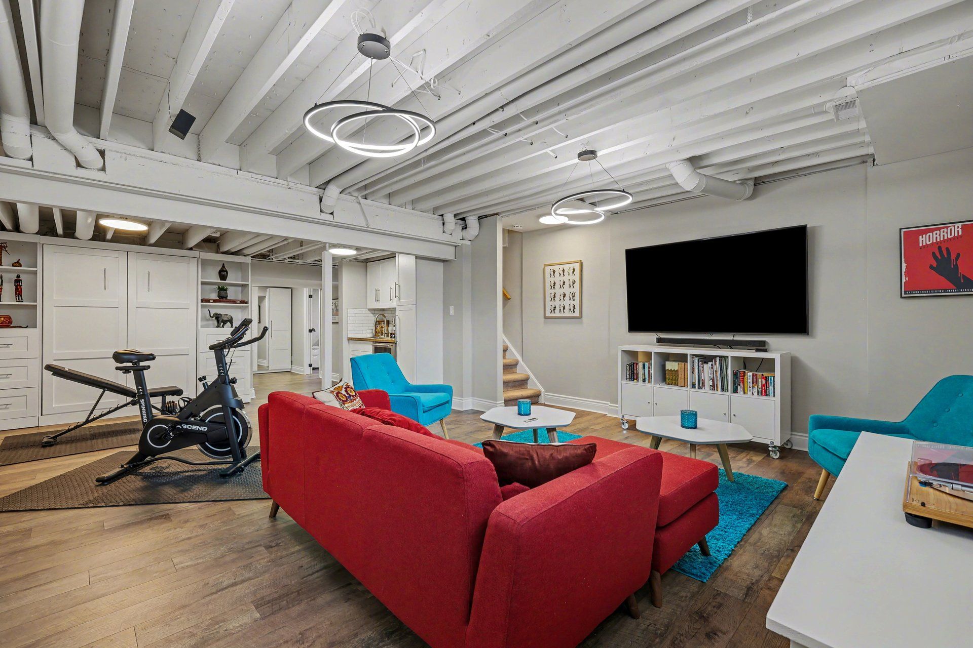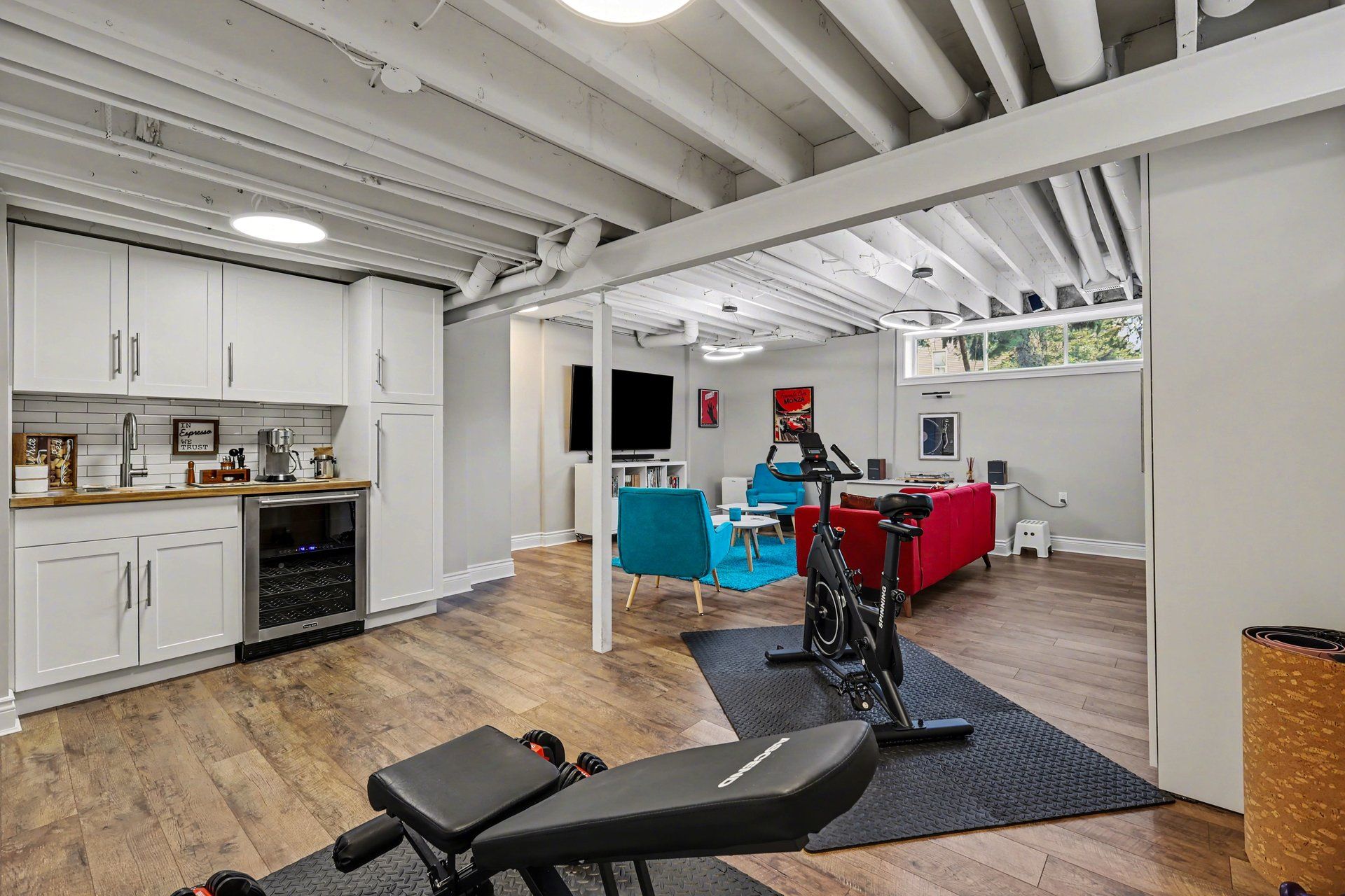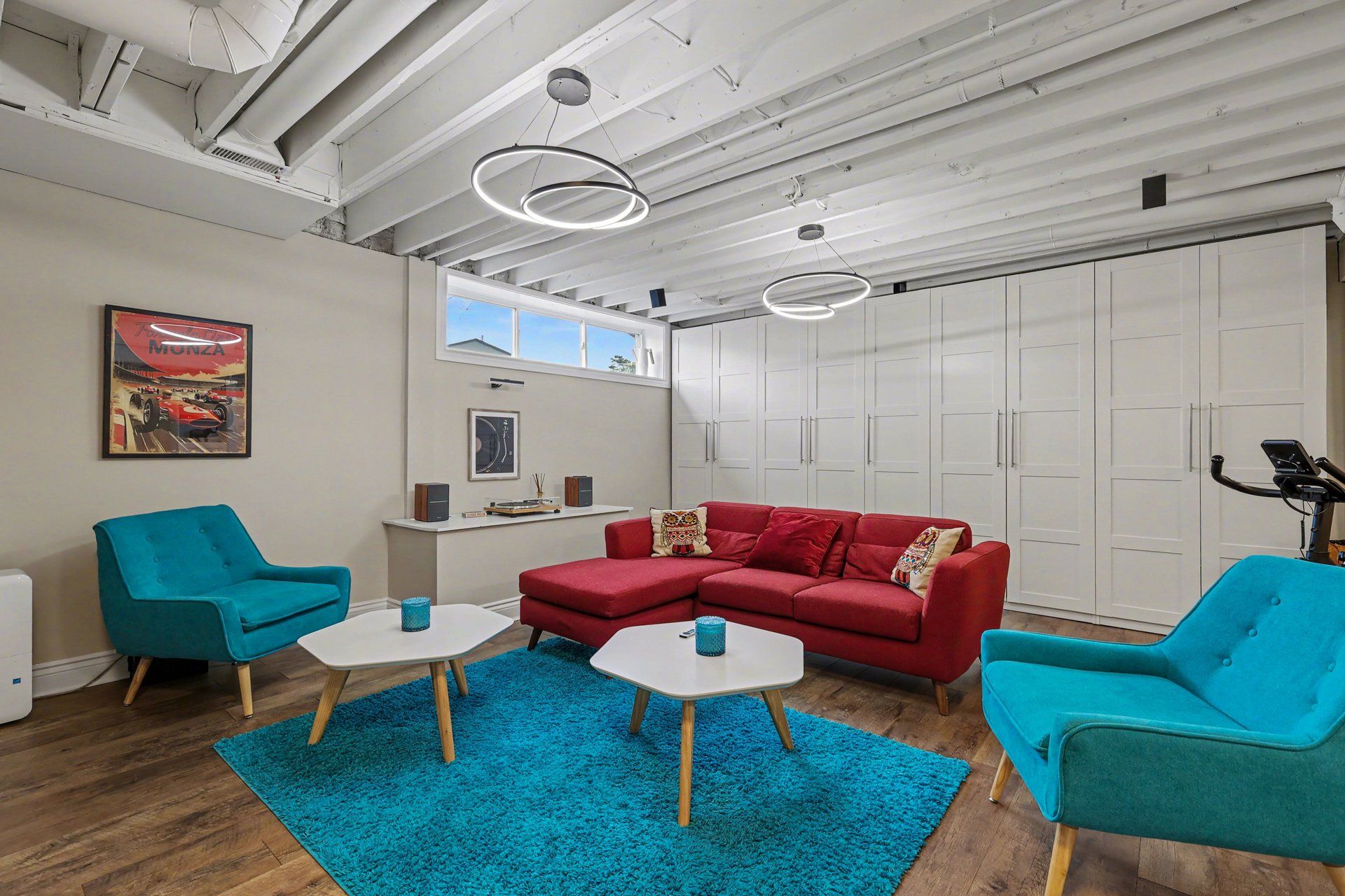 • Bright, open basement layout with kitchenette and stylish bathroom.