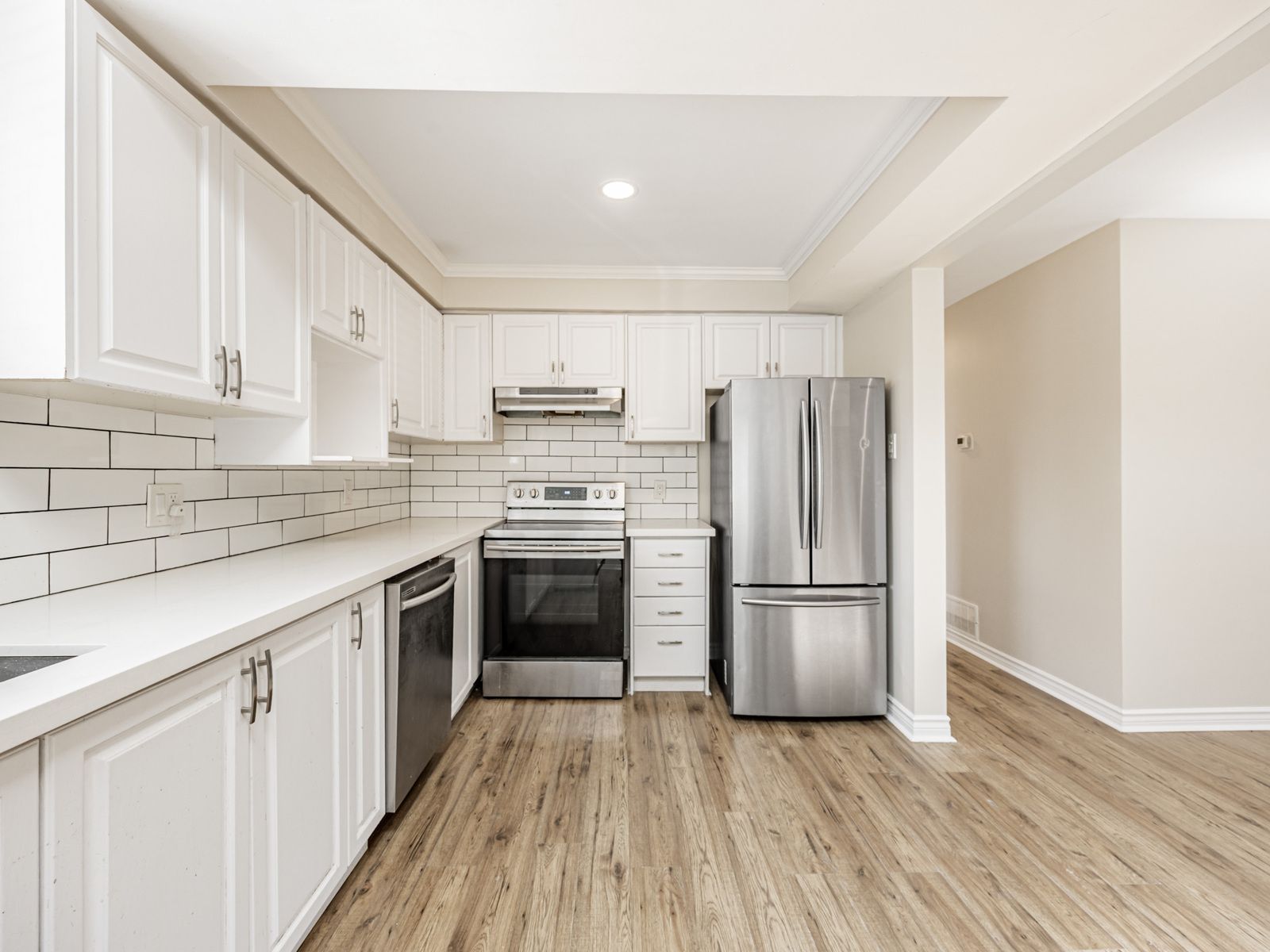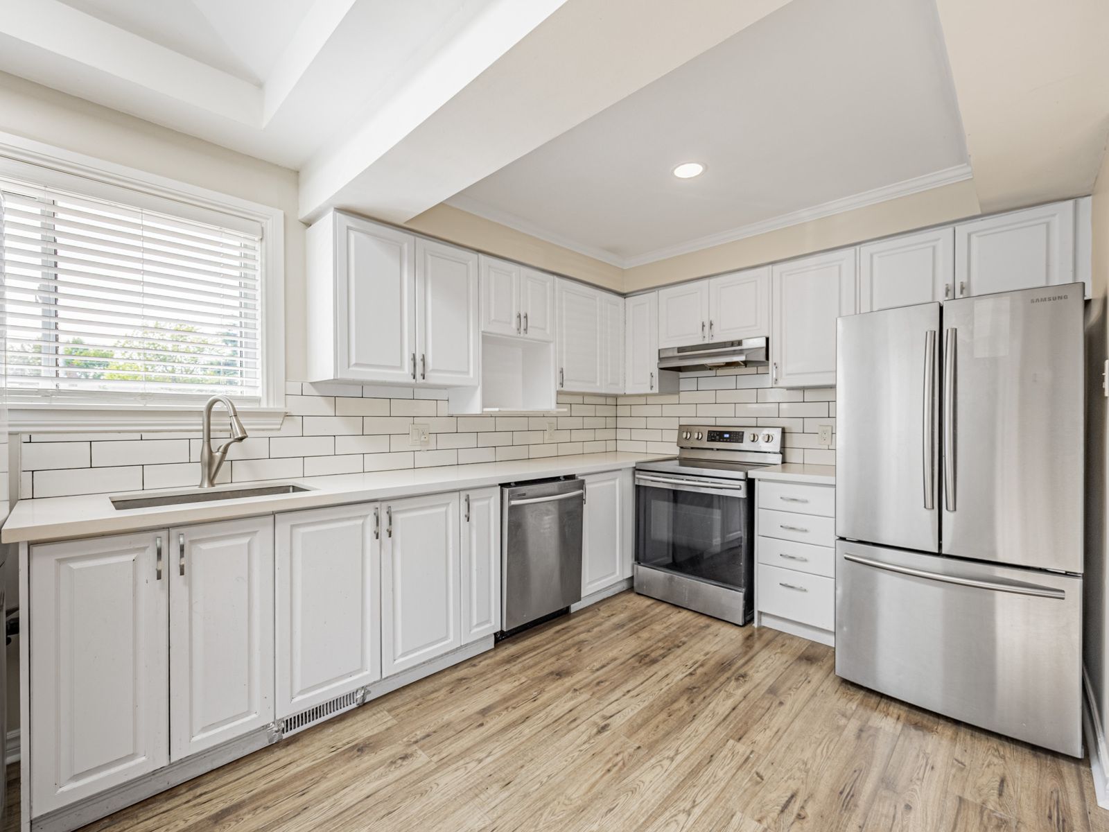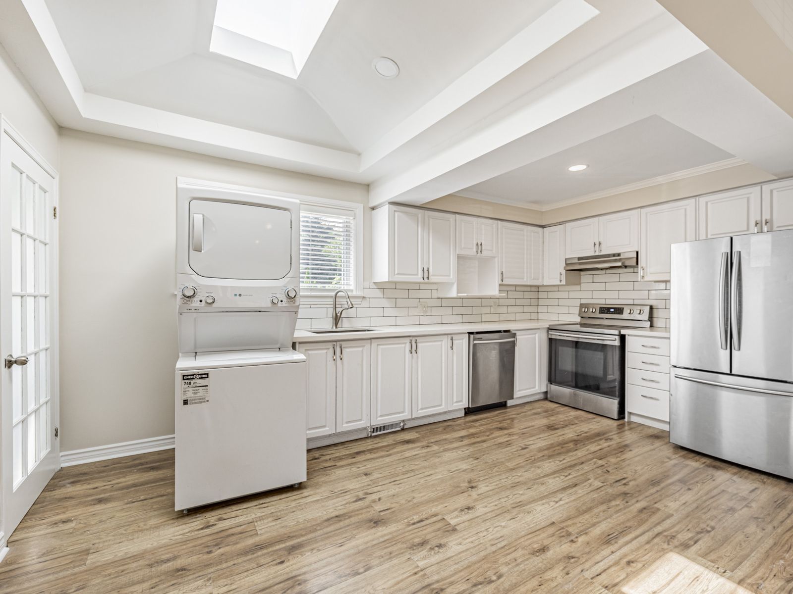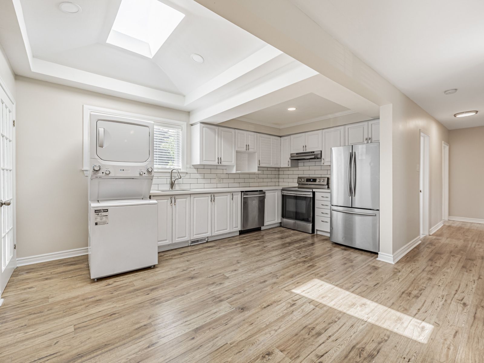 • Generous kitchen with stainless steel appliances and skylight.
