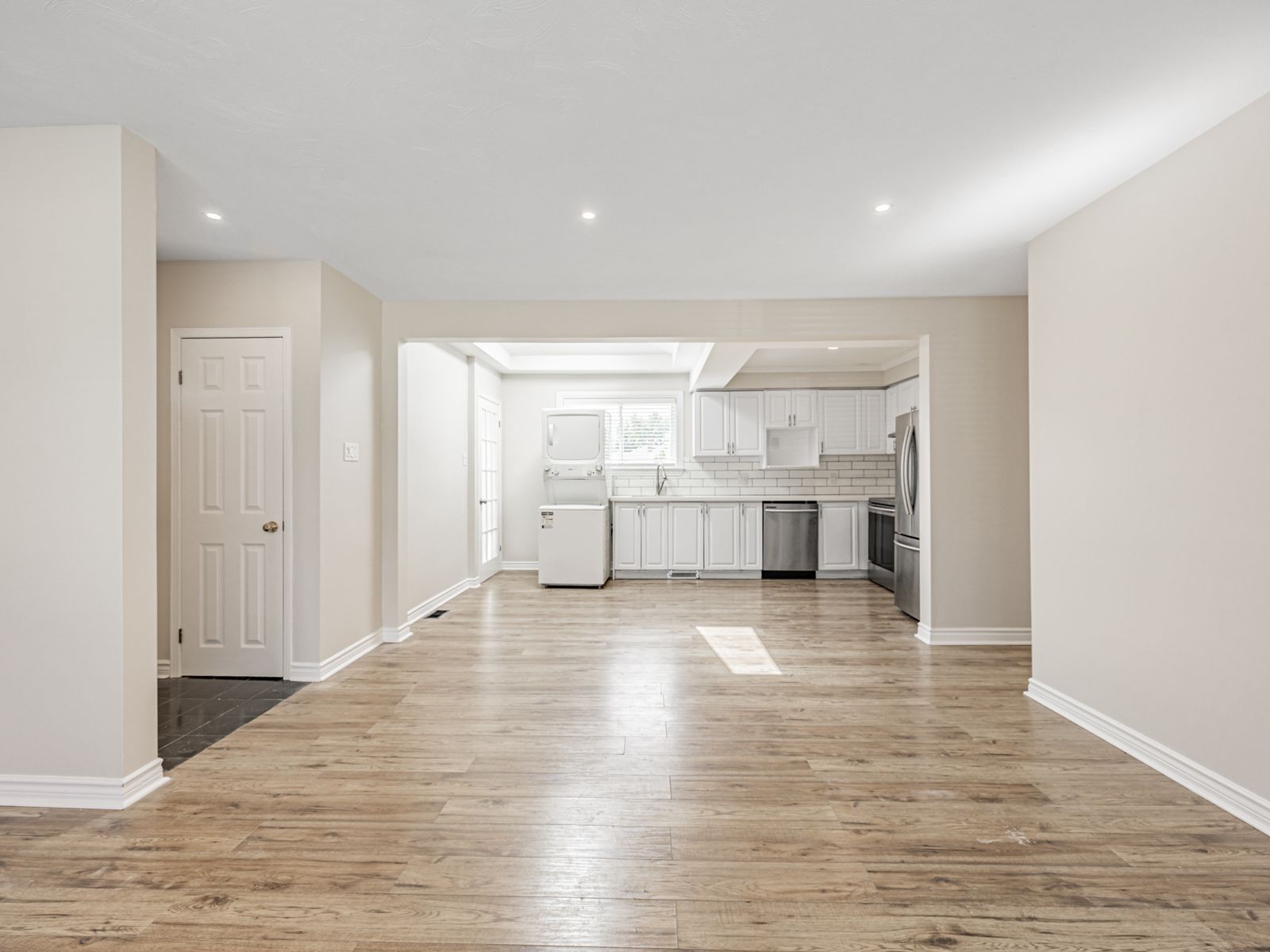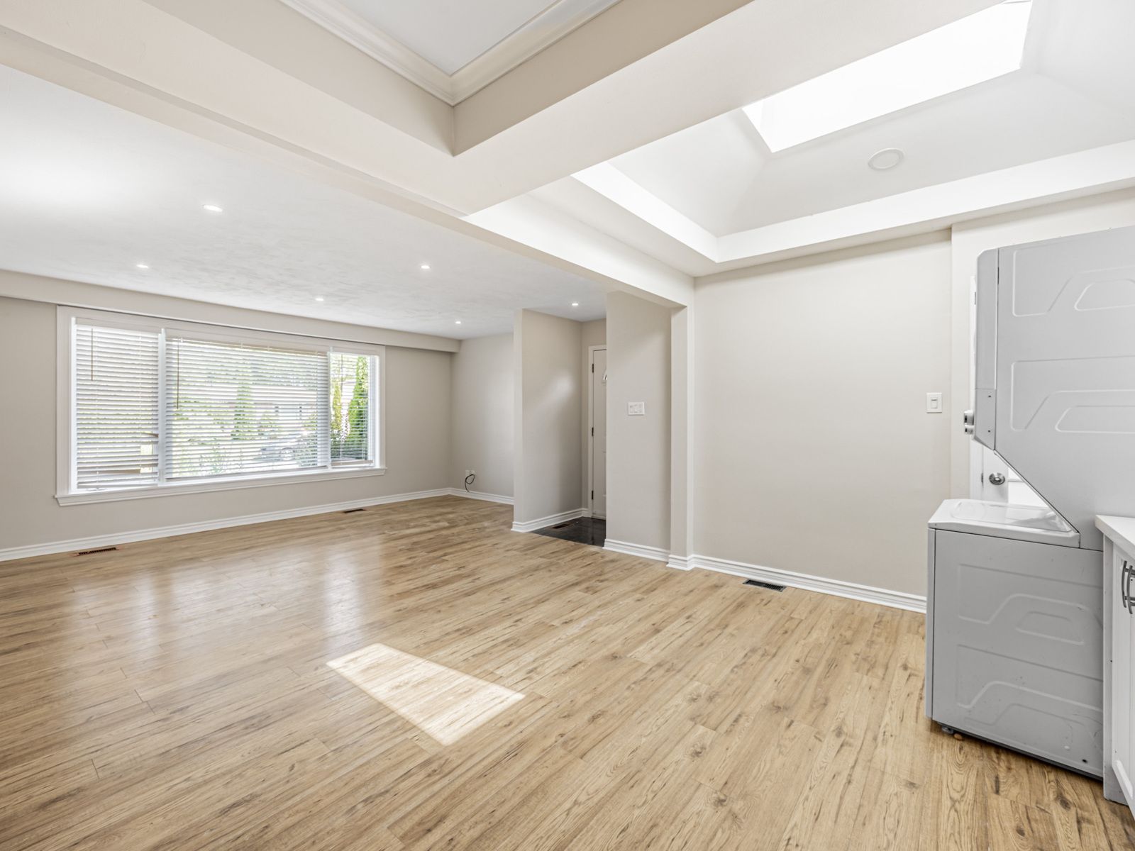 • Open-concept living and dining area with large picture window.