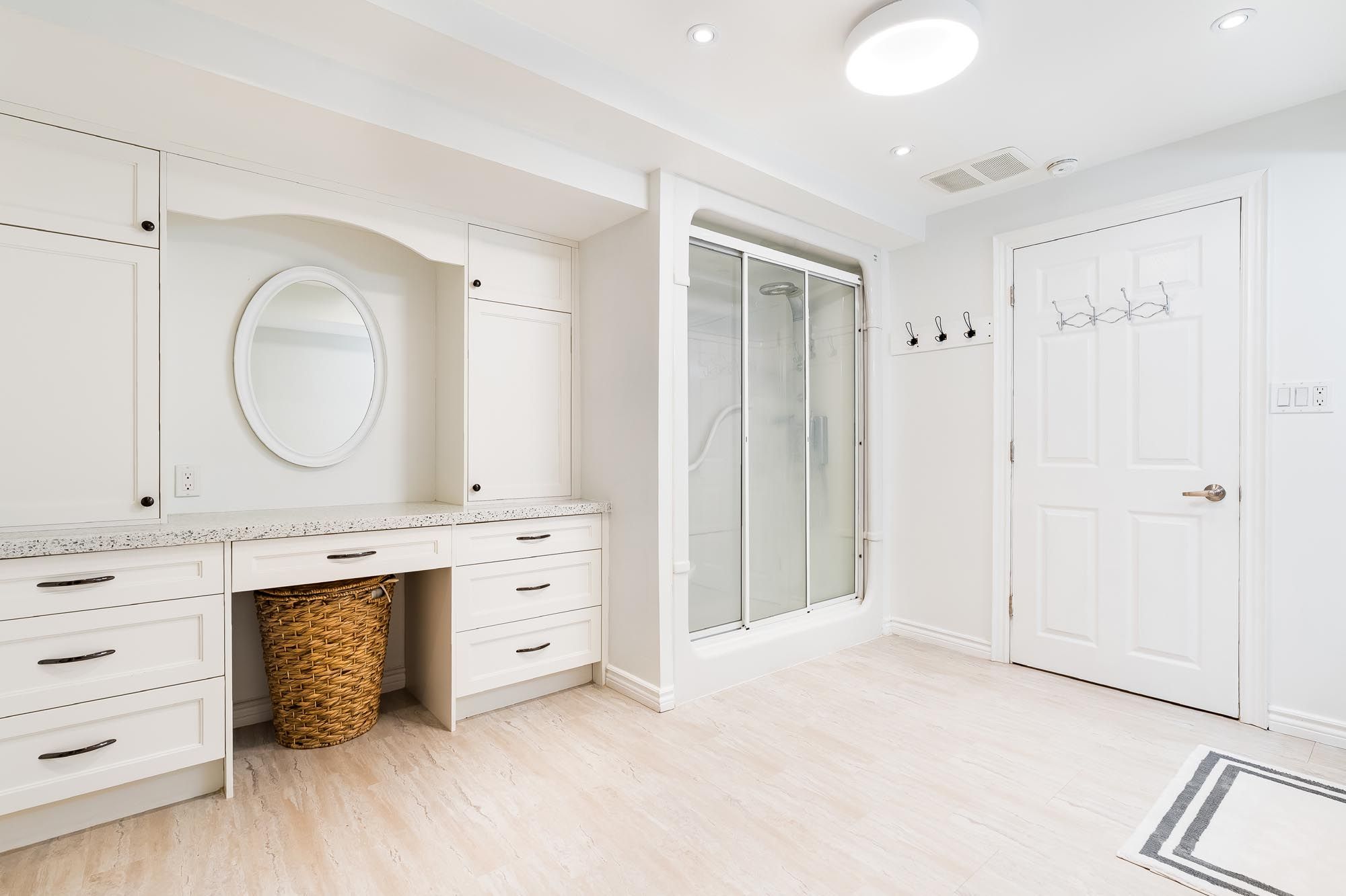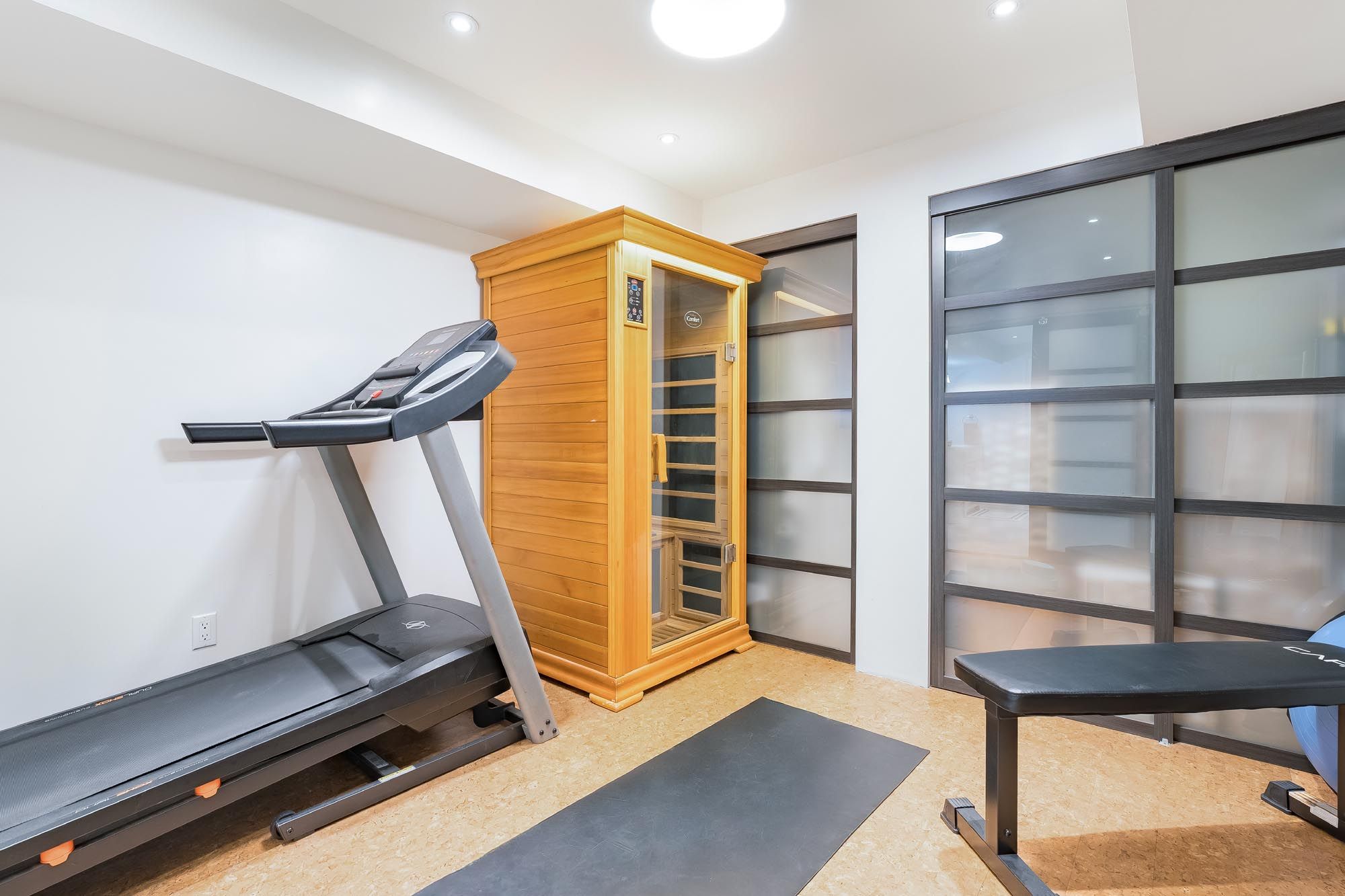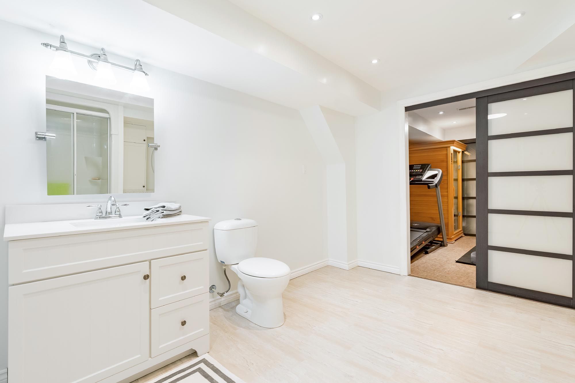 • Fully finished basement with recreation area, wet bar, and exercise space.