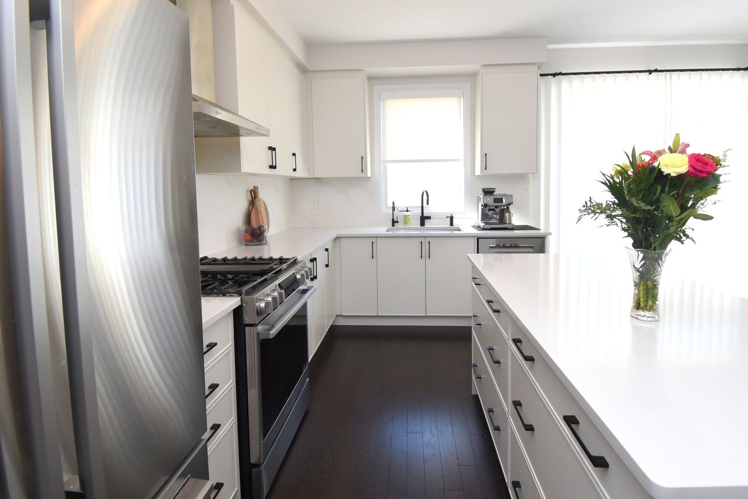 • Bright open-concept main floor with 9-foot ceilings and oversized windows.