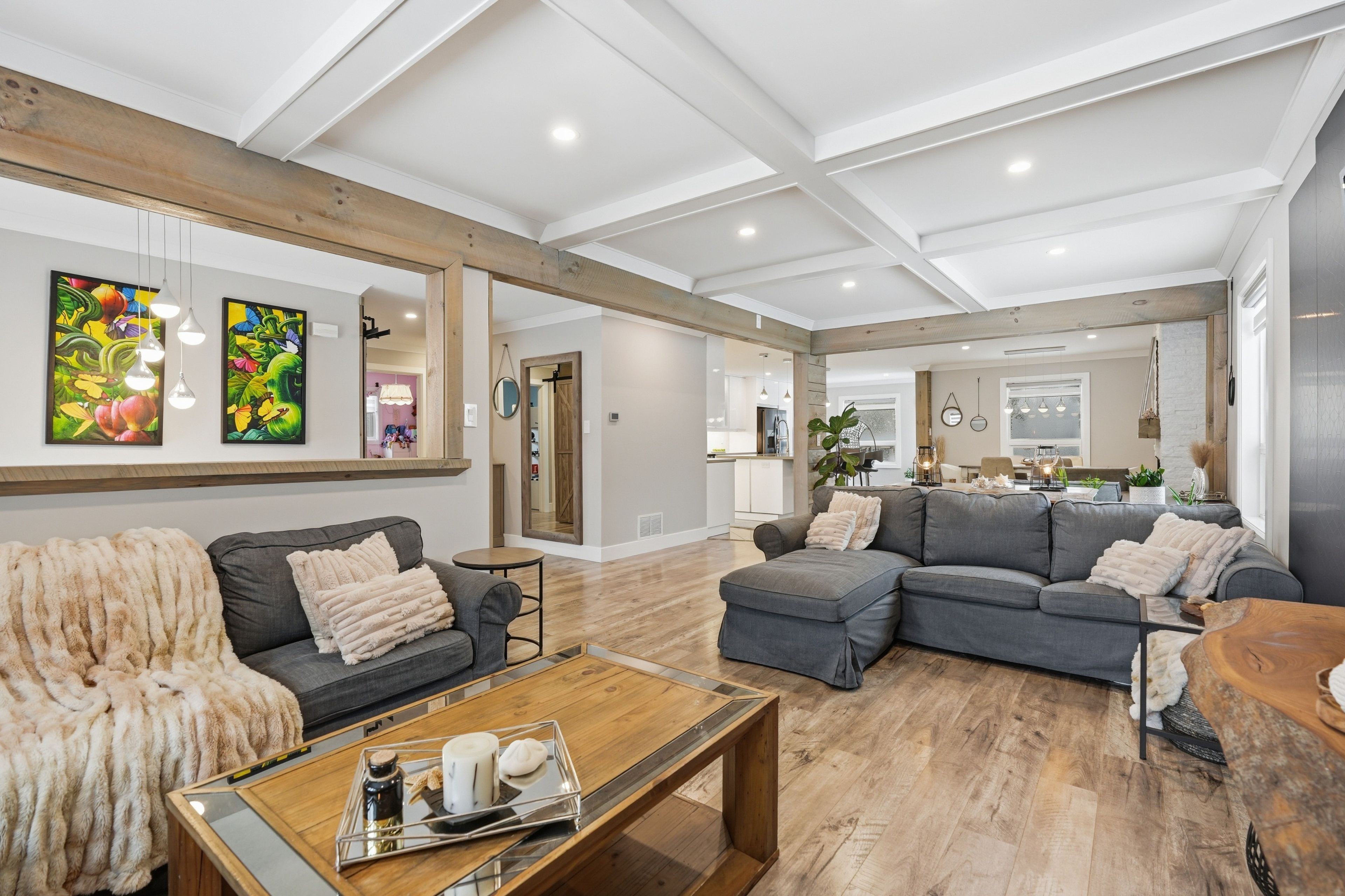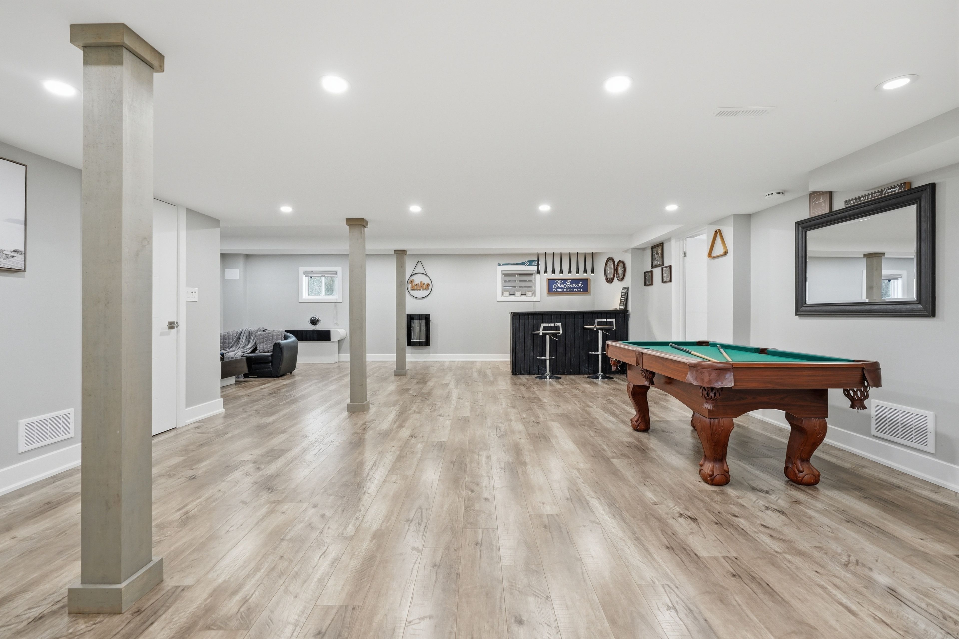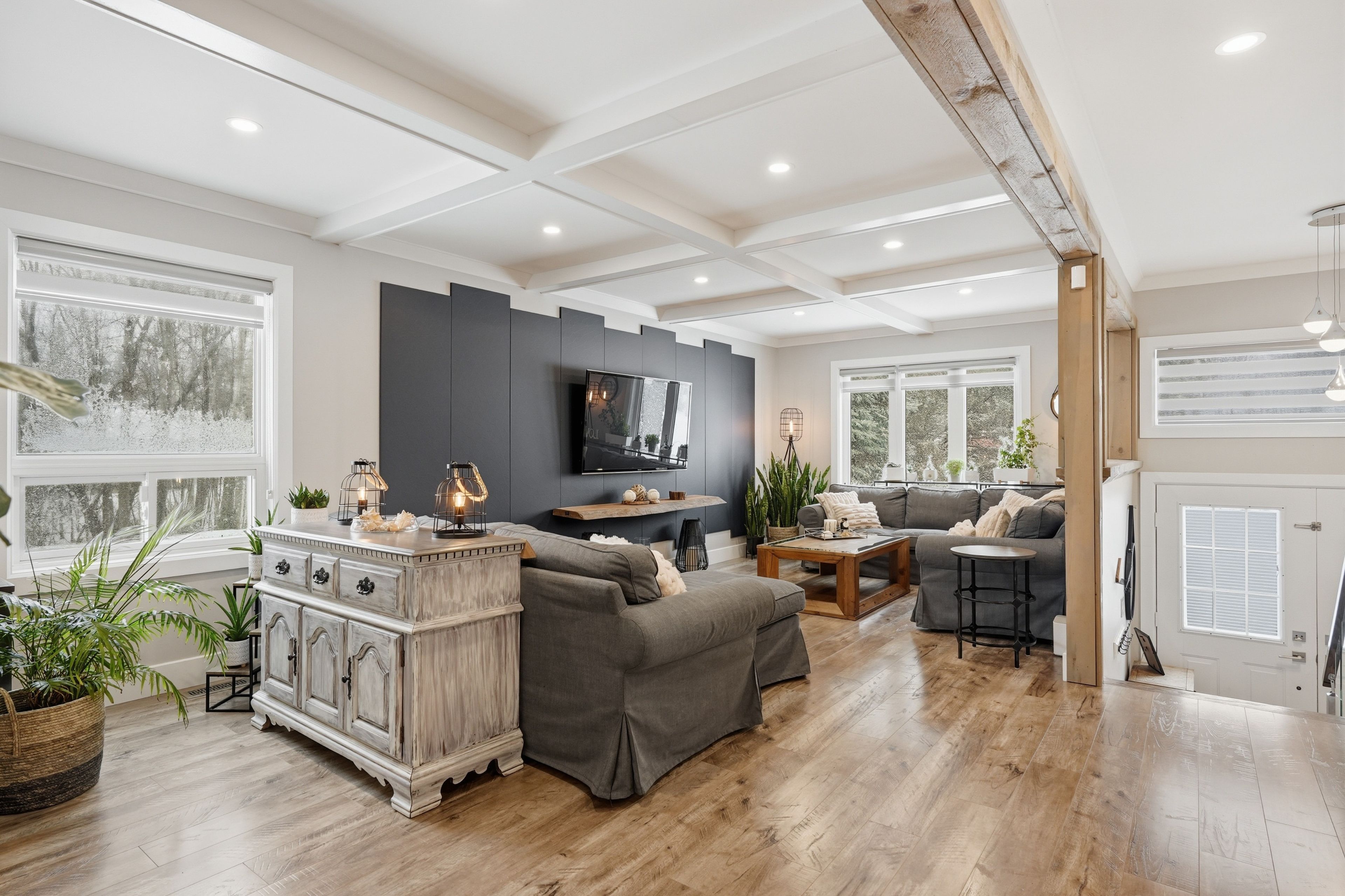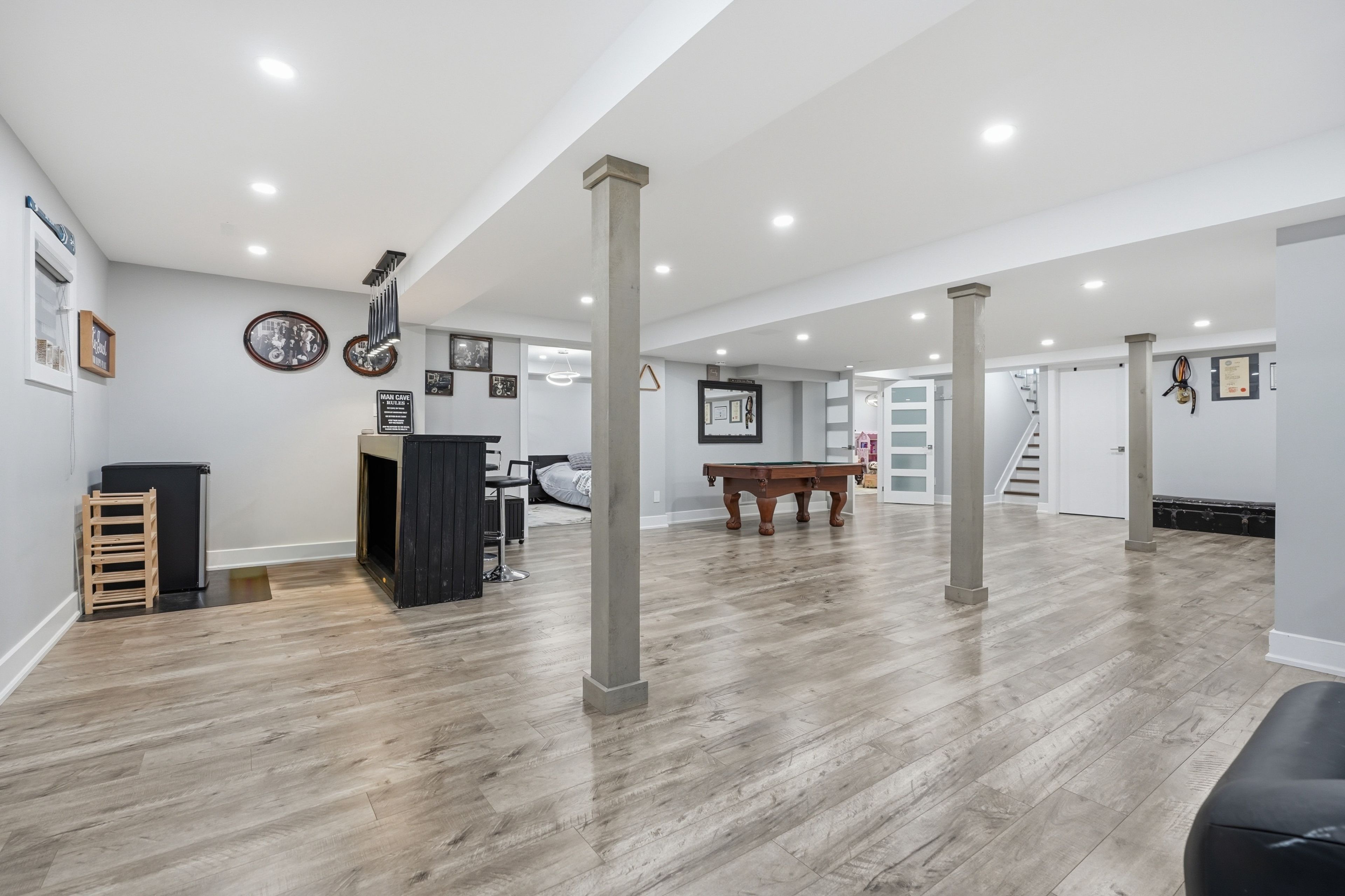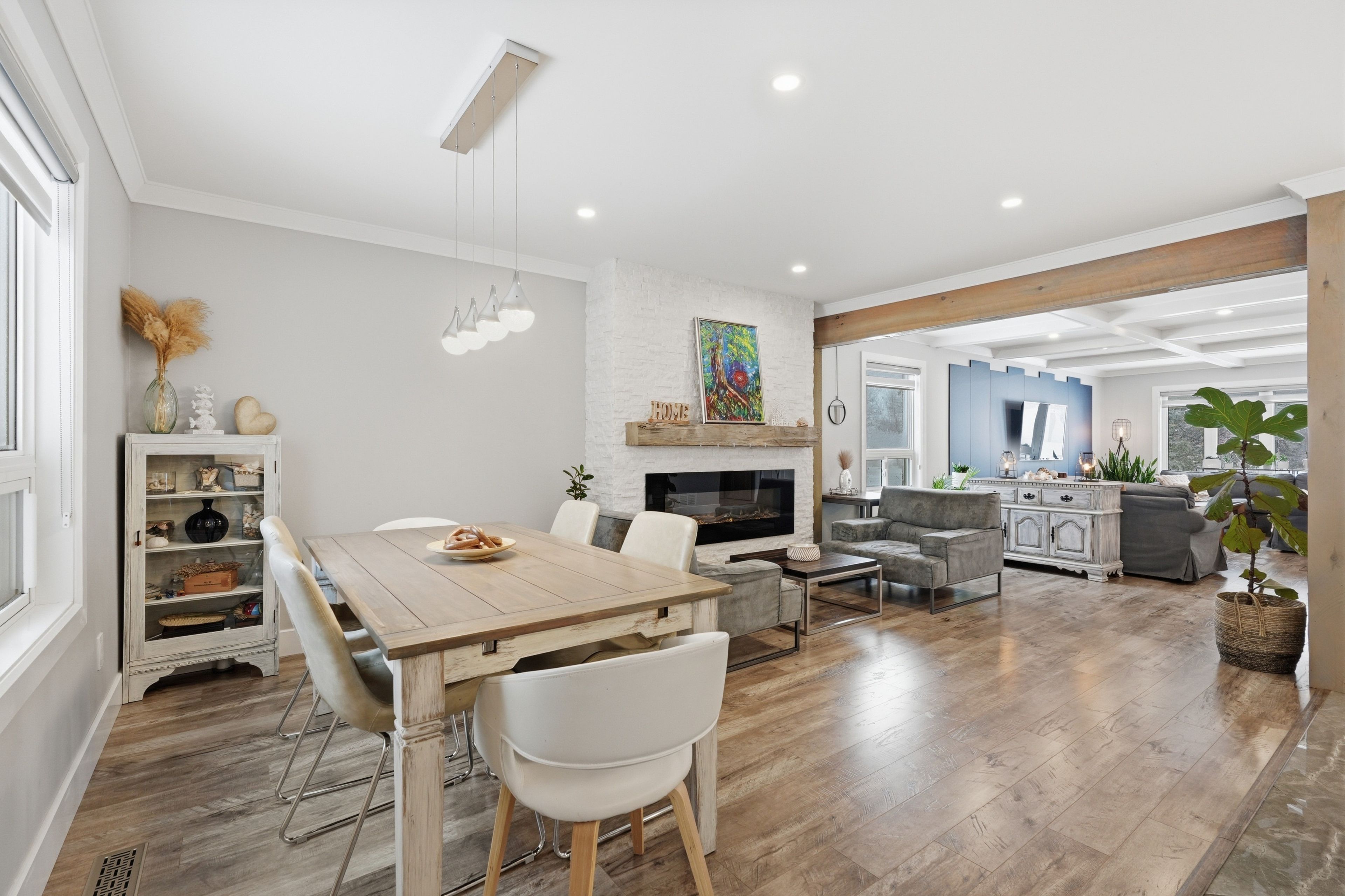 Nestled in one of wasaga beach's most sought-after neighbourhoods, this beautifully updated bungalow offers the perfect blend of nature, community, and refined comfort. Just moments from beach 1 and surrounded by mature trees, scenic trails, and welcoming neighbours, this home delivers a serene lifestyle without compromising everyday convenience. Set proudly on a premium corner lot backing onto a quiet cul-de-sac, the home enjoys a rare sense of privacy while remaining steps to trails, parks, schools, and everything wasaga beach has to offer. This property presents an exceptional balance of nature and modern living. Inside, the home has been completely reimagined with a clean and timeless finishes. A stunning, fully renovated kitchen anchors the main level, showcasing upgraded appliances, sleek finishes, and a seamless flow into the open-concept living and dining area. Enhanced by stylish pot lights and new flooring throughout, the space feels bright, cohesive, and effortlessly inviting. Thoughtful upgrades continue with beautifully renovated spa like bathrooms, impressive coffered ceiling, incredible feature fireplace wall, designer lighting, tall baseboards, a newer roof, and a newly built deck, offering true turn-key peace of mind. Offering 5 bedrooms and 3 bathrooms, over 3200 sq ft. Of well-appointed living space, designed for both comfort and functionality. The fully finished lower level extends the home's versatility, featuring a spacious rec room, games area, full bathroom, and two bedrooms. Outdoors, the property is equally impressive, complete with an in ground sprinkler system for low-maintenance landscaping. A wide driveway and double-car garage provide ample parking and storage, catering to both everyday living and entertaining needs. Combining thoughtful upgrades, a prime location, and exceptional versatility, this home stands as a rare opportunity in wasaga beach offering a lifestyle defined by comfort, convenience, and connection to nature.