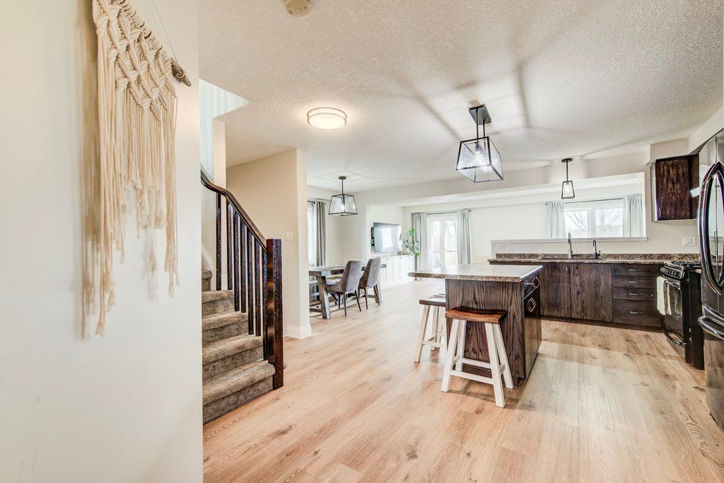 Open house sat april 11 & sun april 12 2-4pm. Are you searching for a quiet street in a small town to raise your family? How about a west facing backyard overlooking greenspace? Or maybe an updated home fully finished top to bottom? This is the one for you! This lovingly cared for 3 bedroom home is awaiting it's new owners. The main floor features lvp flooring throughout, a large kitchen open to the dinette and large living room with access to the 2 tiered composite deck including a covered top portion great for bbq-ing all year round. Watch the sunset from the bottom portion looking out to the mike schout wetland preserve and nith river beyond. Upstairs boasts a convenient family room with fireplace surround which would make a great home office, additional tv area or kids playroom. A large rear facing primary bedroom offers access to a walk in closet with built in storage and an updated 3pc bath. Also on this level are 2 additional bedrooms and main bath. Wait, there's more... The basement is also fully finished with a large recroom featuring built in cabinetry, separate bar area and 2 pc bath. Double car garage, concrete driveway, updated metal roof & more.