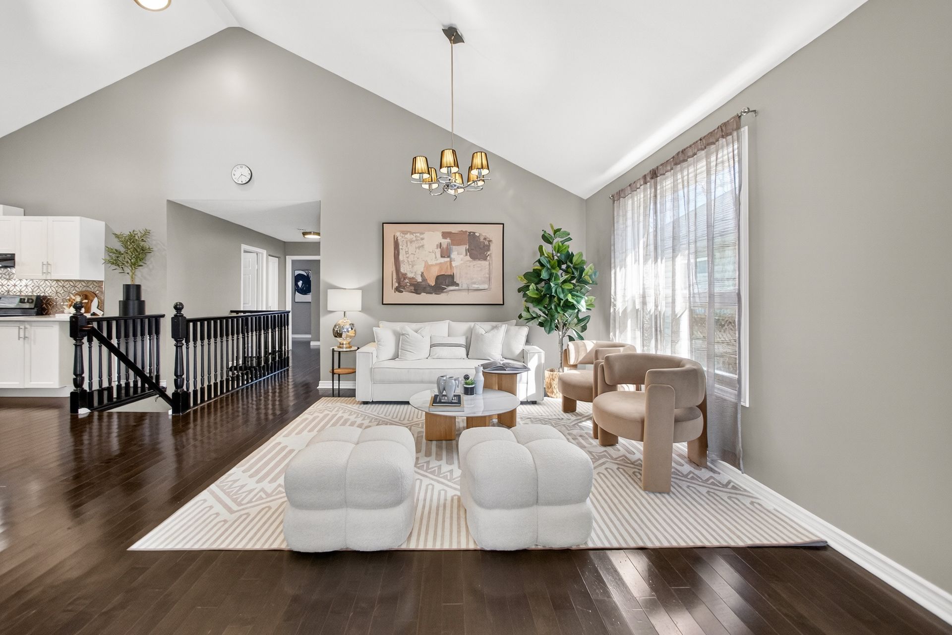 • Bright open-concept layout with vaulted ceilings and carpet-free main floor.