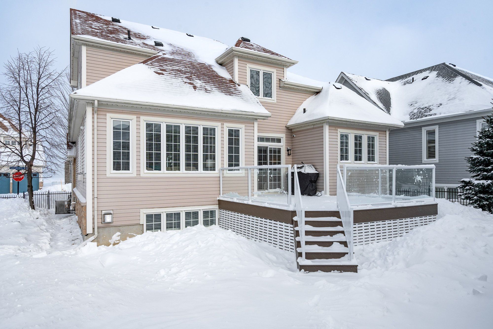 Exceptional waterfront living on the shores of georgian bay with a view to the water! Thoughtful design and extensive upgrades invite all potential buyers~ full time residence, vacation home or family living. This meticulously maintained home offers over 2974 sq. Ft. Of refined finished living space, ideal for everyday comfort and entertaining. The main level features a spacious primary bedroom with a 5-piece ensuite, jet tub and glass shower, plus a second bedroom/ den with ensuite privileges to a 4-piece bath. Soaring cathedral ceilings enhance the great room and foyer, while the open-concept kitchen, dining, and living areas showcase a large island, granite countertops, stainless steel appliances, gas fireplace, and expansive windows that flood the home with natural light. Walk out from the family room and primary suite to a new composite deck (14. 8 x 19. 7) with glass railings (2024), overlooking a fully fenced yard. Additional highlights~ main-floor laundry, a whole-home generator, high tech camera security system, double-car garage with inside entry and mezzanine for all of your storage needs. The second level offers an additional primary suite with a 4-piece bath, walk-in closet, and a versatile loft/flex space overlooking the living area. The fully finished lower level includes a spacious family room/ cozy gas fireplace, two large bedrooms, and a 4-piece bath with steam shower. Residents enjoy access to a private clubhouse featuring a recreation center with social activities, fitness area, inground saltwater pool and a large covered waterfront deck capturing stunning georgian bay views. Worry free community living~ snow removal and lawn services included for your convenience. Embrace the four season lifestyle~ amenities just minutes away~ *blue mountain village *historic downtown collingwood~ dining, shopping, cultural events *championship golf courses *wasaga beach~ longest freshwater beach. View virtual tour~ experience the magic of southern georgian bay!