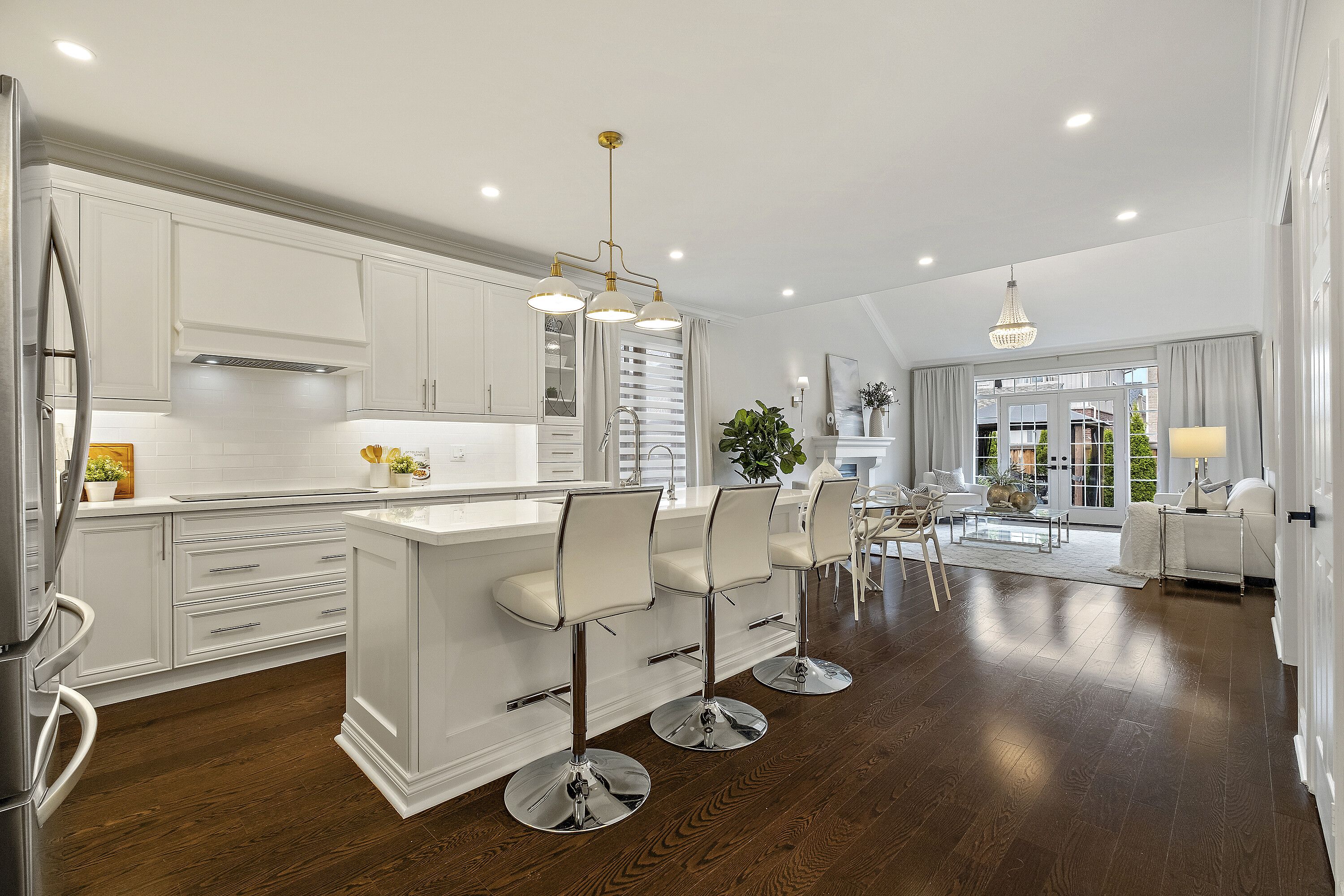 Spring is around the corner-now is the perfect time to make your move! Stunning detached bungaloft, perfectly nestled on a quiet, family-friendly crescent in the heart of tottenham. Offering 2,580 sq. Ft. Of beautifully finished living space, this elegant home features four spacious bedrooms and 3. 5 tastefully designed bathrooms. The sun-filled dining room showcases elegant arched windows, wainscoting, smooth ceilings, and crown moldings-ideal for hosting memorable gatherings. The chef-inspired kitchen is a true showpiece, complete with built-in bosch appliances, including double ovens with a warming tray and electric cooktop, a stylish center island with seating, and beveled quartz countertops. The open-concept living room impresses with vaulted cathedral ceilings, custom crown molding, a cozy fireplace, and dramatic floor-to-ceiling garden doors that seamlessly blend indoor and outdoor living. Step outside to your private backyard oasis featuring a heated in-ground pool and interlock stone patio, surrounded by privacy fencing-perfect for relaxing or entertaining in total comfort. The main-floor primary suite offers a luxurious three-piece ensuite with a seamless glass shower and custom dressing vanity. A second main-floor bedroom provides flexibility as a home office or nursery. Upstairs, you'll find a generous secondary suite and a fourth bedroom with a shared bath-ideal for family or guests. Impeccable finishes throughout include hardwood flooring, pot lights, and crown molding. A spacious two-car garage completes this exceptional property. This is your chance to dive into an extraordinary lifestyle. Don't wait-book your private showing today and make this dream home yours before it's gone!