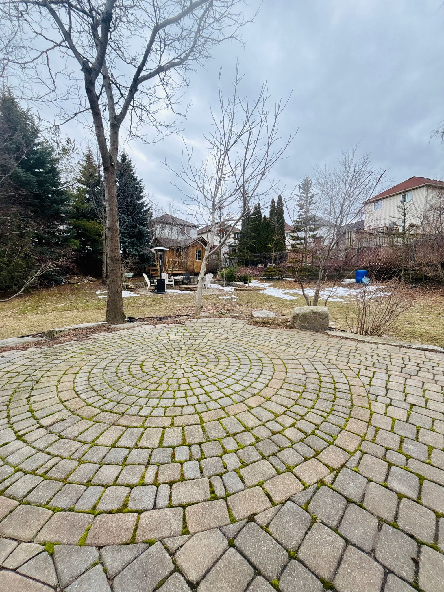 • Large landscaped backyard with patio and firepit for outdoor enjoyment.