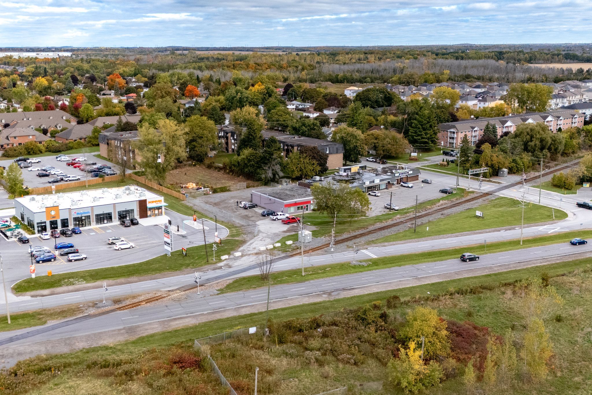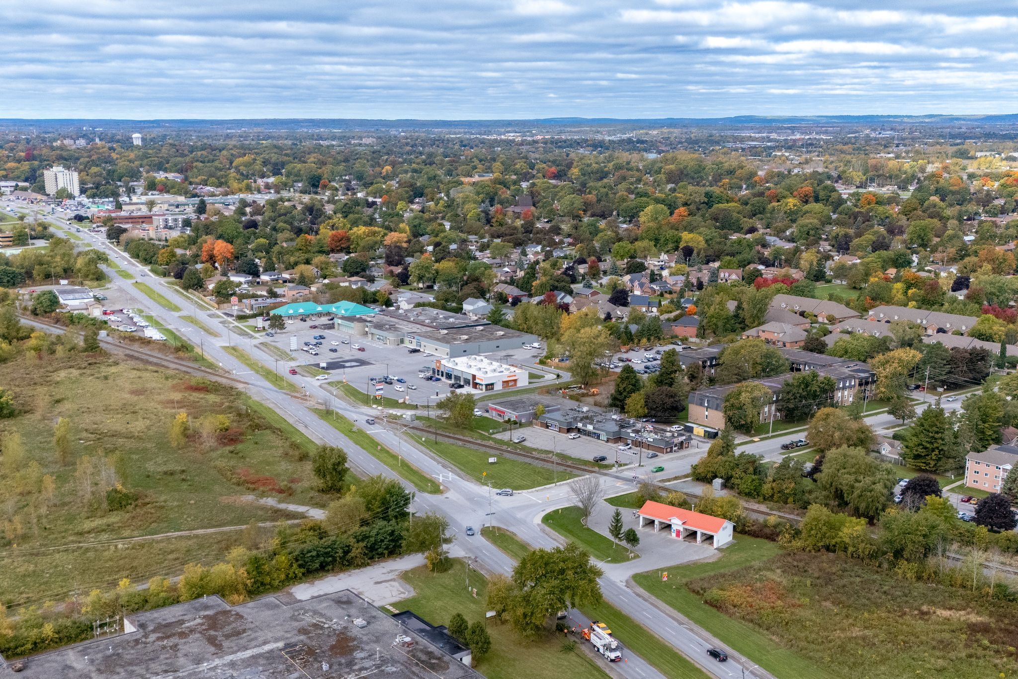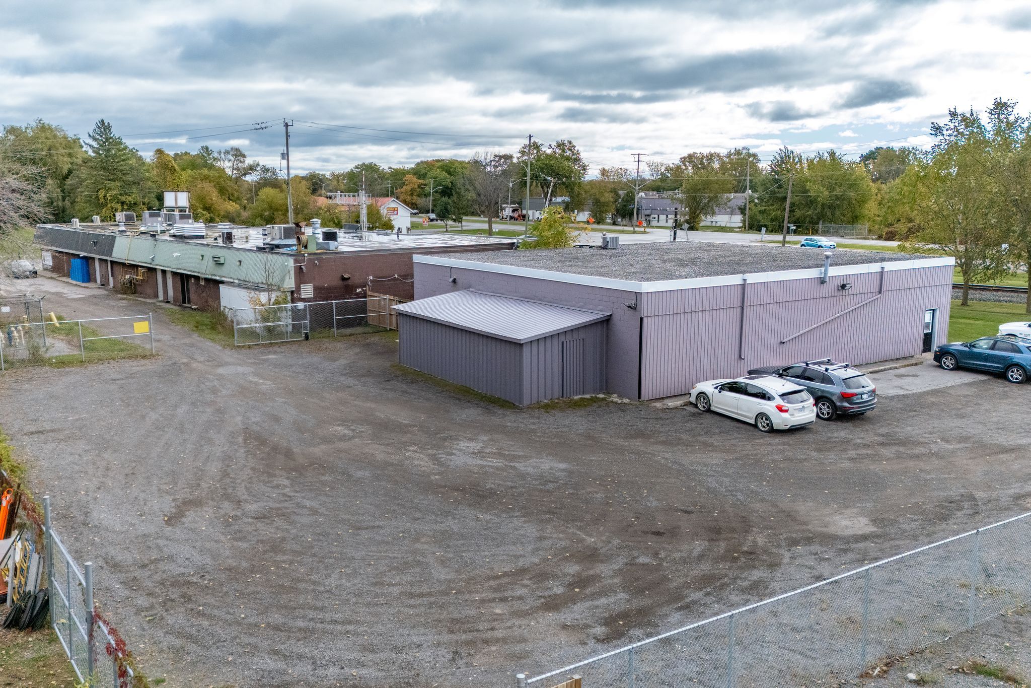 3,300 sf single story building with concrete roof deck, no interior structure. Great exposure to busy dundas st e. The building is currently a mix of office (3 private offices and 2 bathrooms) and warehouse. 10' x 8' roll up door access. Developments proceeding in the area: proposed 599 residential units(with no commercial component) immediately to the south of 640 dundas st e, parkville greens subdivision to the east is about to start phase 3 of 3. The commercial property immediately to the west of 640 dundas st e has a newly constructed pad with national tenants (starbucks, popeyes, dominos). Fenced yard (approx . 37 acres) that is part of the property may be leased for an additional charge. Asking lease rate is $15/sf + tmi (estimated $9. 25/sf) + utilities