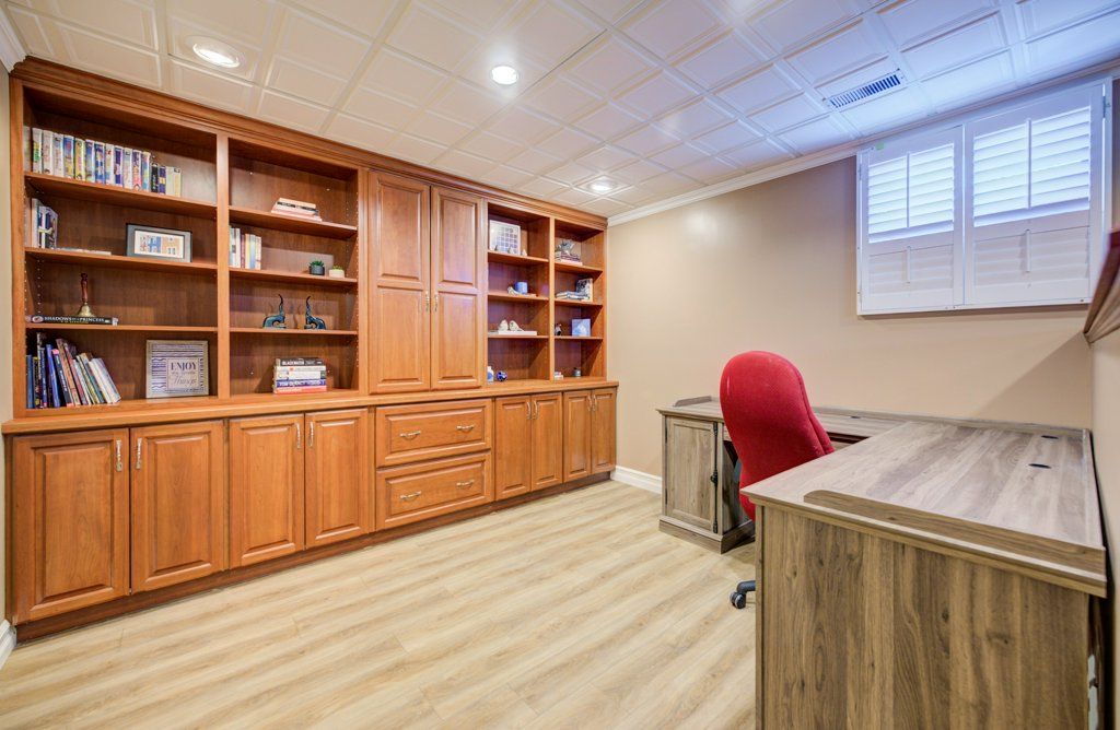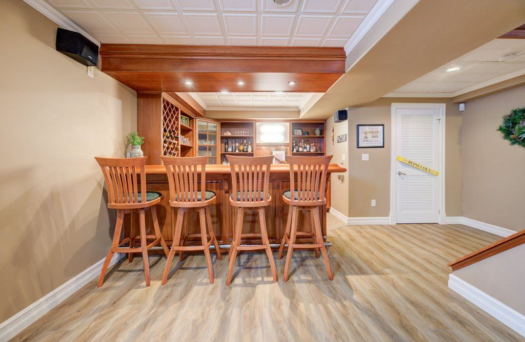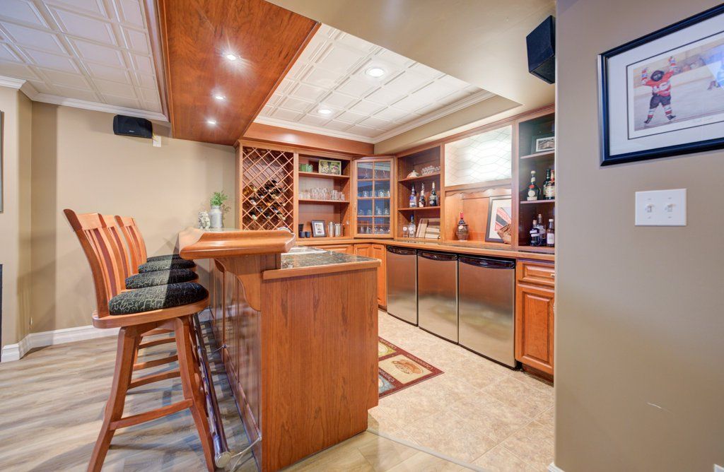 • Fully finished basement featuring a pub-style wet bar and office space.