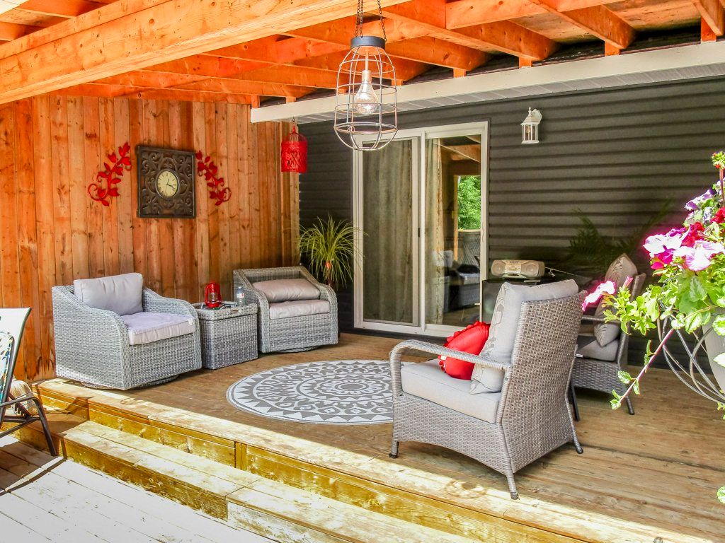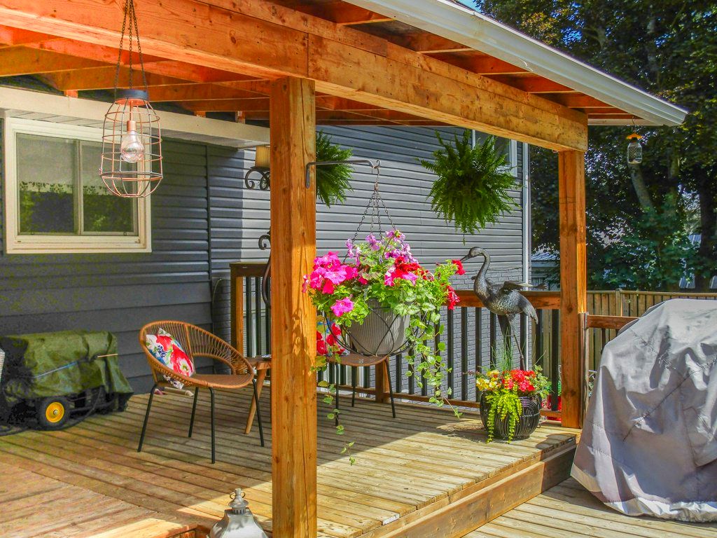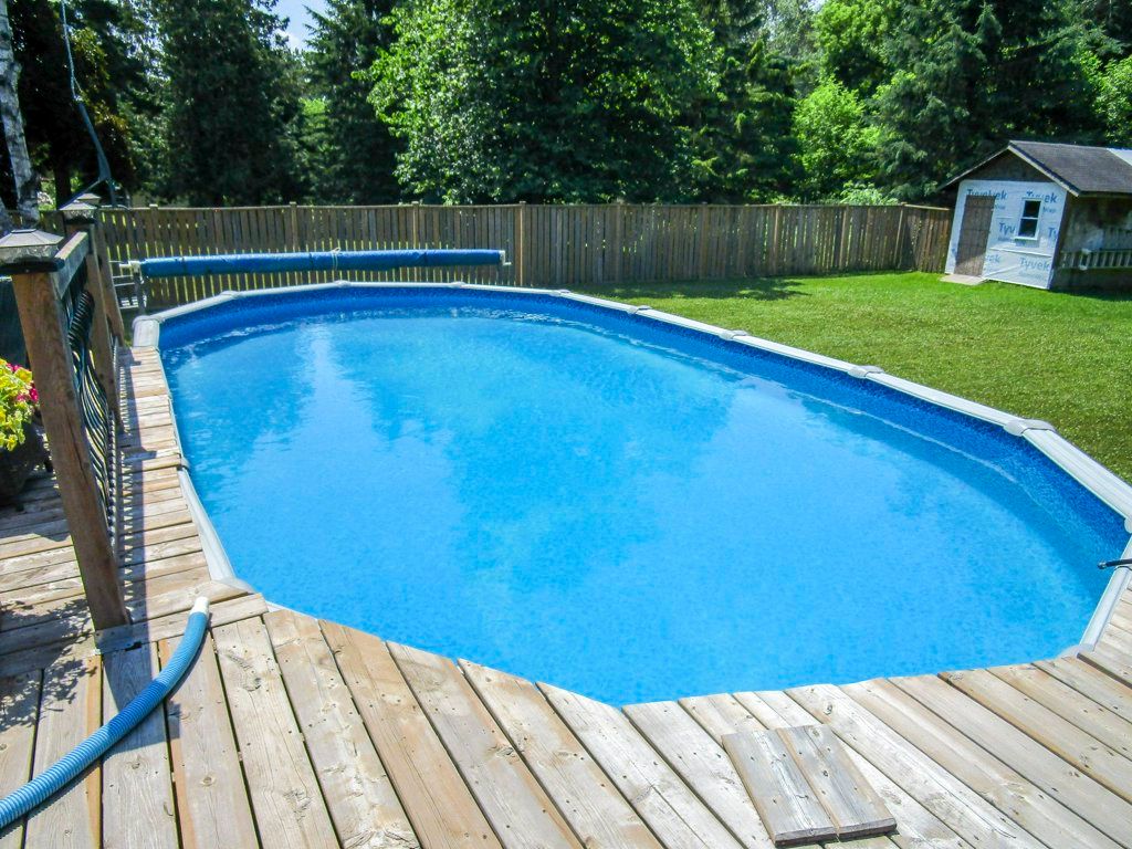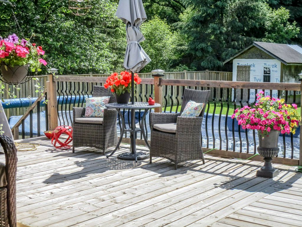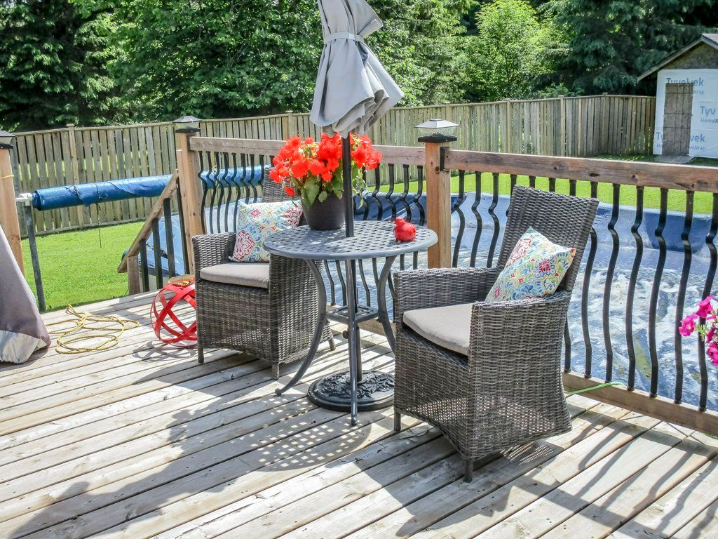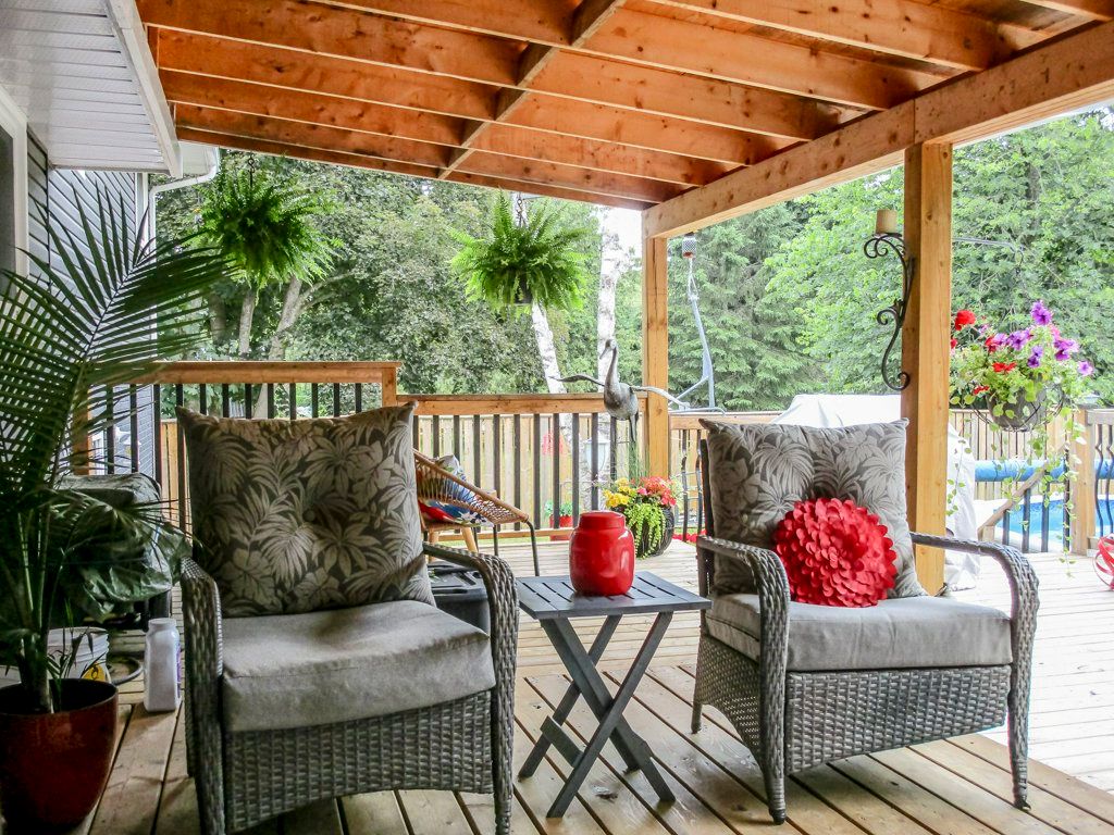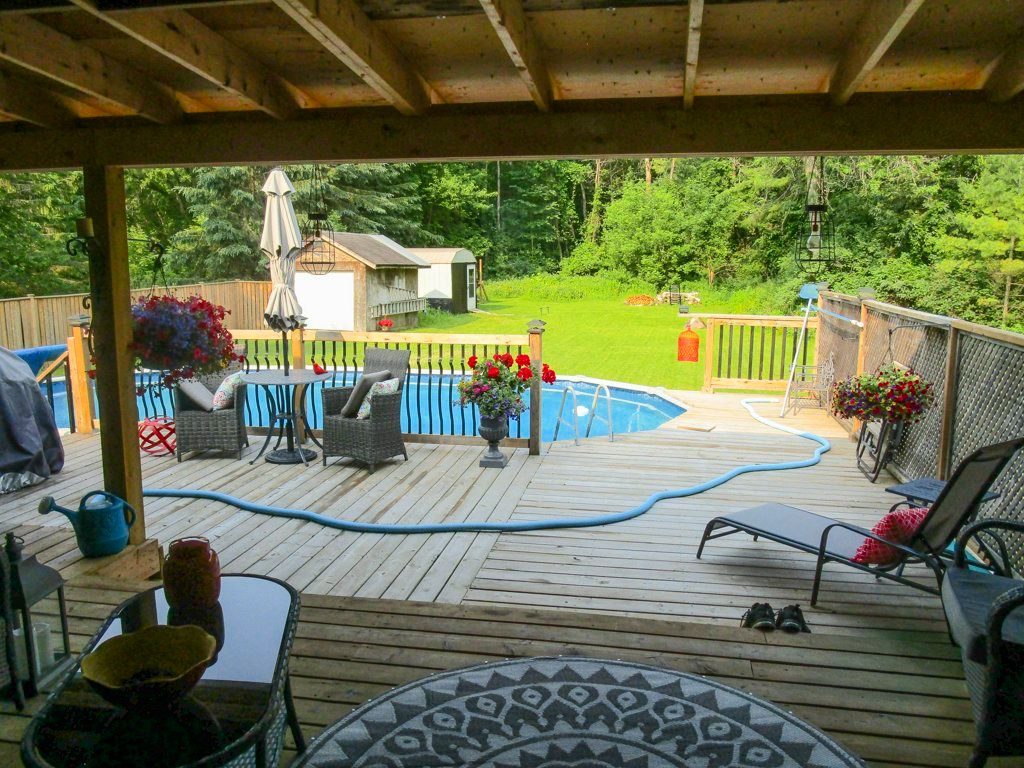 • Covered deck and above-ground pool, great for summer entertaining.