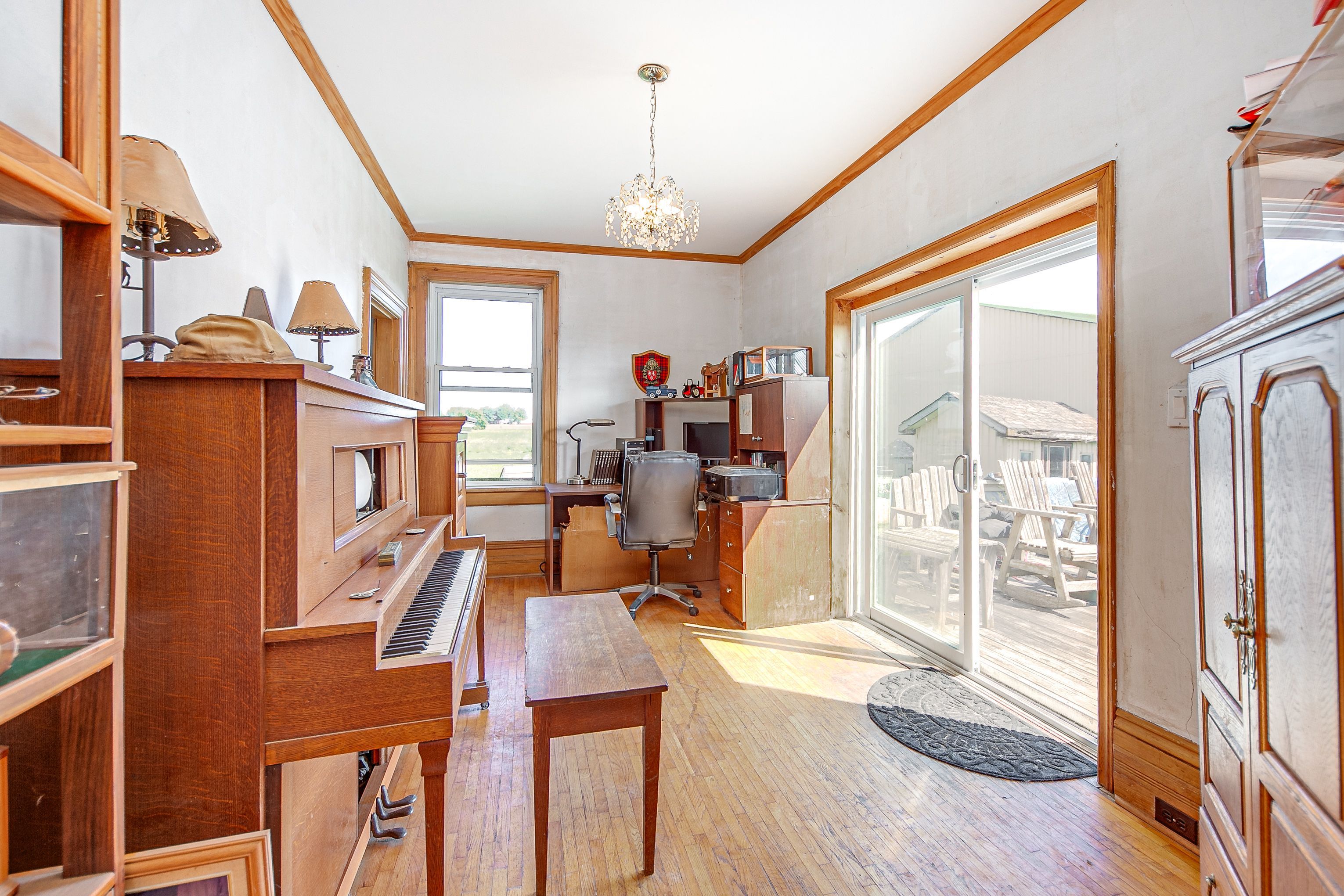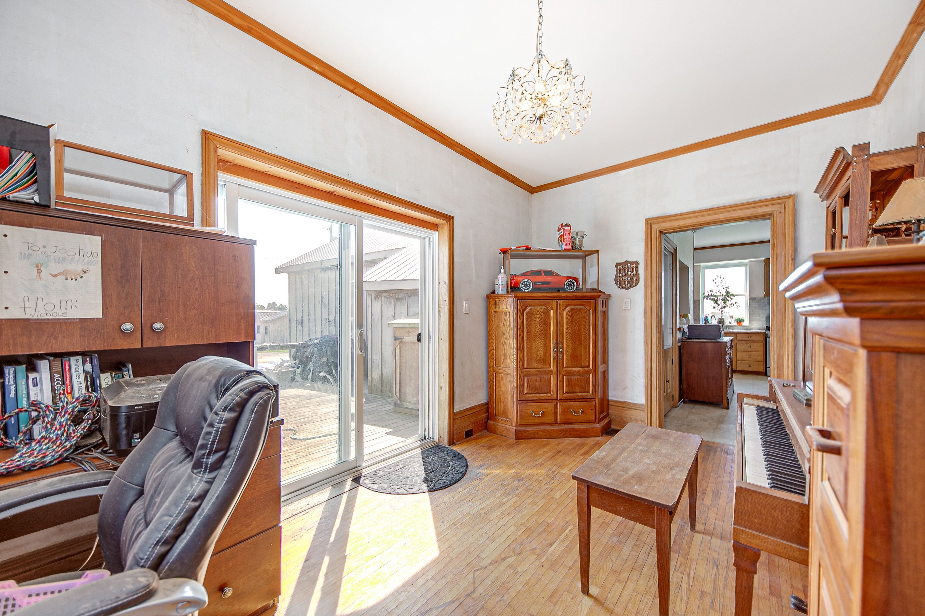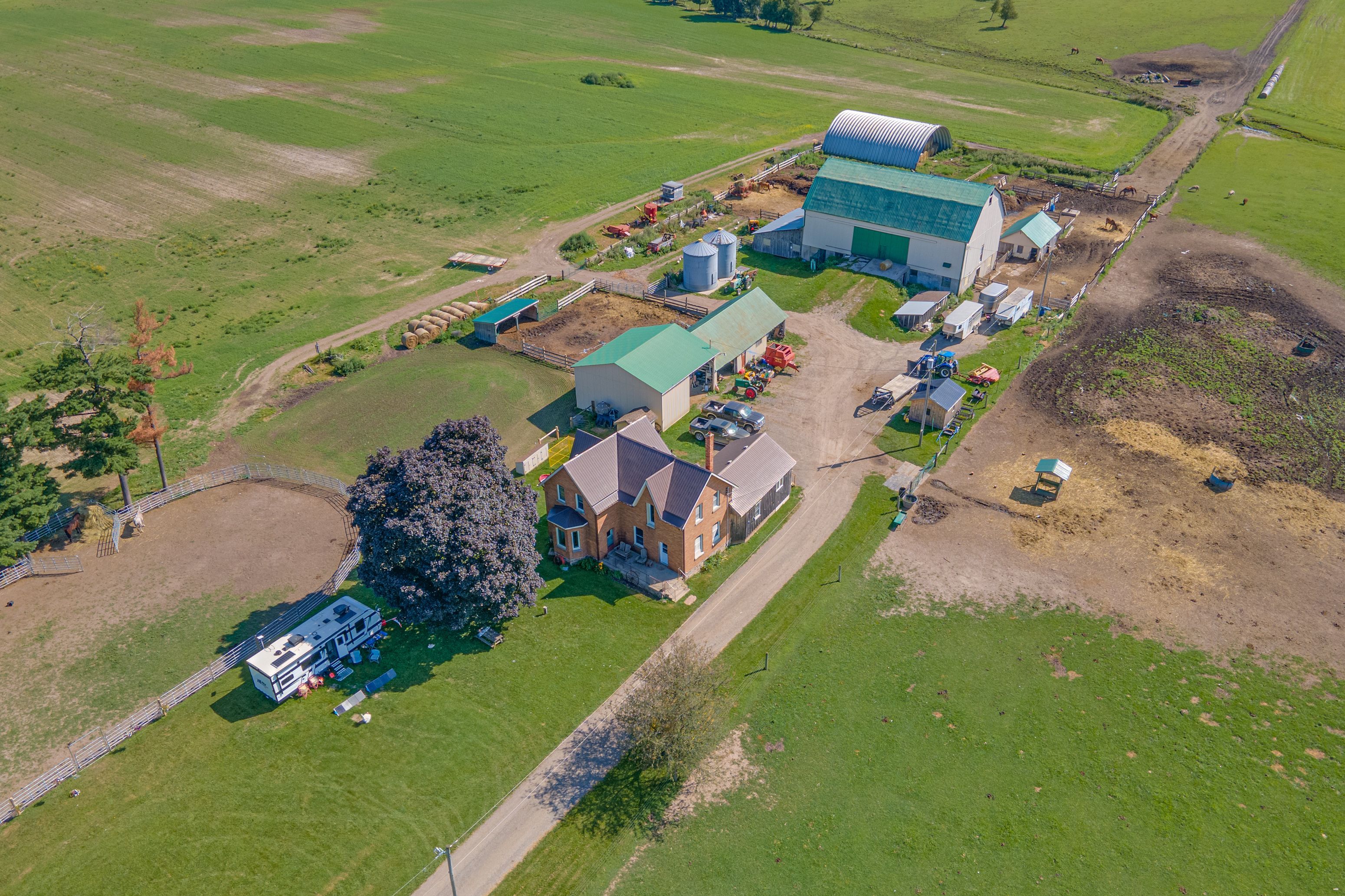 100 acre farm for sale / 80 acres of workable land. Cash crop and livestock opportunities. Nicely maintained 4 bedroom, 2 bathroom farmhouse. Huge kitchen, family room with walk out to a 16 x 16 deck. Nice sized primary bedroom has a walk in closet area. 2 more bedrooms on the upper floor, one bedroom on the main floor. Two, 4 piece bathrooms, one located on the main floor, and one on the upper floor. The home has a steel roof. 72 x 40 hip roof bank barn, complete with stalls, tack room, steel roof and concrete floors. 48 x 24 drive shed plus, a 32 x 32 addition with steel roof. 60 x 48 quonset hut. 200 amp hydro to the barn and shed. Views for miles.