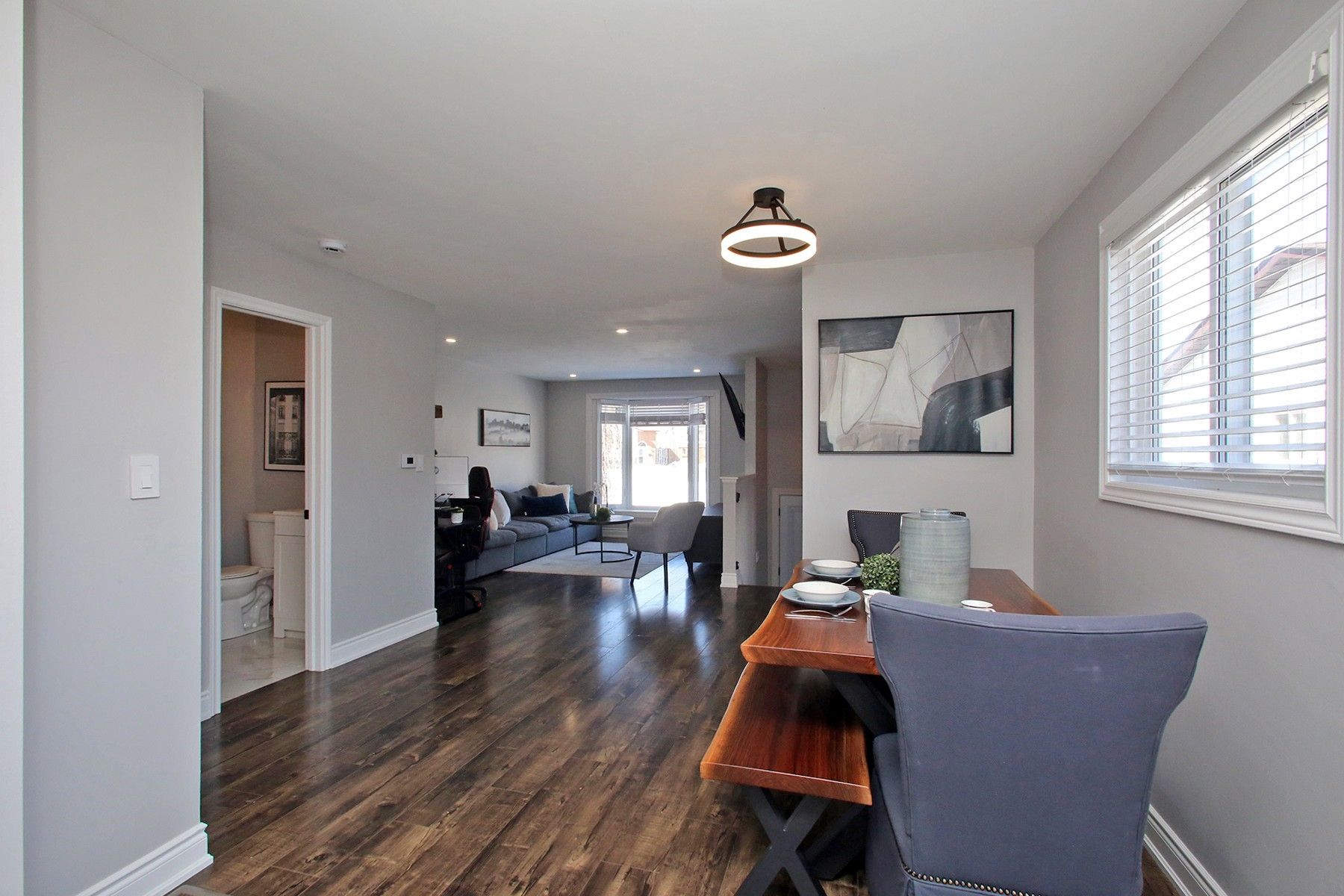 • Open-concept main floor with a stylish, modern kitchen and bright living area.