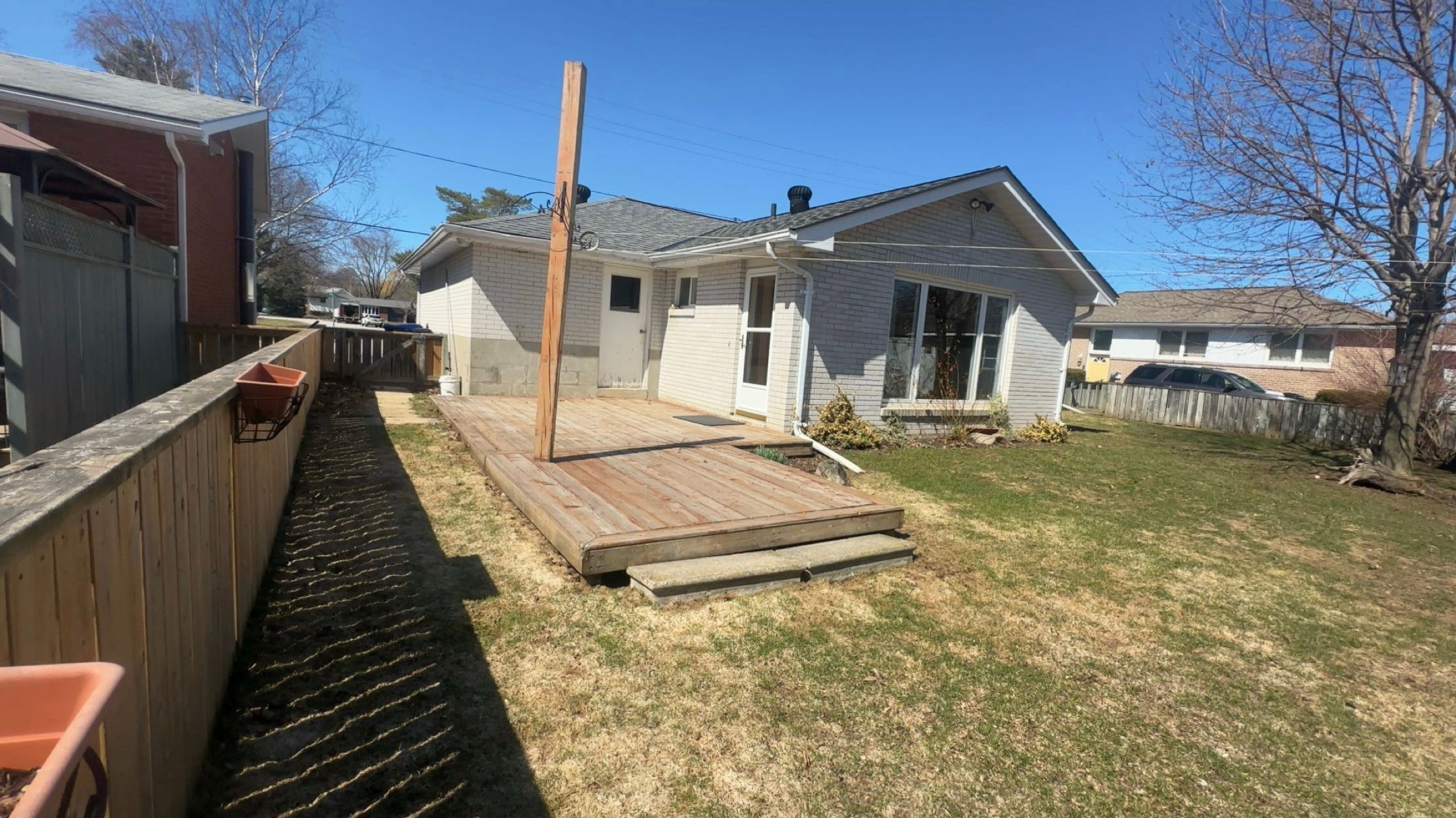 • Large fenced backyard features a new deck for outdoor enjoyment.