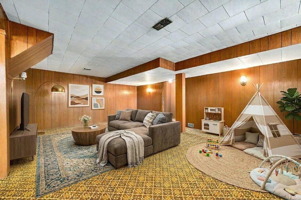 • Finished basement with a large rec room, bathroom, and kitchen for flexibility.