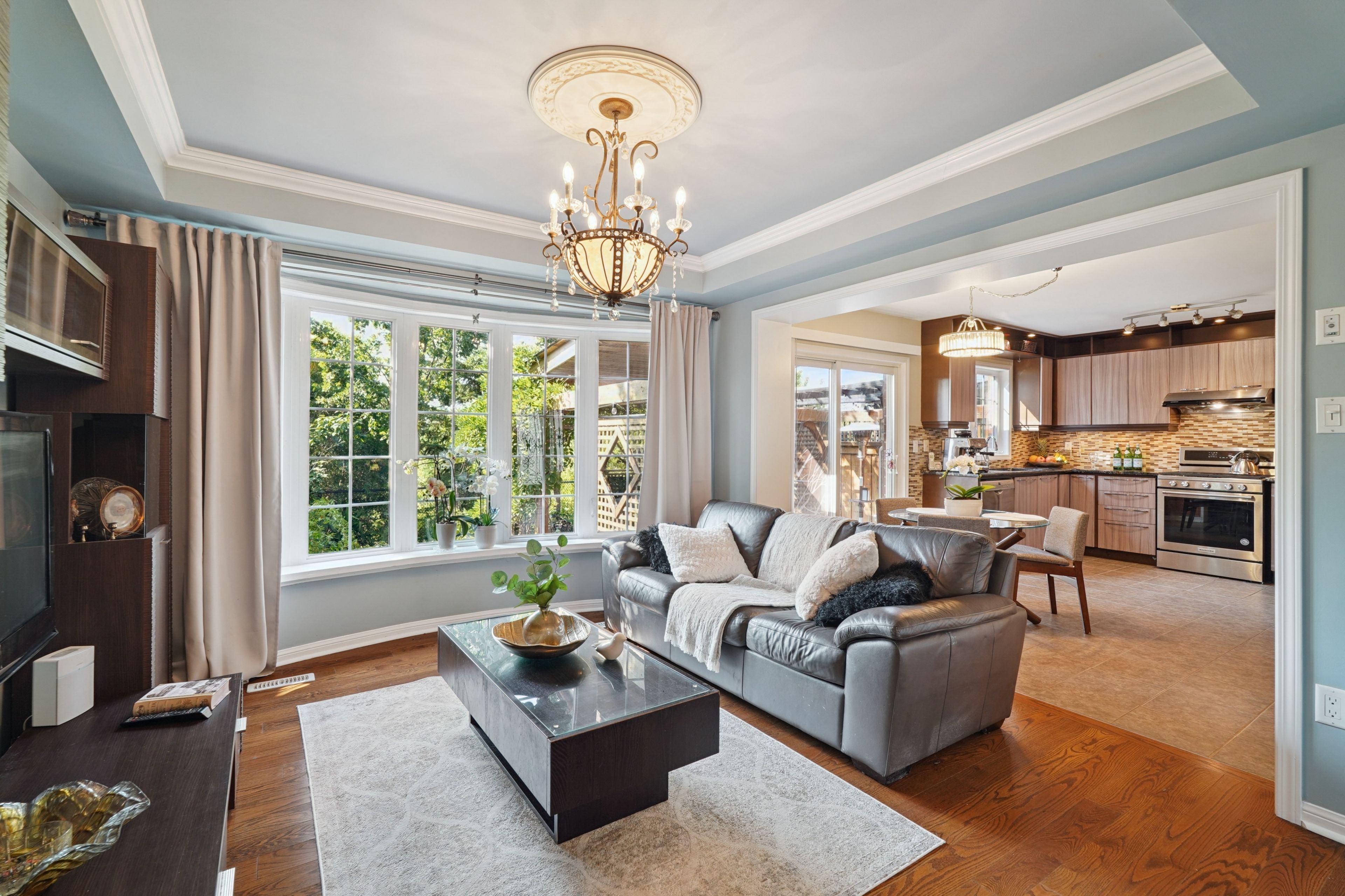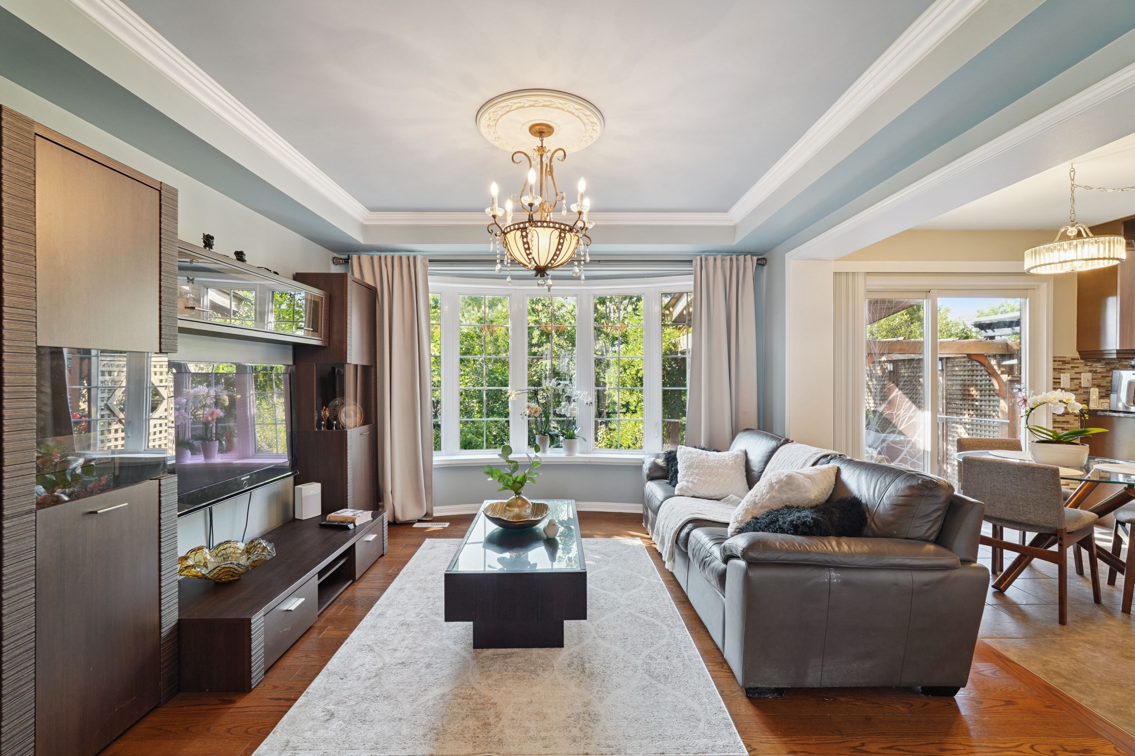 • Finished basement with recreation area and private sauna for added convenience.