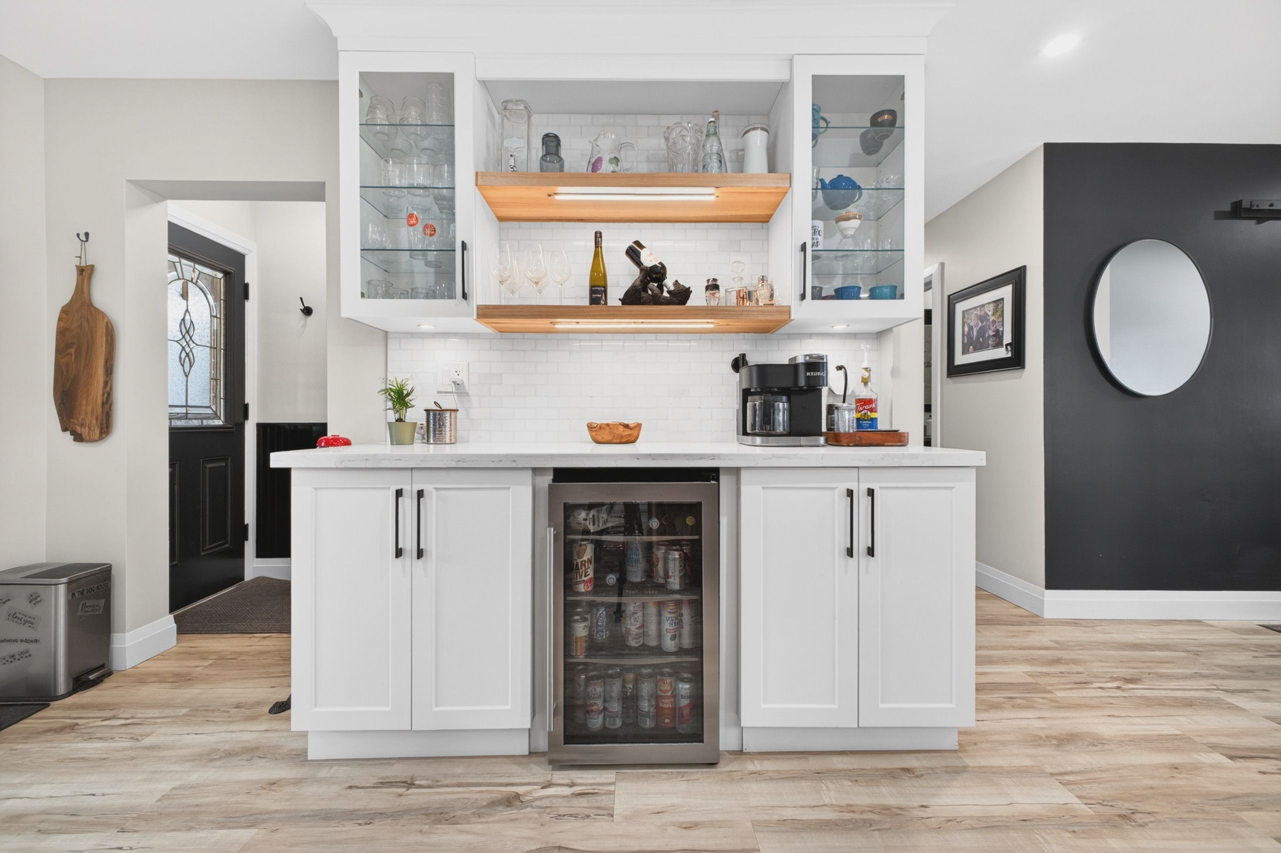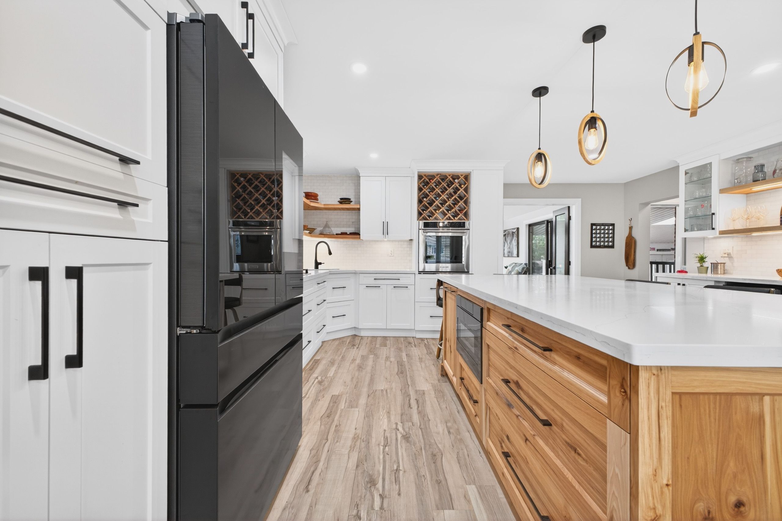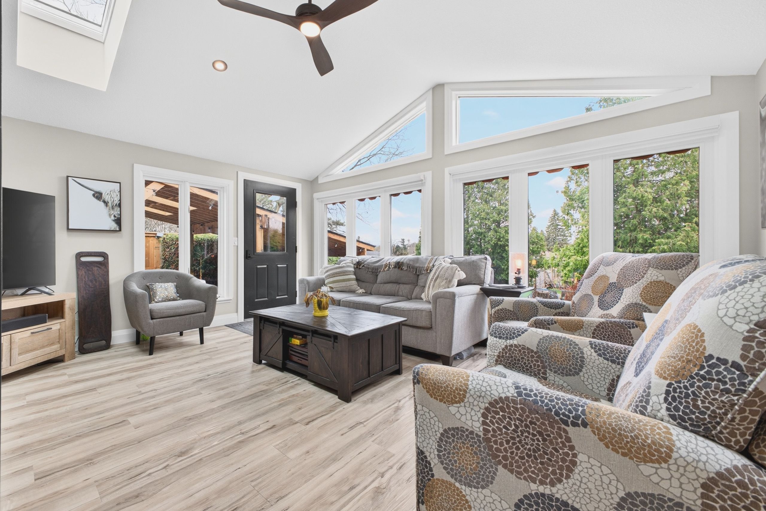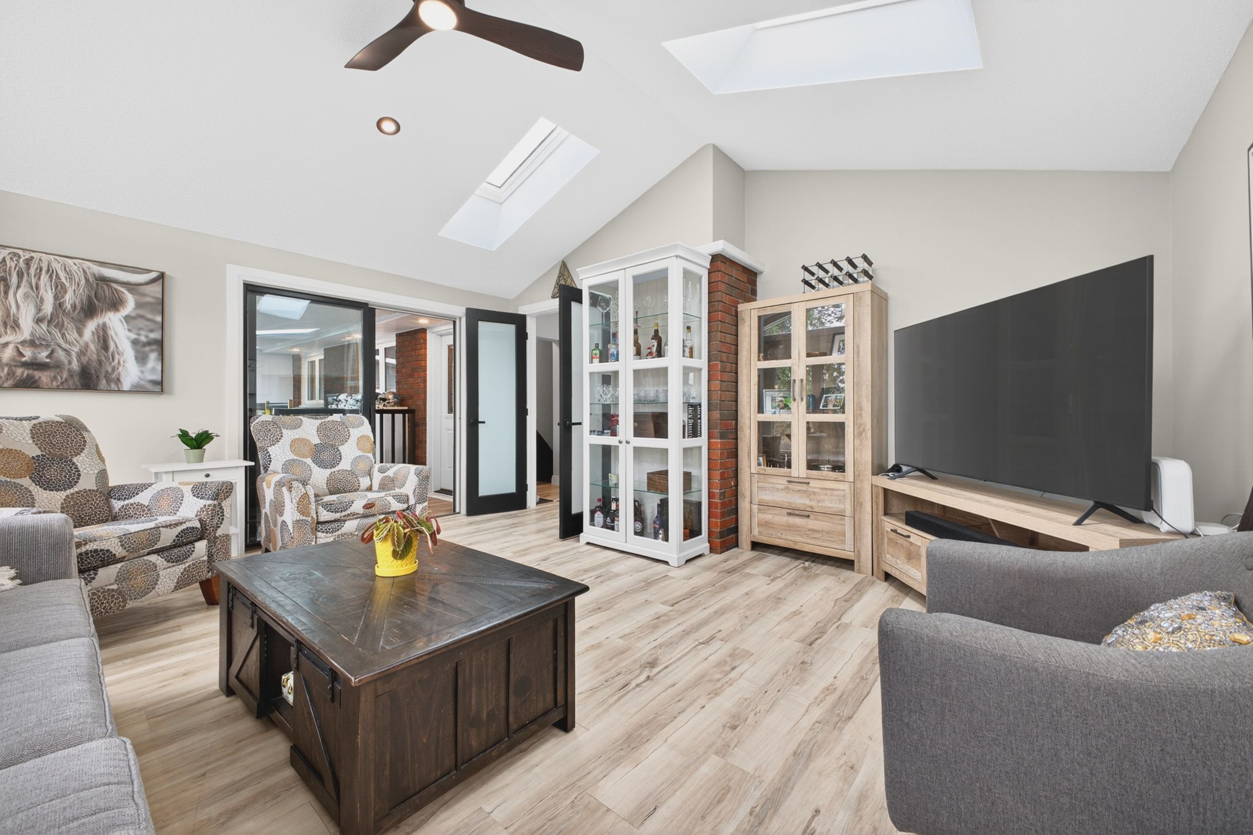 This beautifully updated 3br home offers the perfect blend of comfort, space, and modern style in a highly desirable neighbourhood close to excellent schools and convenient shopping. The home features over 2400 square feet of thoughtfully designed finished living space. Featuring a complete main floor renovation highlighted by an open-concept layout and a newly updated kitchen with custom cabinetry, new flooring and quartz counters and large 8. 4ft x 4. 4ft island with hickory cabinetry that's perfect for both everyday living and entertaining. You will notice the little touches such as the pot filler over the stove, beverage station that has been plumbed with water for your morning coffee and built in appliances make this look and feel modern yet comfortable. The main floor also includes two bedrooms, including a primary suite with a custom built walk-in closet. The fully finished basement expands your living space with a stylish bar area, a finished laundry room, another bedroom with new (2025) egress window, ample storage, and a cold cellar. With two well-appointed 3-piece bathrooms, this home offers both comfort and functionality. Outside, you'll find an oversized radiant heated two-car garage (21. 4 feet wide x 28 feet long), a new stamped covered concrete pad with a hot tub (2024) and a large shed for all your storage needs. The property sits on an impressive 70 x 130 fully fenced lot, beautifully landscaped and lined with cedar for added privacy. Vast windows and skylights throughout the home provide stunning views of the expansive backyard and fill the interior with natural light. This is a rare opportunity to own a move-in-ready home that truly has it all-space, style, and an unbeatable location.