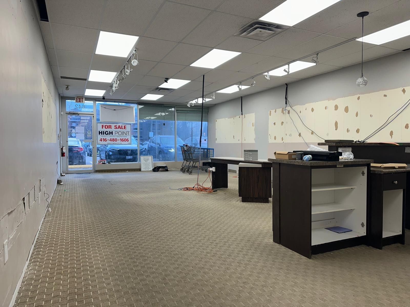 Nice, bright space in a busy, well-kept plaza with fantastic access to major streets and highways. Tons of parking. Neighbours include dollarama and coffee time, giving you steady foot traffic. The unit works for almost any use that doesn't conflict with the existing tenants. There's also a partial basement that's perfect for storage, a small workshop, or whatever back-of-house setup you need. Attractive storefront. Landlord will not consider uses that duplicate or conflict with current tenants. Previously used as optical offices and store, thus, two sinks in offices.