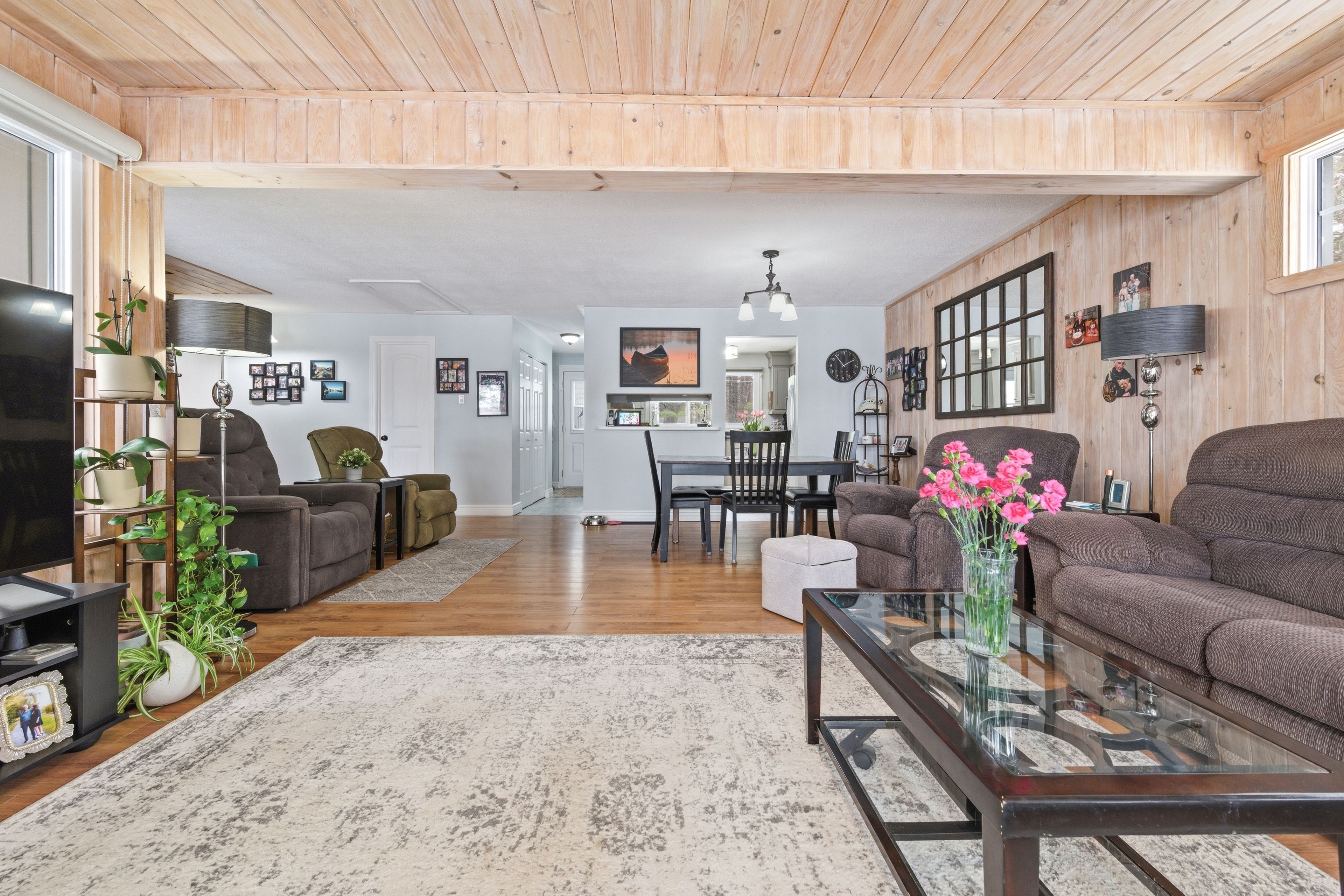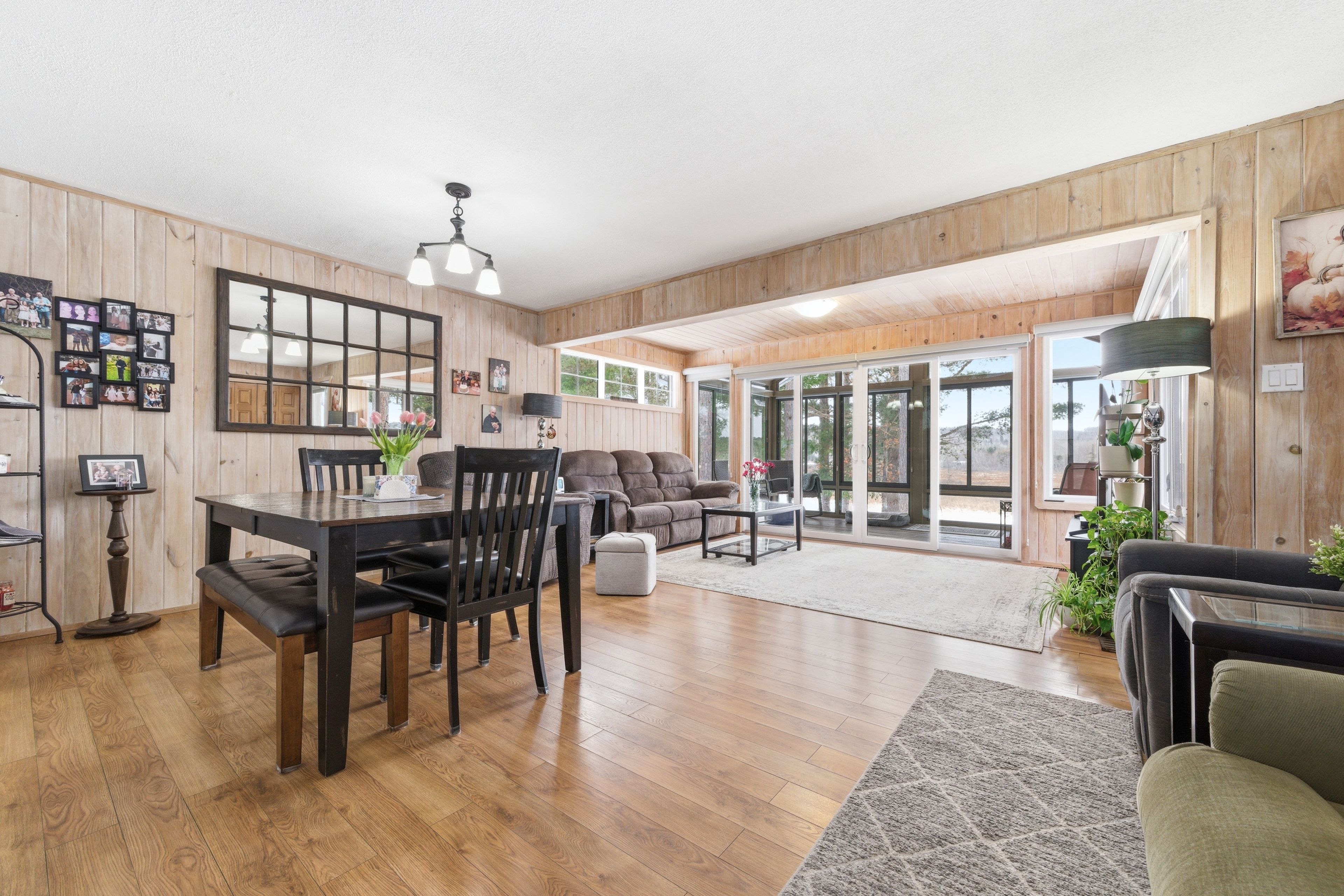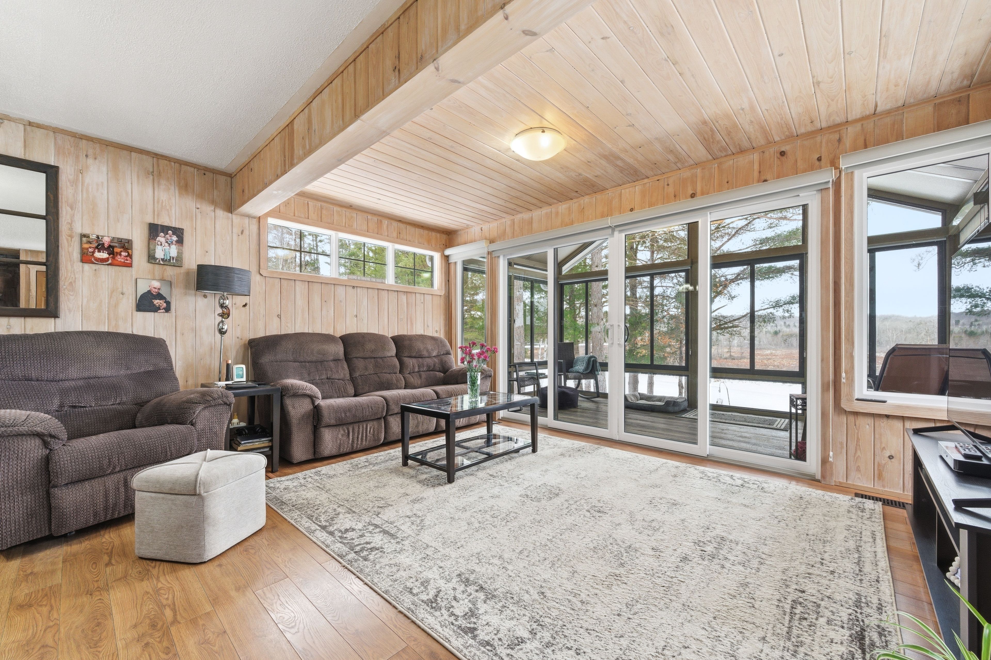 Welcome to 642 pecoskie drive, nestled along 100 feet of pristine shoreline on the bonnechere river, set within a quiet and welcoming community. This inviting property offers the perfect blend of relaxation, natural beauty, and year-round comfort. Positioned on a spacious lot with stunning sunset views, you can unwind by the water's edge or relax in the bright sunroom, where warm afternoon light fills the space and creates the perfect setting to start or end your day. The home features 3 bedrooms and 2 full bathrooms, with a functional layout designed for easy living. The main level offers everything you need, including a cozy open-concept living area highlighted by tongue-and-groove pine walls and a wood stove with a beautiful stacked stone backdrop. The primary bedroom is filled with natural light and showcases peaceful river views along with a charming pine ceiling. A guest bedroom and convenient main-floor laundry complete this level. The lower level expands your living space with an additional bedroom, full bathroom, second wood stove, and a sauna-creating a private retreat to relax and recharge after a day spent enjoying the outdoors. Outside, the property continues to impress with a paved driveway, newly shingled roof (2025), detached garage plus additional storage. A standby generator ensures comfort in all seasons offering peace of mind in the country. The generous yard provides plenty of space to garden, entertain, or simply take in the natural surroundings. Ideally located just a short drive to algonquin park and bonnechere provincial park, this property is a gateway to some of ontario's best outdoor recreation, including hiking, paddling, wildlife viewing, snowmobiling, and atv trails. Experience the beauty, tranquility, and lifestyle this riverfront property has to offer-your escape to nature awaits.