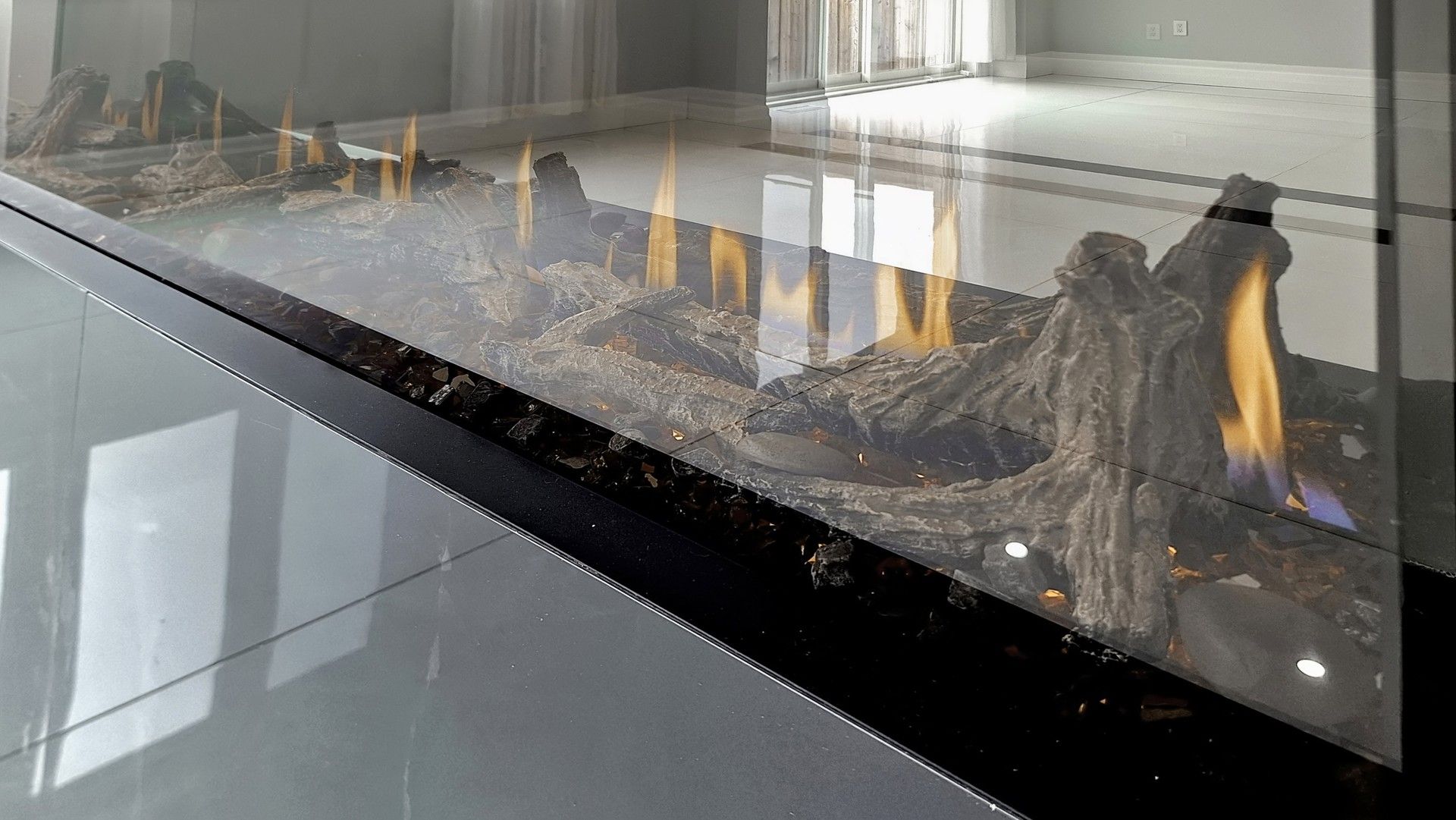 • Contemporary kitchen features sleek finishes and a gas stove for cooking.